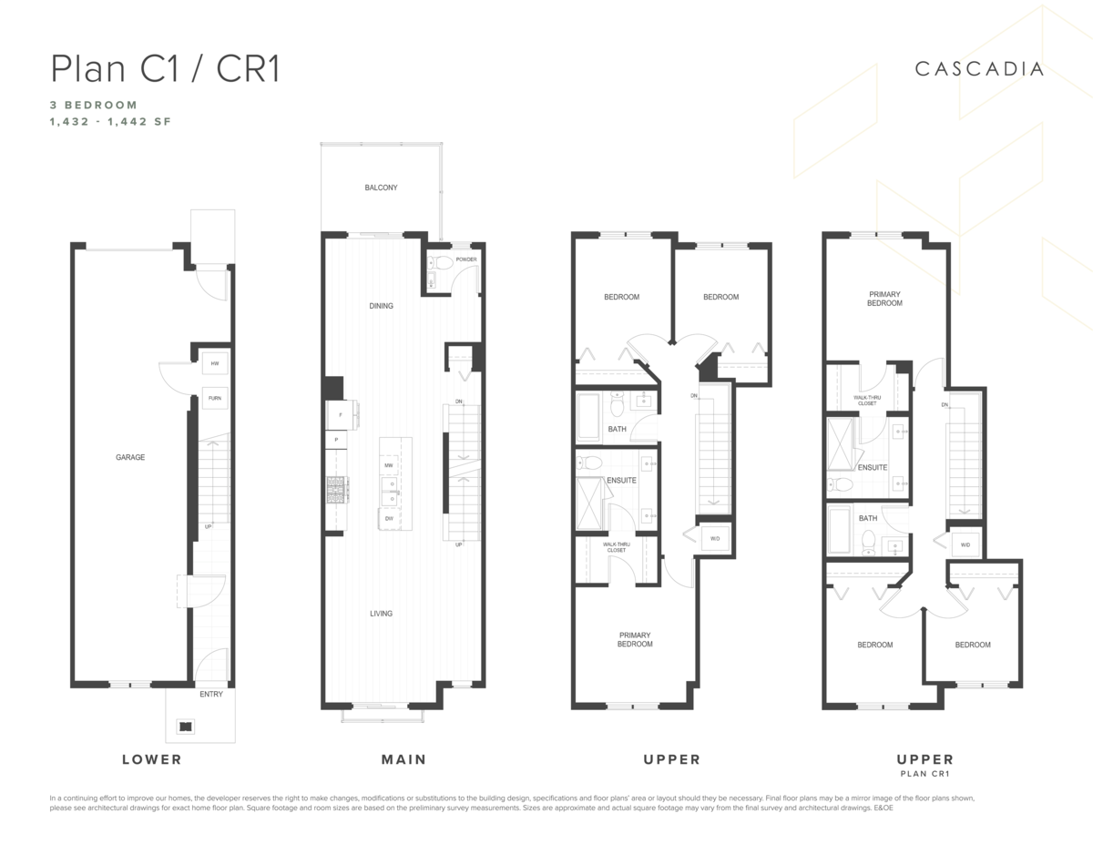 Welcome to Cascadia by Streetside Developments in Willoughby, featuring the first net-zero-ready townhomes south of the Fraser. This spacious 3 bedroom, 2.5 bathroom home offers an open-concept main floor, large island, quartz countertops, and premium LG stainless steel appliances. The living area opens onto a large balcony with a gas bib. The tandem garage fits two cars with room for a storage or a workbench. The community includes a future amenity building with a party space & gym along with 2 outdoor green spaces. OPEN HOUSE: Saturday to Wednesday, 12 to 5pm.