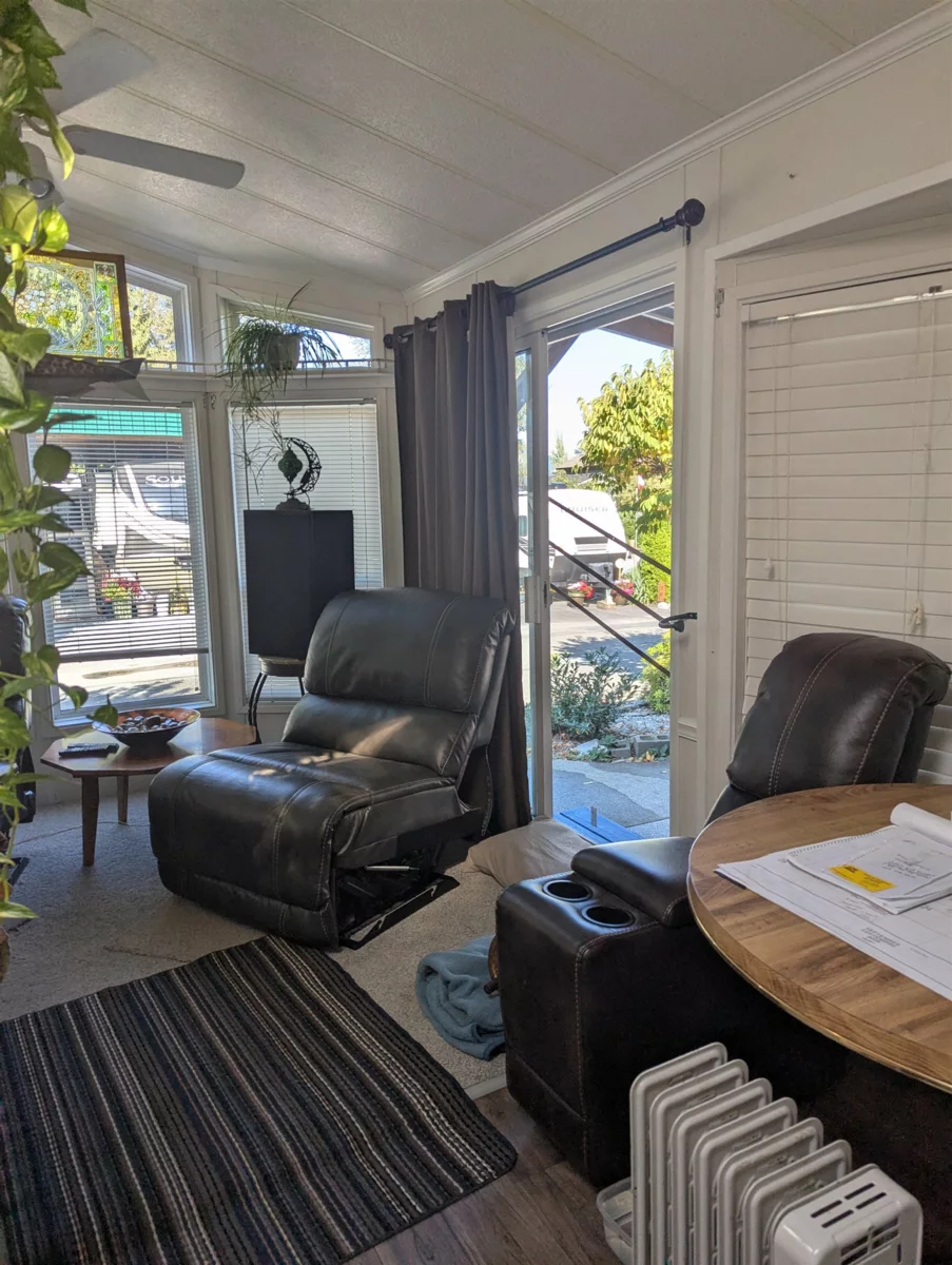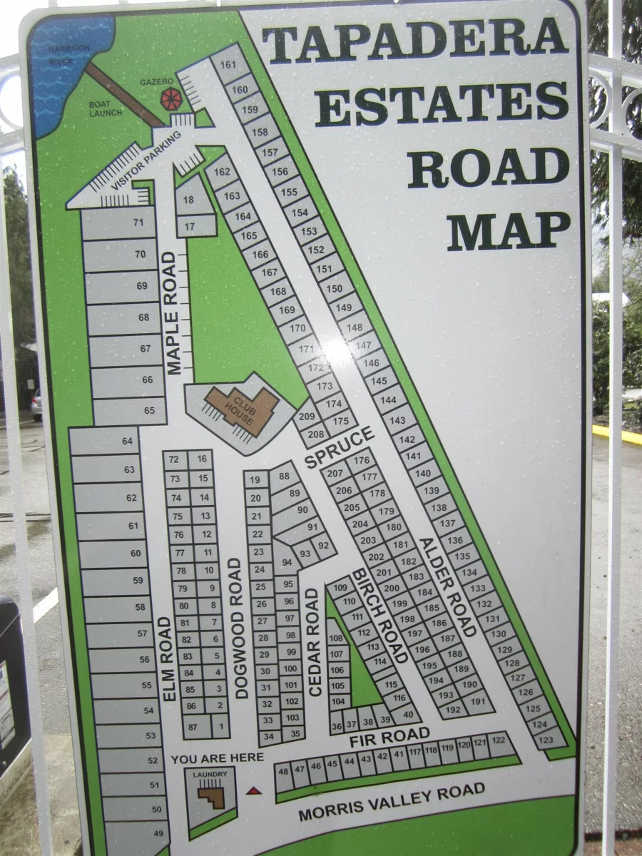 TAPADERA ESTATES - Manufactured Home beautifully situated on a sunny CORNER lot and conveniently located from the gorgeous recently redone clubhouse with pool/ sauna & outdoor hot tub. Year round access, bring your boat and enjoy fishing, kayaking, paddle board on the Harrison River. Gated community and friendly neighbours. Plenty of visitor parking. Located close to Sandpiper golf course and on the way to Sasquatch Mountain Ski area...so many activities in this beautiful area. All furniture included, 2 sheds appx 8 x 4' each...Huge 15' x 30' carport to protect all in the rainy and winter months, newer roof as well. 50 AMP service. Very cozy and open concept. Beautifully landscaped on this lovely private corner. You won't be disappointed. Best spot in the park - Call today!