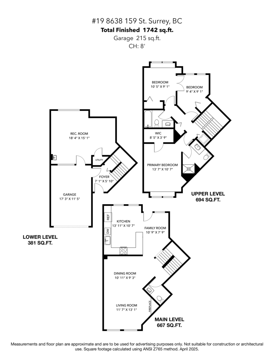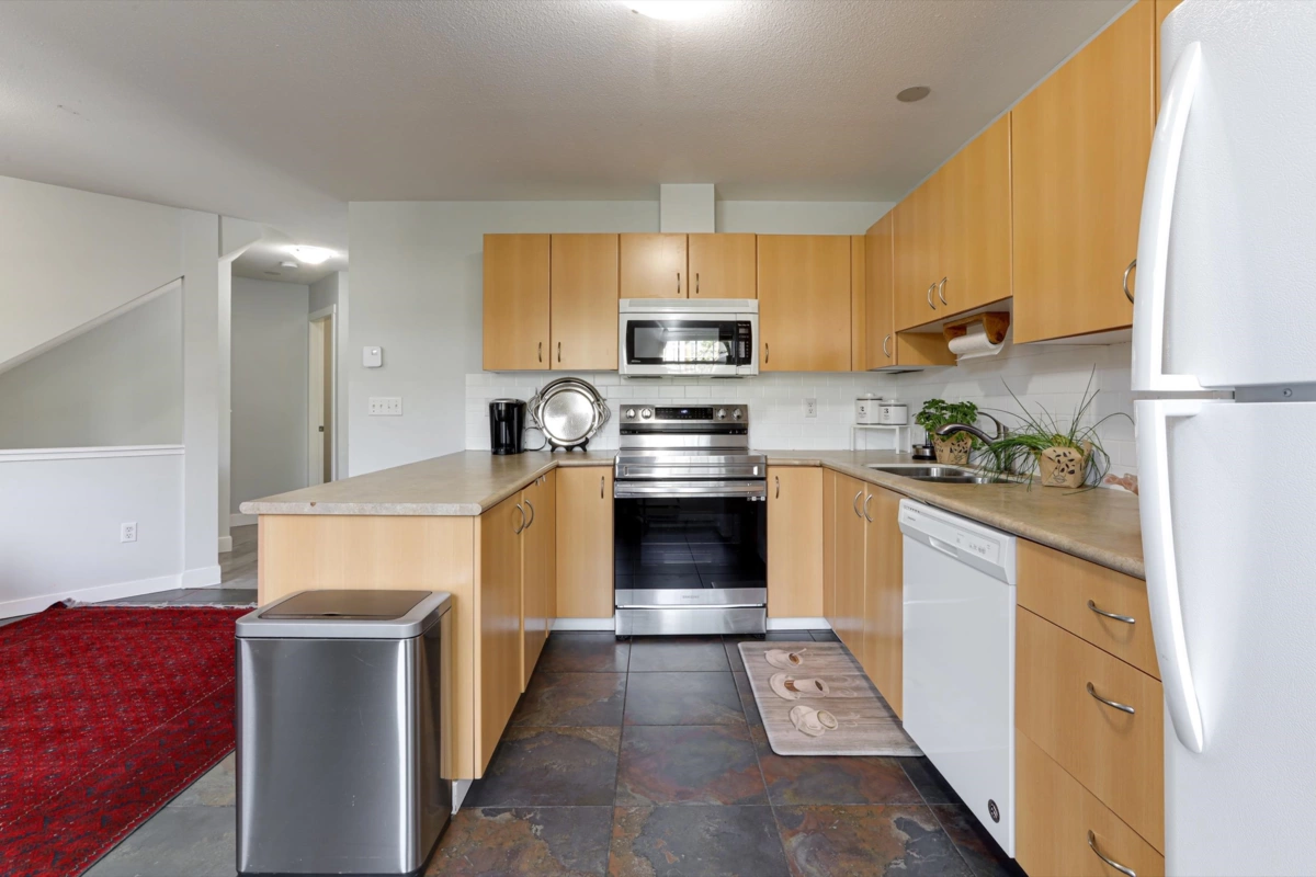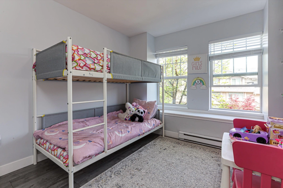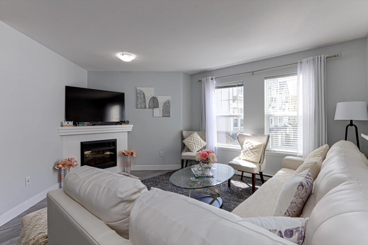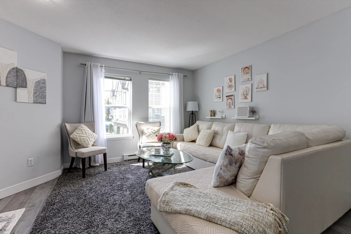 OUTSTANDING VALUE – Priced Below Assessed! Welcome to Sagewood in the heart of Fleetwood—an unbeatable location steps to the future SkyTrain, top-rated schools, and the rec centre. This spacious and sun-filled 3-bed+large rec room (or 4th bed), 3-bath home offers two living areas, fresh paint, upgraded flooring, enhanced attic insulation, and stylish lighting throughout. The vaulted primary bed features a bay window, while the oversized rec room on the entry level is ideal for guests, a home office/living space. Complete with two parking stalls and a BONUS Level 2 EV charger, this home also boasts a fenced yard great for BBQs or quiet outdoor time. Located in a well-managed and proactive strata, residents enjoy a guest suite and a spacious amenities room for private events. Don't miss out!