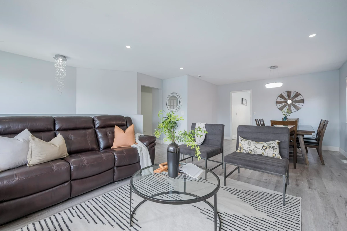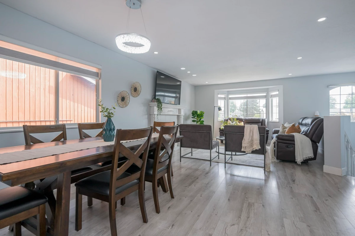 Newly remodeled basement entry home in the heart of Pitt Meadows! Over 2,200 sq ft with 5 bedrooms plus den (possible 6th) and 3 full baths. The main level offers bright, open living, a brand-new chef’s kitchen with quartz counters, stainless appliances & custom cabinetry, plus new flooring, paint, lights and blinds. The primary suite features a walk-in closet and renovated ensuite. Downstairs has its own entry w/ roughed in kitchen, large living room, 2 beds, full bath & den for suite potential! Furnace/AC 2024. Enjoy summer evenings on the huge deck overlooking your fenced yard. Walk to schools, shopping & the Athletic Park. Nearby dike trails along the Fraser River offer scenic walks with mountain views, and the West Coast Express is nearby for an easy commute.