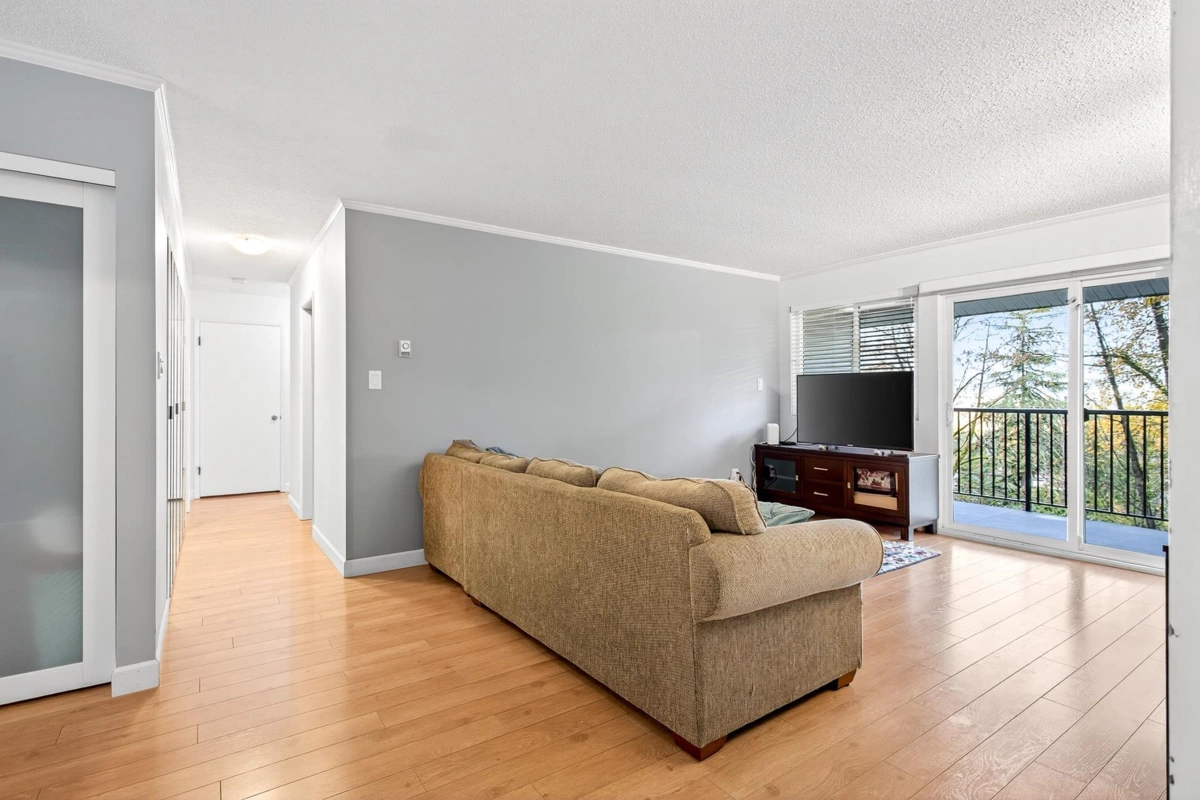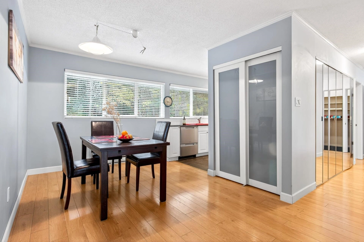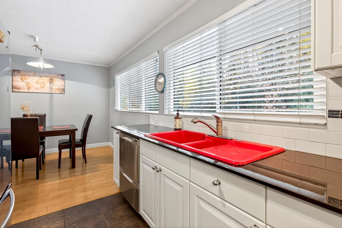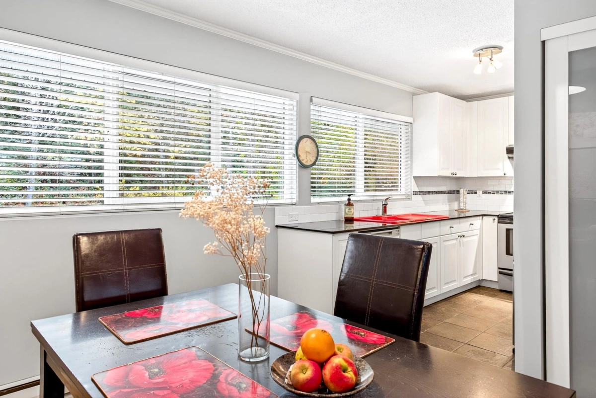 Lovely updated 2-bed, 1.5-bath one-level townhome in desirable College Park. Bright open floor plan with a spacious living room and large windows leading to a private balcony overlooking a peaceful greenbelt. The updated kitchen (2010) features granite countertops, modern cabinets, backsplash, newer stainless steel appliances, and flooring. Primary bedroom offers a walk-in closet and rare 2-piece ensuite. Newer laminate flooring, blinds, and windows throughout. Bonus large storage area—perfect for an office. Well-maintained complex with new roof (2009) and balconies (2011). Great location near Burnaby, SFU, schools, shopping, Barnet Hwy, and future Evergreen Line. Shows beautifully!