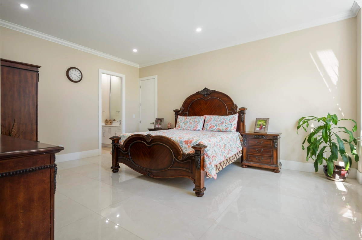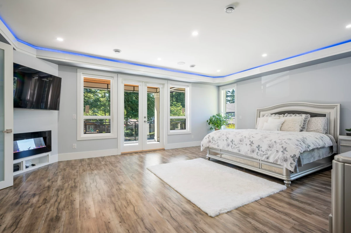 HUGE 11,000+ sq ft CORNER LOT with approx. 5,500 sq ft of living space! This 2-level home features elegant white stone exterior and stunning interiors. Main floor offers a grand living room with feature wall, spacious dining, massive bedroom w/ ensuite & WIC, large family room, eating area, oversized kitchen + wok kitchen, and a MEDIA RM, and bonus powder room. Upstairs offers 5 BEDROOMS, 3 full baths, 2 balconies (front & side), and convenient upper laundry. Features include RADIANT HEAT, A/C, security cameras, built-in vacuum, and Extra laundry in garage. Beautiful landscaping, tons of parking incl. RV/boat, 2 storage sheds. A must-see gem--call today! All sizes & age are approximate only. Buyer or buyer's agent to verify.