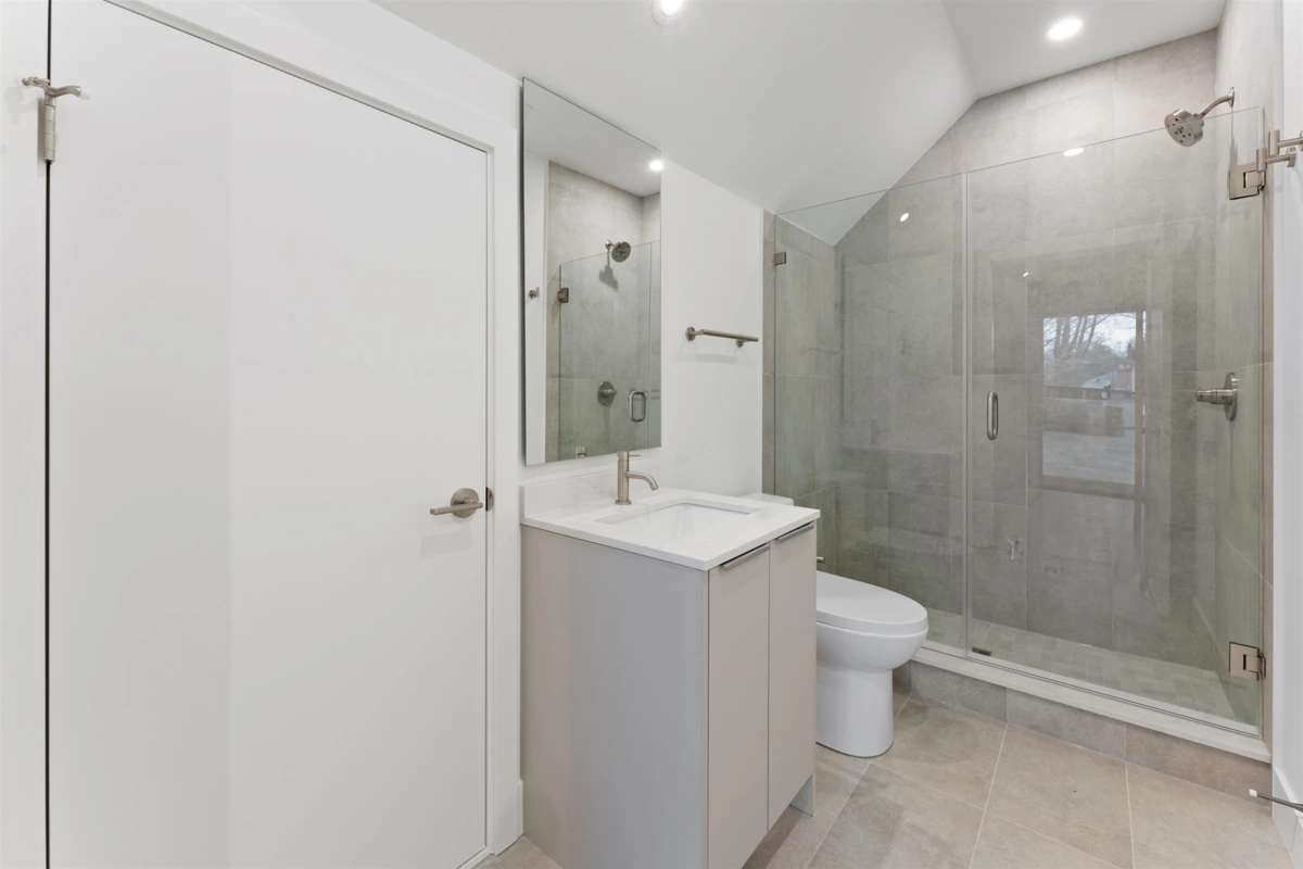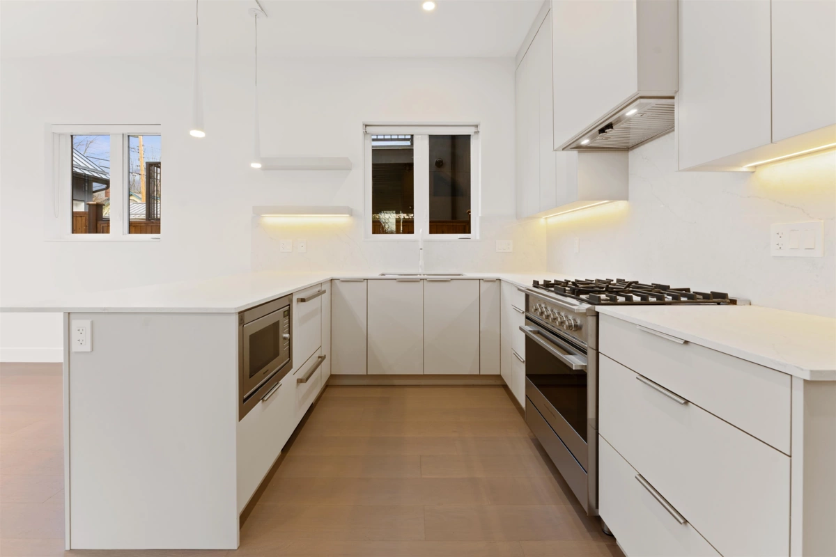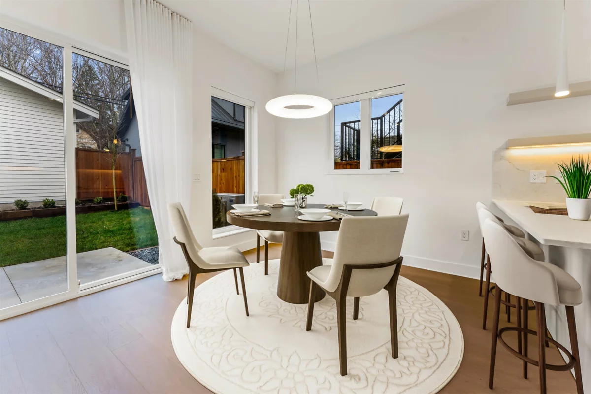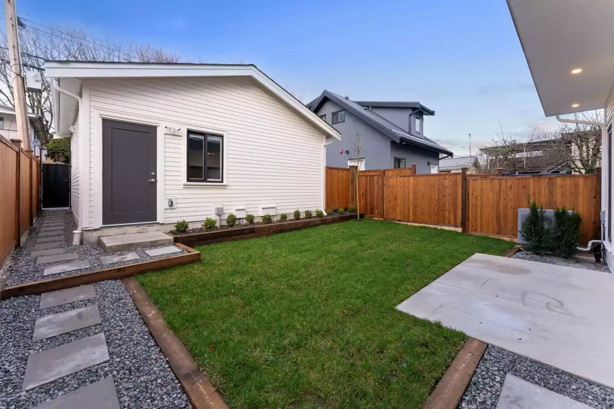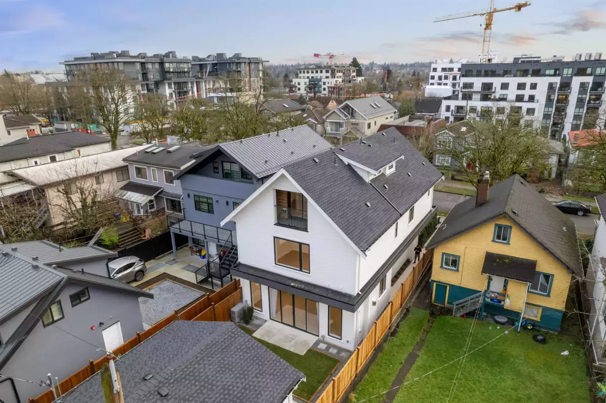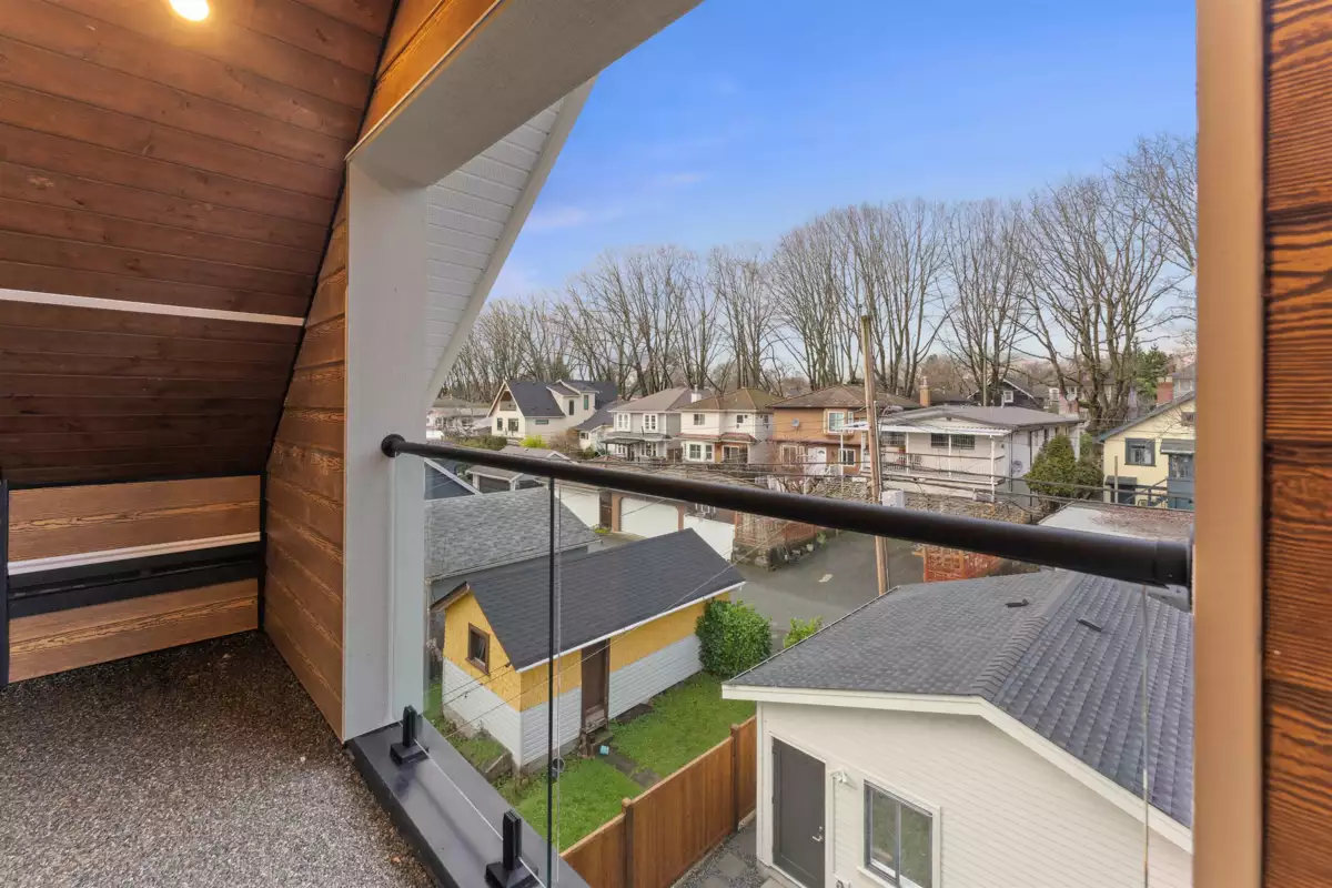 Welcome home to this brand new 3 bed/4 bath 1/2 duplex in Grandview Woodlands! Thoughtfully designed, this home offers a seamless blend of contemporary style & quality finishes with an efficient floor plan. Main level features 10 ft high ceilings, living room is complete with a gas fireplace and a 12 foot sliding glass doors, a well appointed kitchen with Fisher & Paykel appliance package. The second level boasts the bright primary bedroom w/ensuite, a 2nd spacious bedroom w/ensuite and the laundry. Top level offers a spacious 3rd bedroom & full bath. This home comes fully equipped with A/C, 635 sqft crawl space for storage, extensive millwork, a one car garage with EV charging capability, and private yard. Call for viewing appointment.