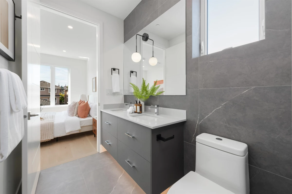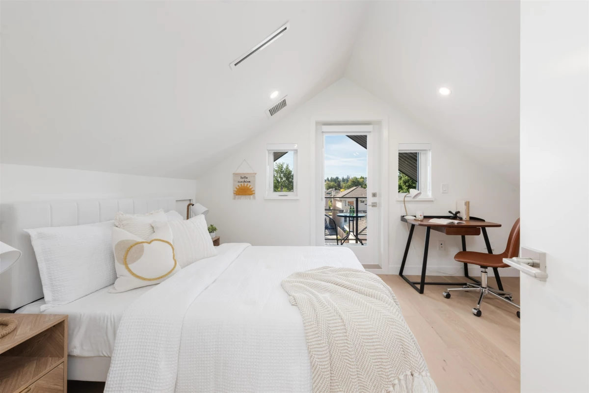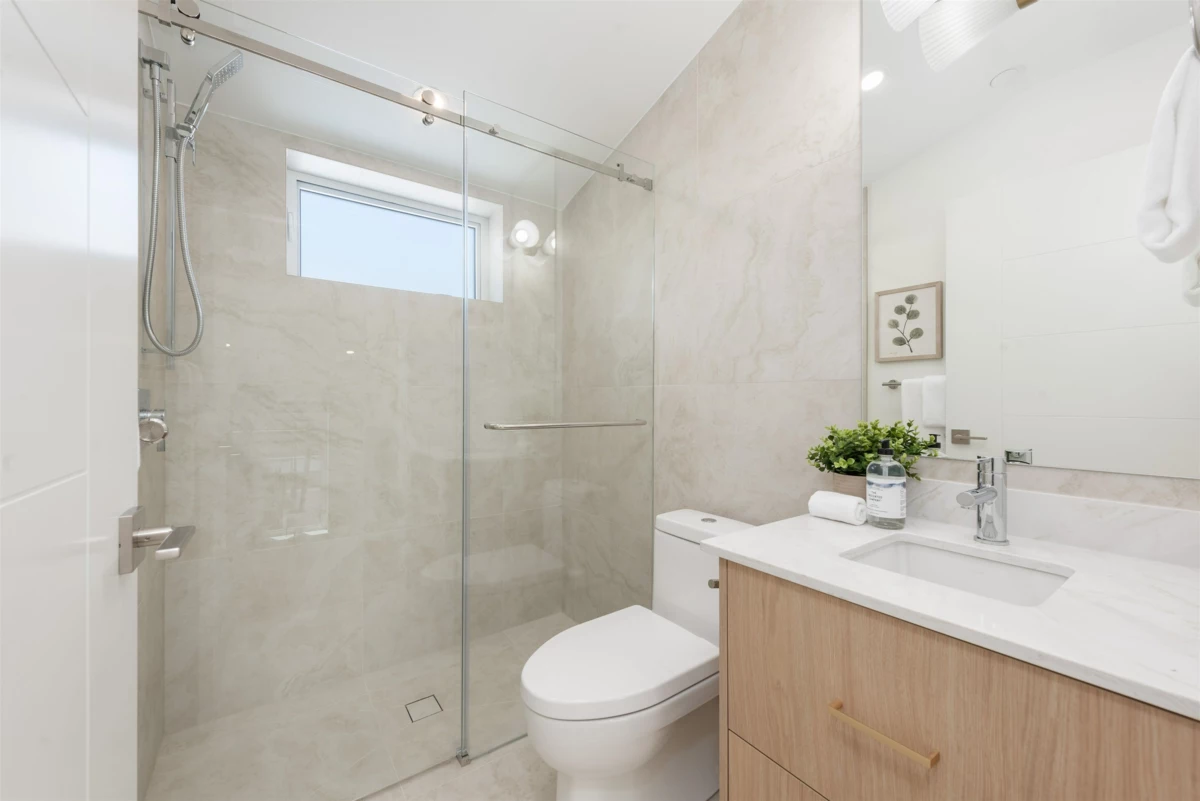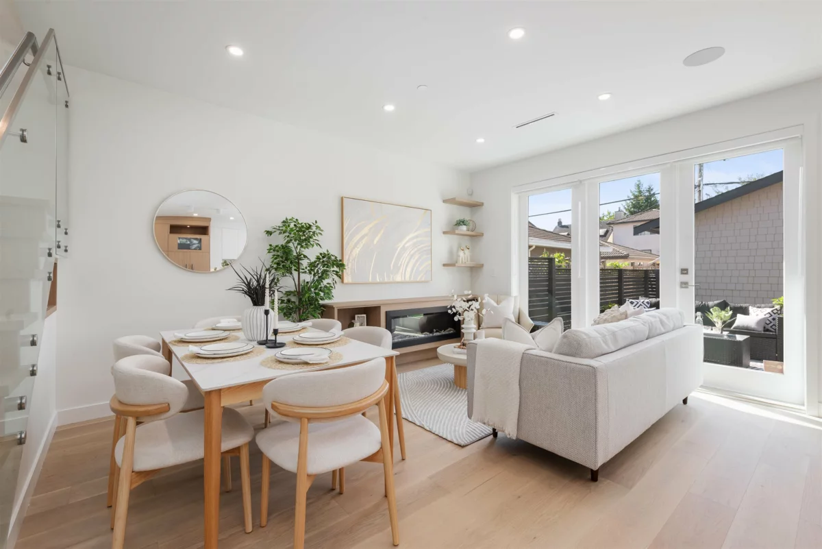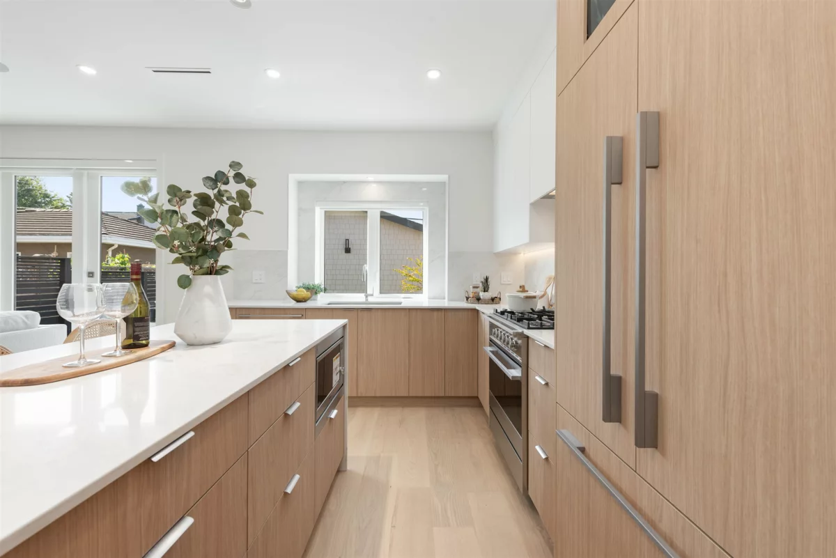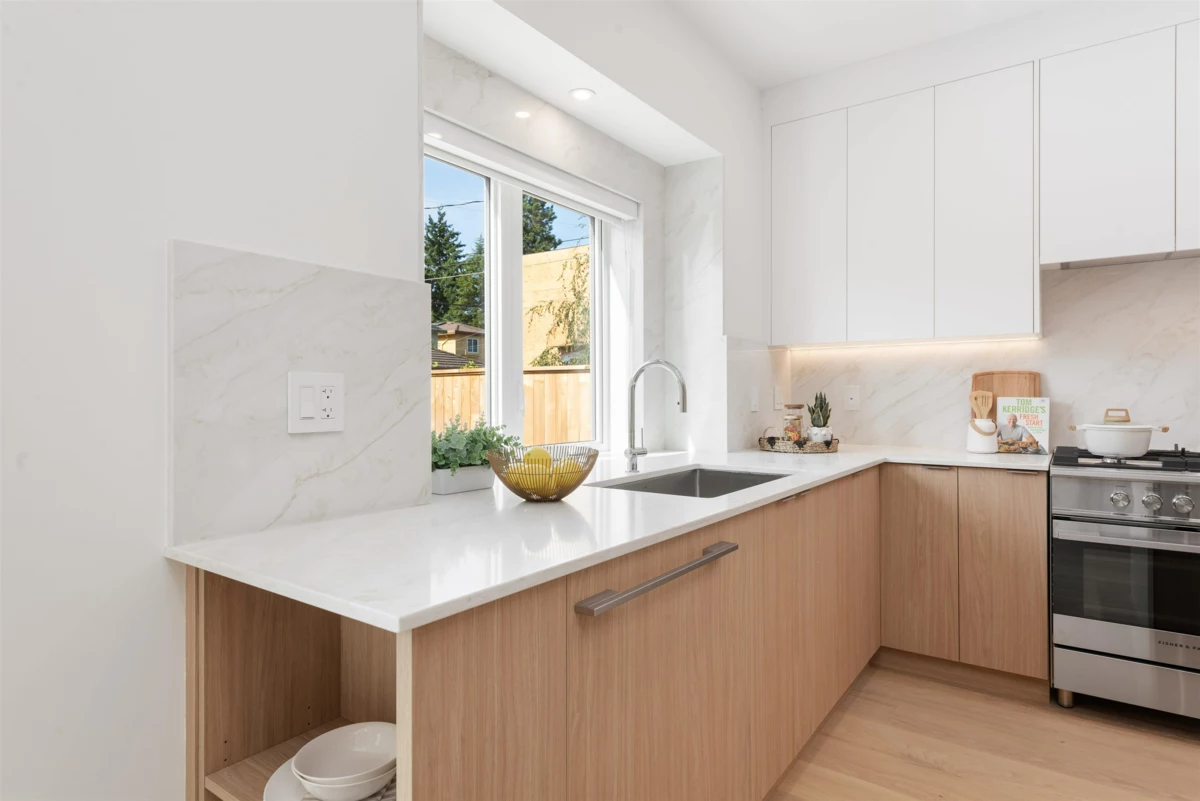 Nestled on a tranquil, tree-lined street in Arbutus-one of Vancouver's most prestigious neighborhoods. This newly built 1695sf duplex offers the perfect blend of luxury&convenience. Just moments from top public&private schools, UBC, cafés, restaurants, parks, shops&beaches. Open concept layout w/9-foot ceilings, wide-plank light oak flooring&oversized windows that flood the space w/natural light. The gourmet kitchen is a chef's dream, featuring a waterfall island, quartz countertops, extensive cabinetry&premium stainless-steel appliances. Upstairs, three spacious bedrooms, each w/its own ensuite, plus a den. Features include in-floor radiant heating with programable “Nest” thermostats, AC/heat pump, security system and a large private back yard and crawlspace.