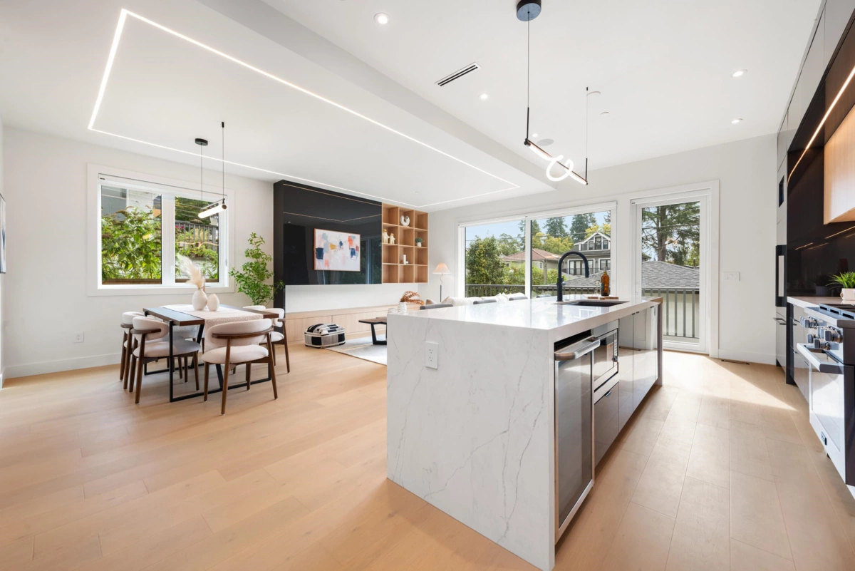 Kerrisdale Luxury Living Awaits! Crafted by esteemed builder Astrawest, renowned for 25+ years of luxury homes, this 2-storey back duplex offers 1,549 sq ft of refined elegance on a peaceful tree-lined street. The chef’s kitchen boasts Miele appliances, Fisher & Paykel fridge, and a wine cooler, while air conditioning and built-in speakers enhance modern comfort. With 3 bedrooms & 3.5 baths—each featuring a private ensuite—plus a secluded patio, every detail is designed for upscale living. Situated minutes from St. George’s, Crofton House, shopping, and transit, this home is the perfect fusion of sophistication, lifestyle, and location.