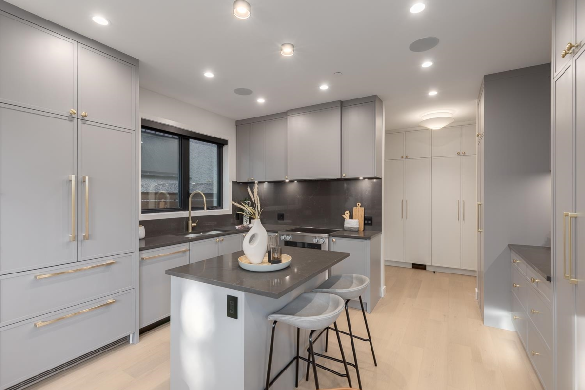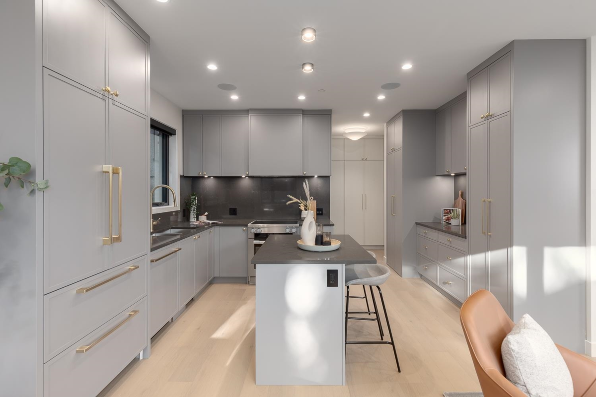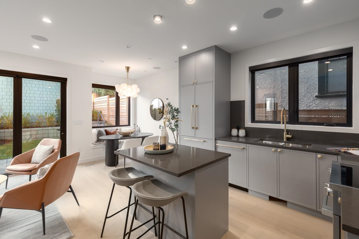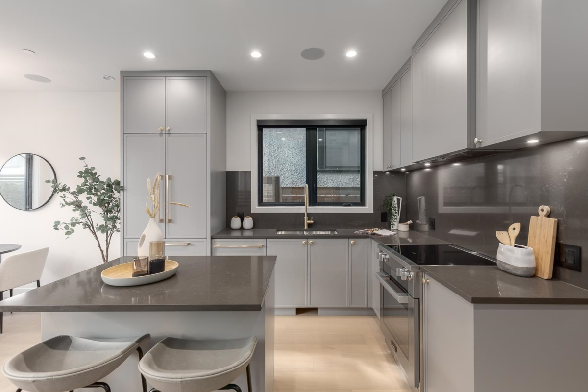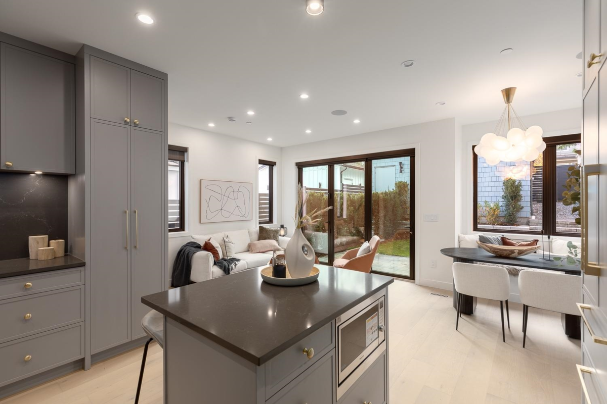 Welcome to this stunning NET-ZERO rear 1/2 duplex, designed by the acclaimed Marrimor Interiors. Every detail has been thoughtfully crafted, offering a bright, open floor plan with custom features throughout. The chef's kitchen boasts Miele appliances, custom cabinetry, and a cozy window seat. Step into the sunny South-facing backyard through 10' accordion glass doors. Upstairs, discover three spacious bedrooms, each with an ensuite and in-floor heating. The primary suite features a spa-like ensuite and large WIC, while the top floor offers an oversized private balcony. Equipped with A/C, ample storage, a one-car garage w/ EV charging, and a fenced yard, this home is perfection!