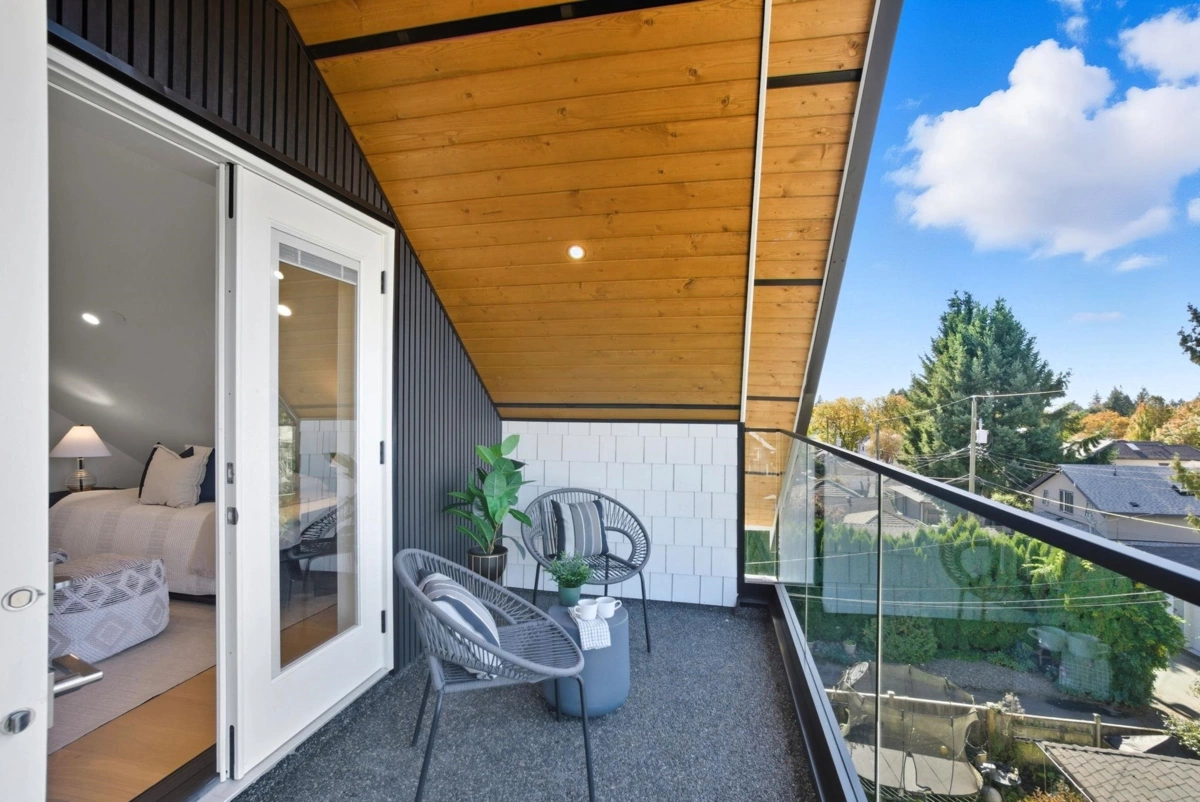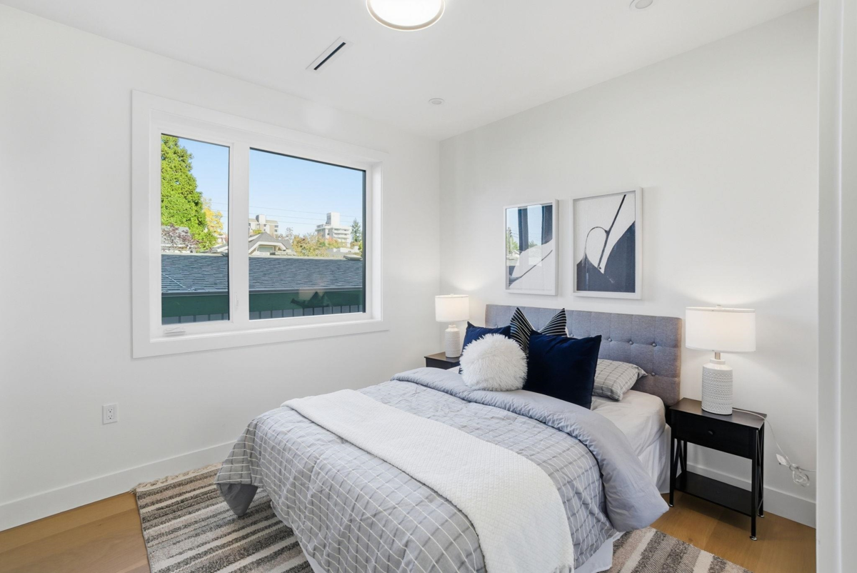GORGEOUS/XTRA LARGE REAR/WEST FACING duplex located on a quiet street in the heart of Kerrisdale! SOARING 11'5" ceilings on the main floor which features high end engineered wood flooring/millwork/fireplace, bar area/wine fridge, STUNNING Kitchen w tons of storage, MEILE appliances plus custom LED lighting throughout. Upstairs you will find 10' ceilings, ample walk in closets, both bedrooms w Ensuites + another loft area upstairs with a 3rd bedroom/full bathroom. Additional features include a 500+sf crawlspace, security/alarm/cameras, manicured outdoor spaces, private single car garage (EV ready) plus custom black metal fencing. An EXCEPTIONAL location, walking distance from shopping, restaurants, recreation, top-notch schools and transportation!