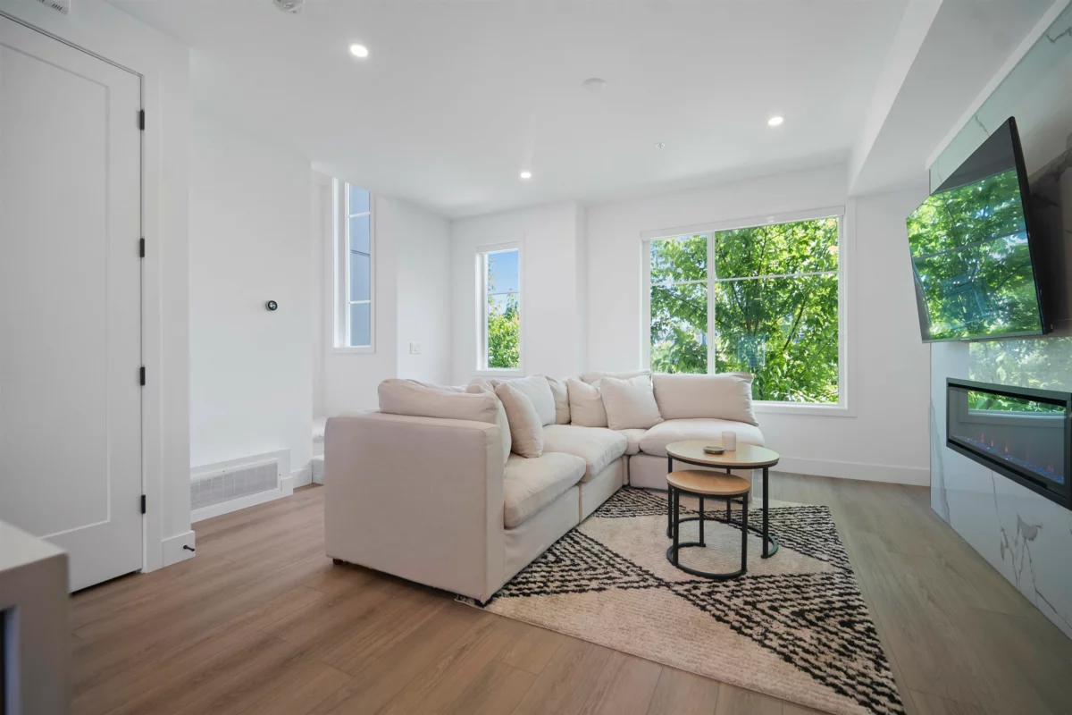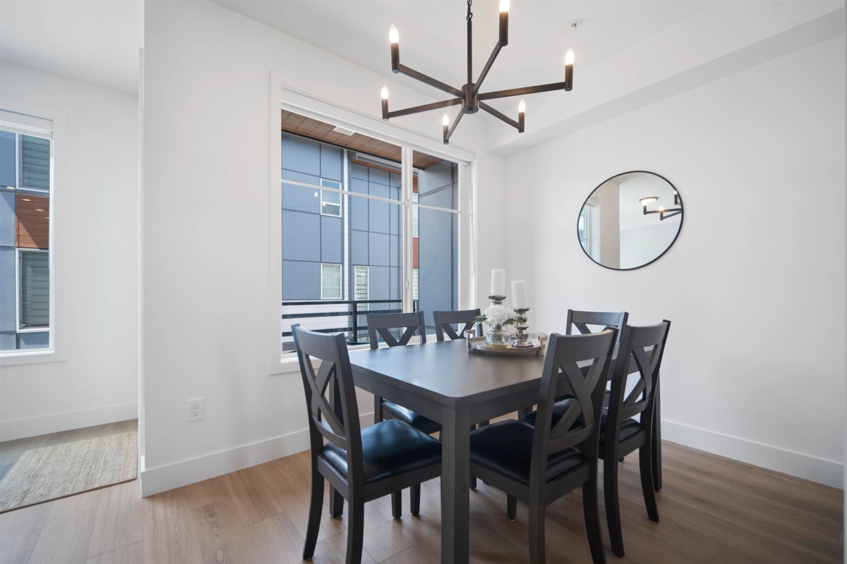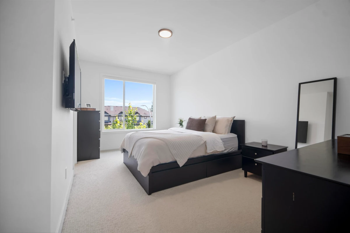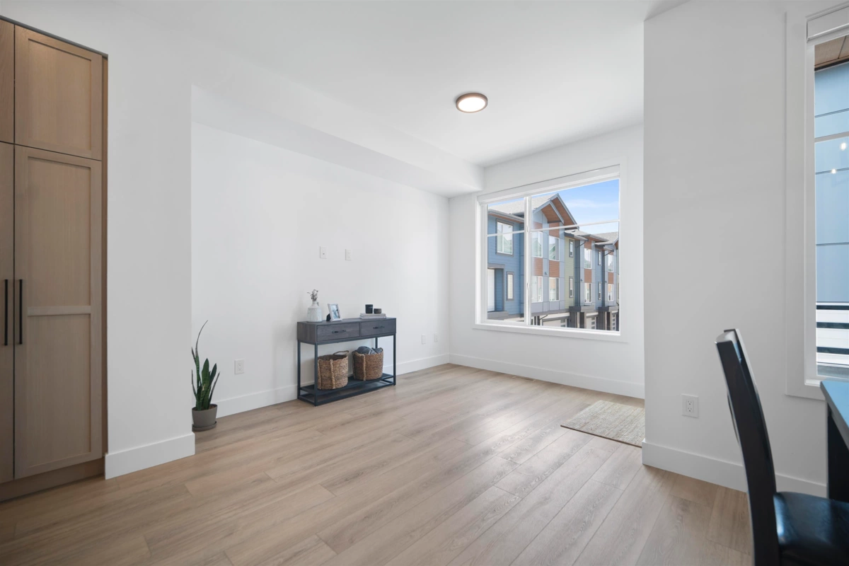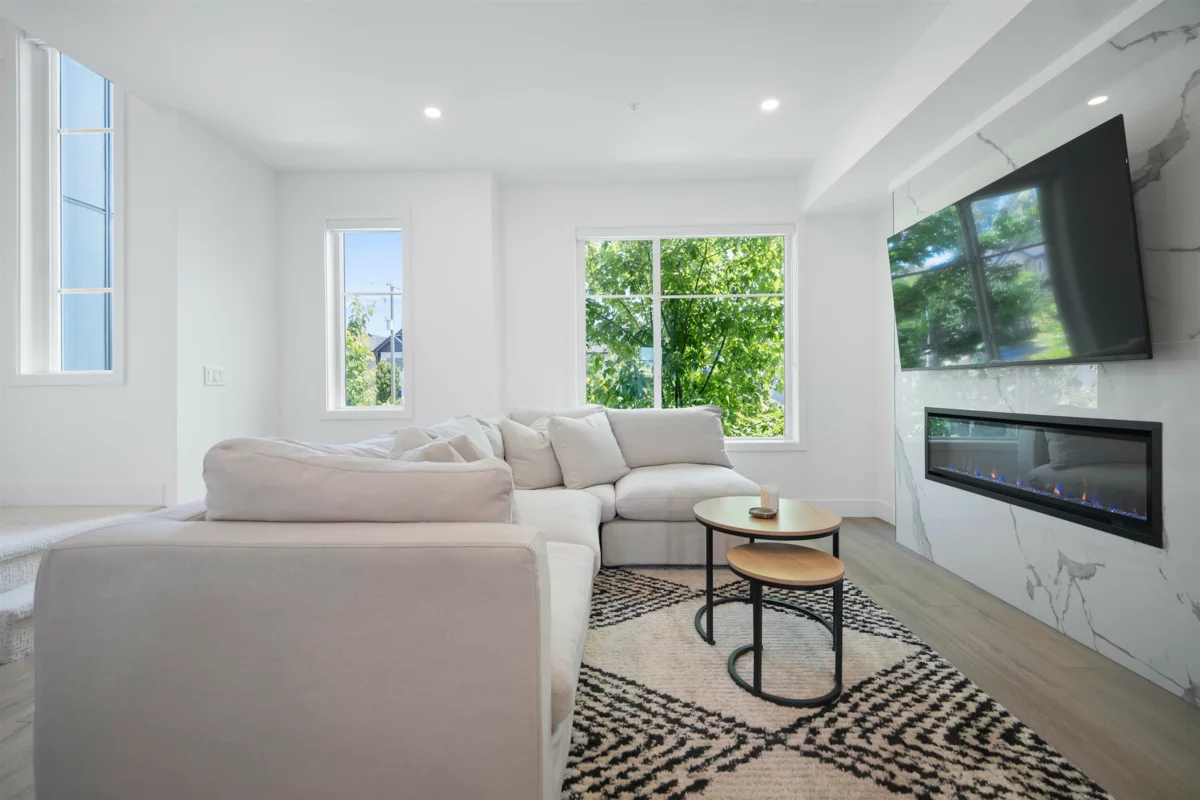 Crofton by Atrium Developments! Bright and modern nearly new 1,650 sq. ft. unit featuring 2-5-10 year warranty and AC. LG Kitchen appliances, 5 burner gas range, two toned maple/white kitchen, quartz counter tops. Living room, stone feature wall, gas fireplace. Covered patio with natural gas hook up off dining area. Upper level primary bedroom, walk in closet, ensuite with oversized glass shower & double sinks, 2 secondary bedrooms, main bath with tub/shower. Lower level bonus 4th bedroom! Double garage with ample room for storage. Prime location walking distance to shops, schools, parks and transit. Donna Gabriel Robins Elementary, Peter Ewart Middle & R.E. Mountain Secondary Schools. OPEN HOUSE, SAT. NOV. 22nd @ 12-2PM