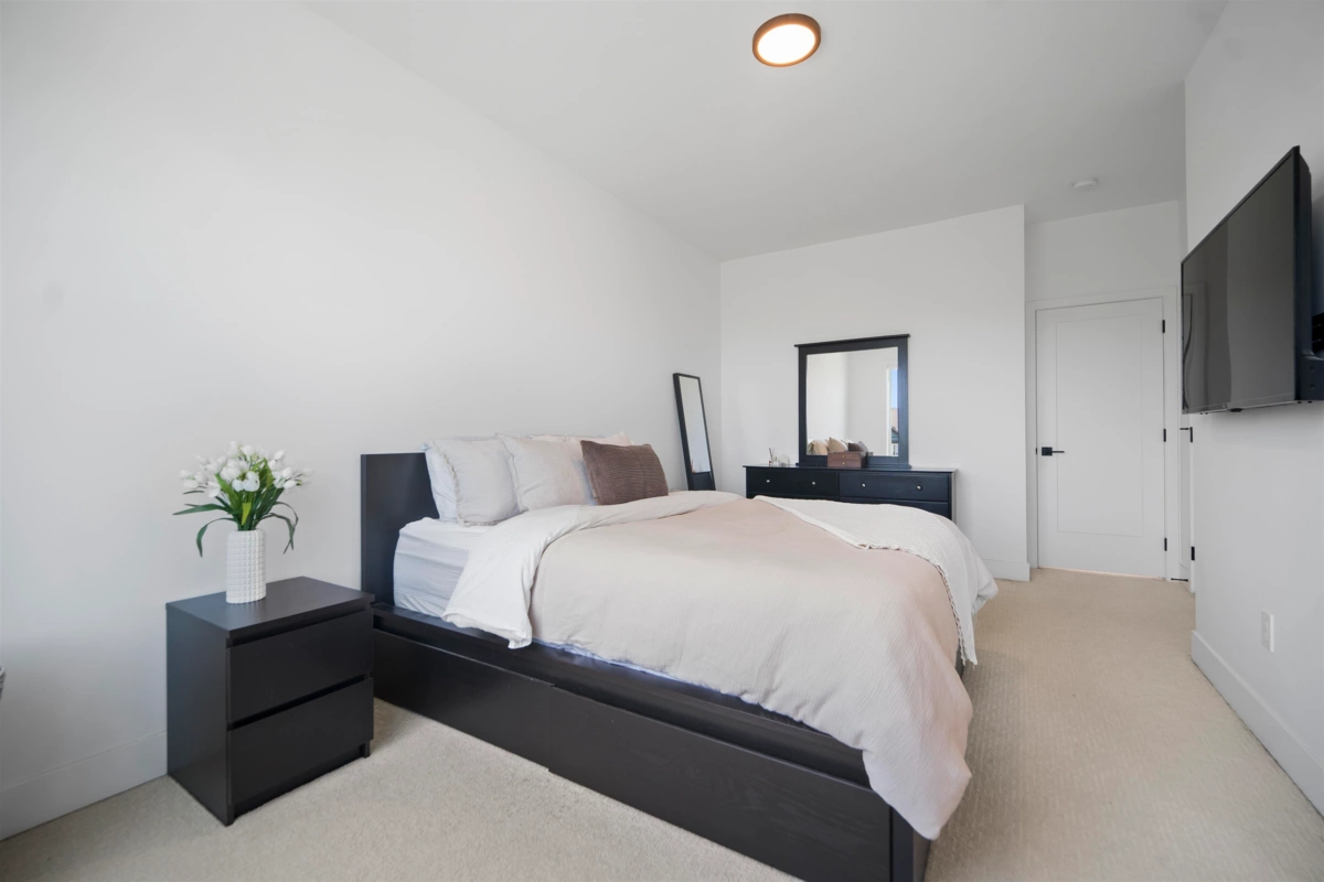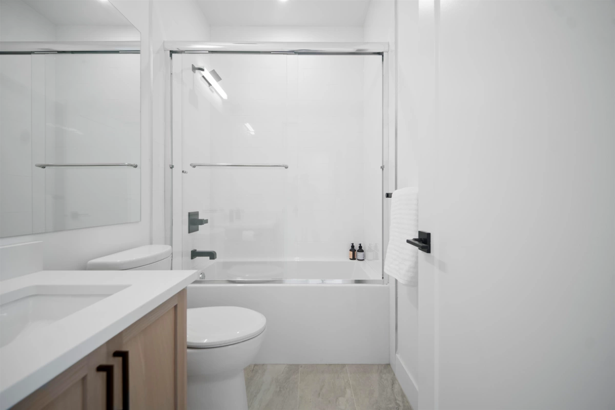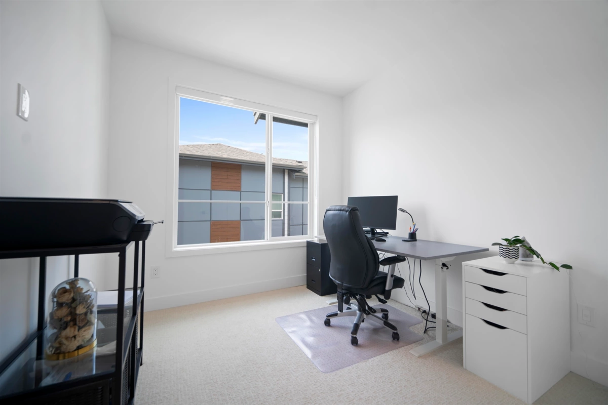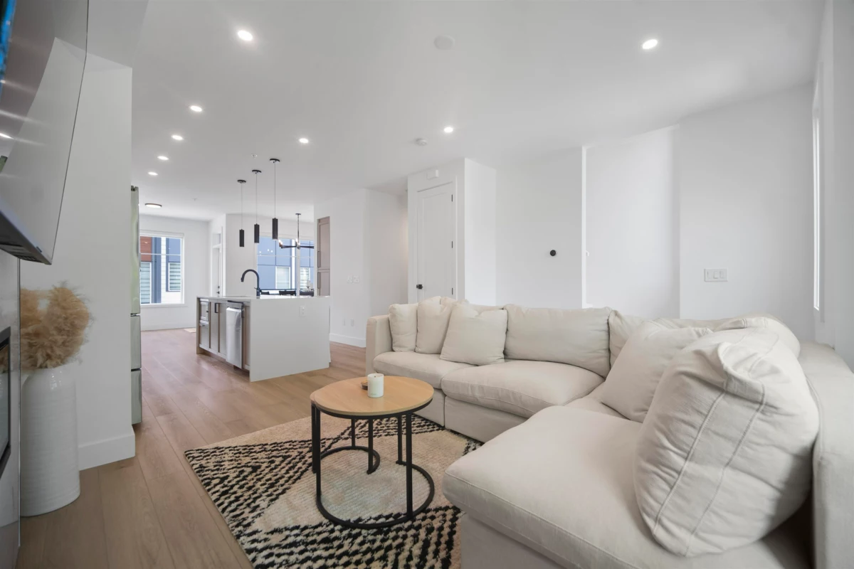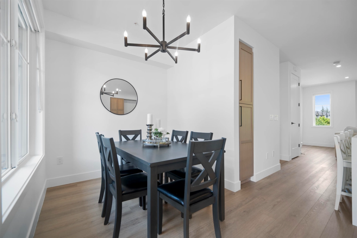 Crofton by Atrium Developments! Bright and modern nearly new 1,650 sq. ft. unit featuring 2-5-10 year warranty and AC. LG Kitchen appliances, 5 burner gas range, two toned maple/white kitchen, quartz counter tops. Living room, stone feature wall, gas fireplace. Covered patio with natural gas hook up off dining area. Upper level primary bedroom, walk in closet, ensuite with oversized glass shower & double sinks, 2 secondary bedrooms, main bath with tub/shower. Lower level bonus 4th bedroom! Double garage with ample room for storage. Prime location walking distance to shops, schools, parks and transit. Donna Gabriel Robins Elementary, Peter Ewart Middle & R.E. Mountain Secondary Schools. OPEN HOUSE, SAT. NOV. 22nd @ 12-2PM