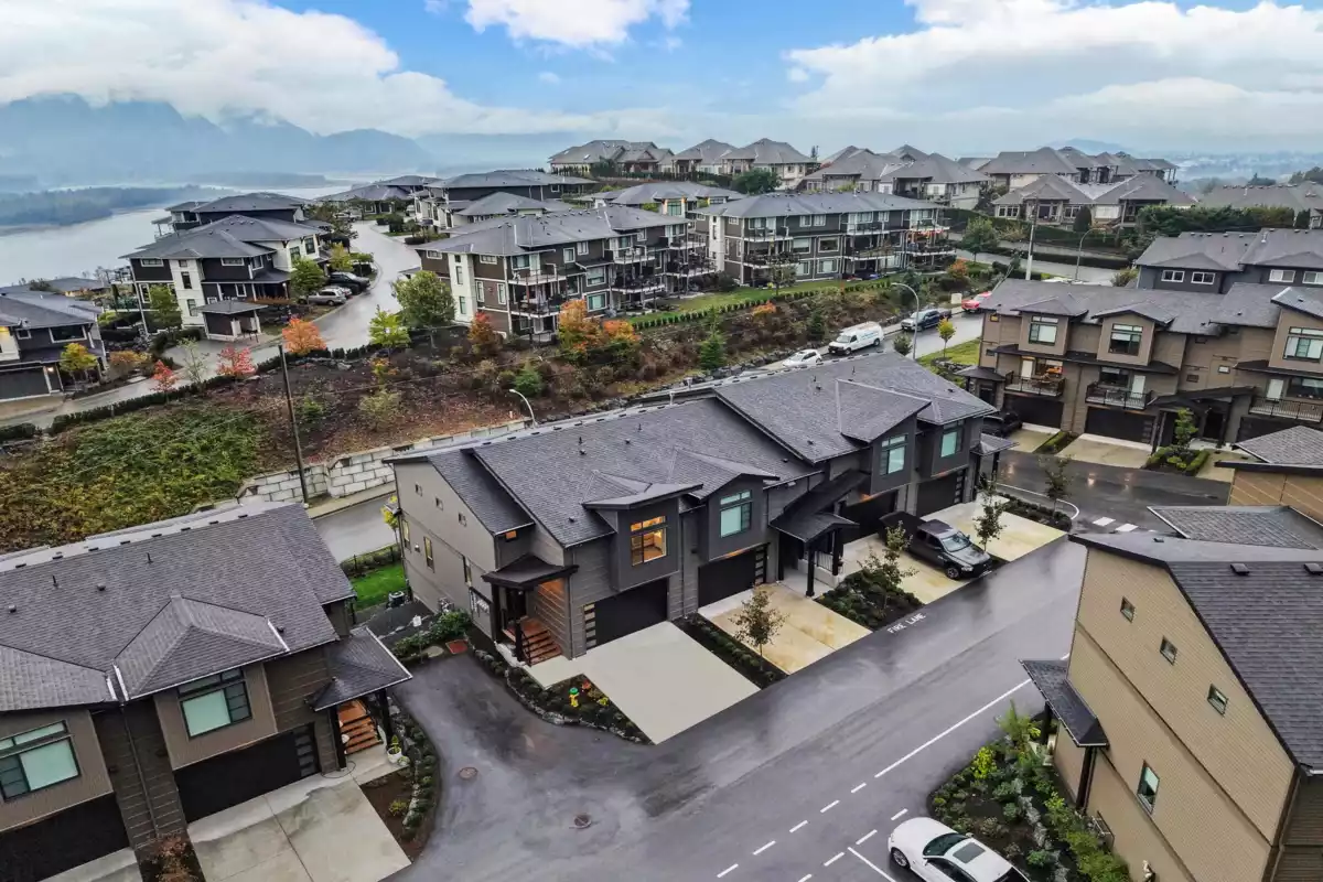 Welcome to Eagles Perch on Chilliwack Mountain! This immaculate corner unit shows like new and offers over 2,022 sqft. of bright, modern living surrounded by nature and mountain views. The spacious main floor features an open-concept layout with a cozy fireplace, stylish kitchen with a walk-in pantry, and tons of natural light. Upstairs offers three generously sized bedrooms, heigh ceilings in the spacious primary with a spa like ensuite, a laundry room, and a bonus nook for a desk or reading area. The basement incl. a large rec room, extra storage, and access to the private fenced yard. With a double garage, extra parking, and A/C, this home feels like a single-family home - without the maintenance! Enjoy mountain living just minutes from Hwy 1, shopping, parks, and trails. Call today!