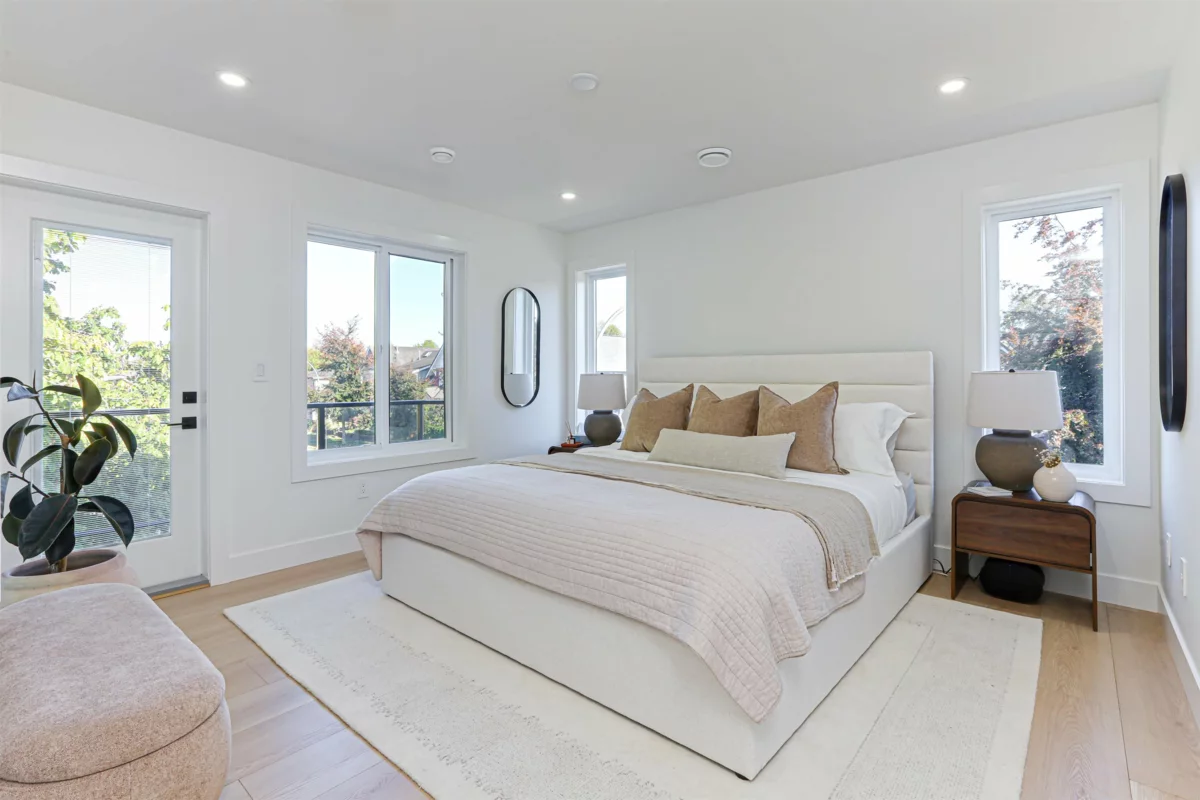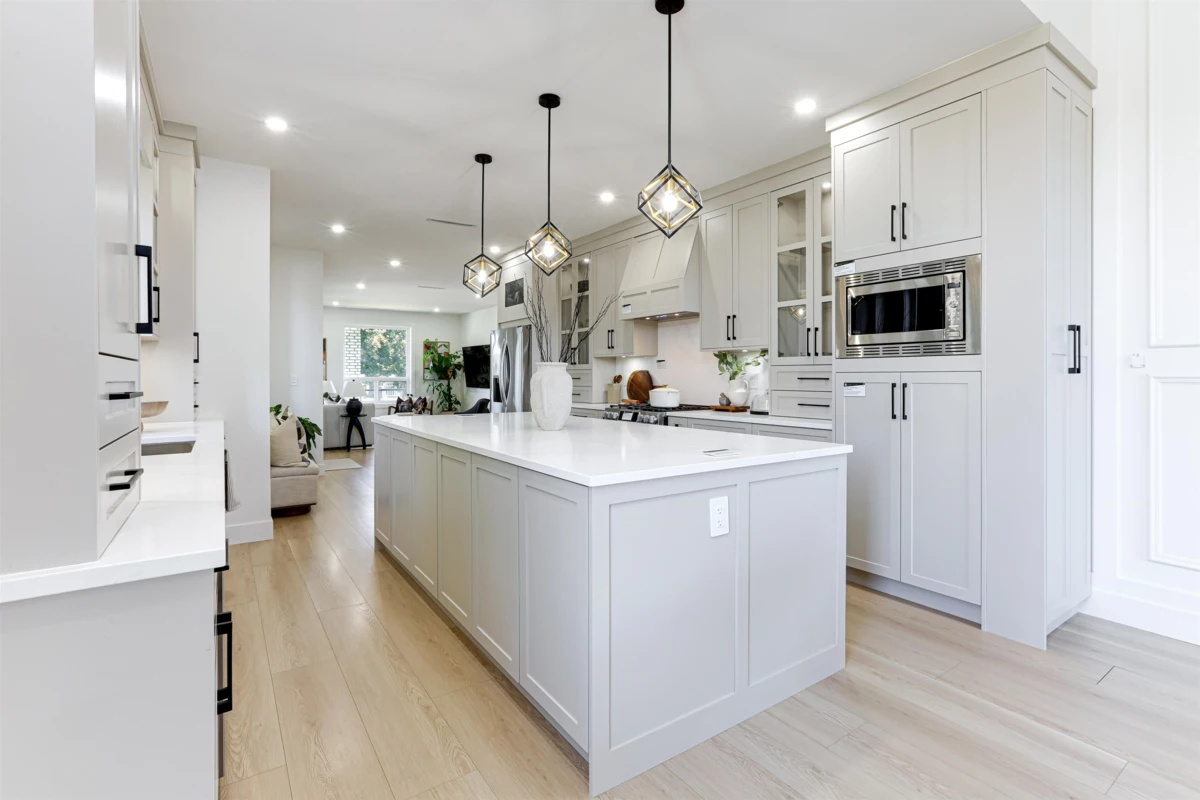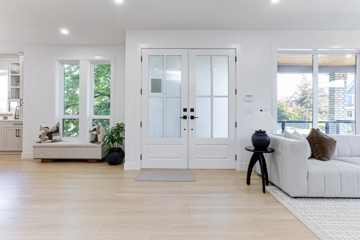 Brand New Luxury Home in Queensborough! This stunning 3024 SqFt. residence showcases modern design, quality craftsmanship, and exceptional functionality. With 6 bedrooms and a den plus 6 bathrooms mostly with ensuites it offers flexible living for families of all sizes. The layout includes a legal suite that can be configured as a 1 or 2 bedroom with lock-off option – ideal as a mortgage helper, in-law suite or private guest space. Enjoy radiant flooring heating, air conditioning, LED lighting and security. A double tandem garage with back lane access adds convenience. Located in the vibrant Queensborough community & minutes to schools, parks, Costco and the Skytrain Station. Backed by a 2-5-10 home warranty and move-in ready.