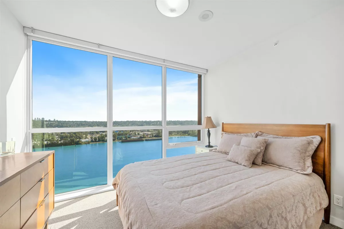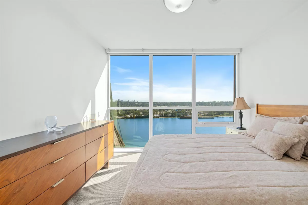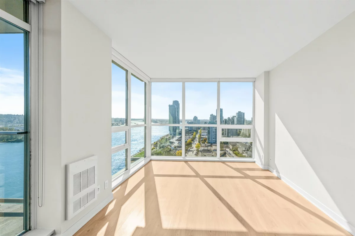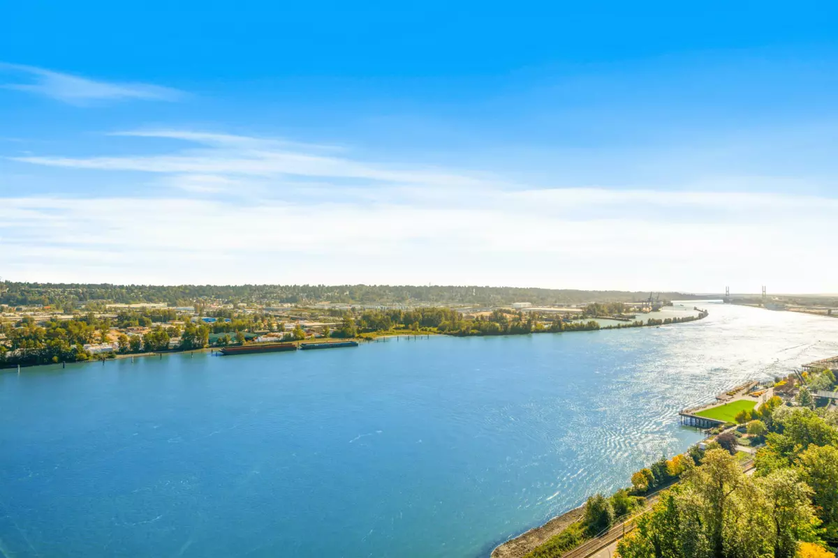 STUNNING PANORAMIC VIEWS from every room! Southwest 2 Bed, 2 Bath, Corner unit at Northbank with a spacious balcony & unobstructed views of the Fraser River and Downtown New West. Modern deisgn, Kitchen features quartz countertops, contemporary soft-close cabinets, plenty of storage/pantry space, stainless steel appliances (new fridge & microwave). Located next to Albert Crescent Park and just steps to Pier Park/waterfront, and skytrain. Convenient access to shops and restaurants in downtown New West. Storage locker can be rented from the strata for $10 a month. 1 Parking included.