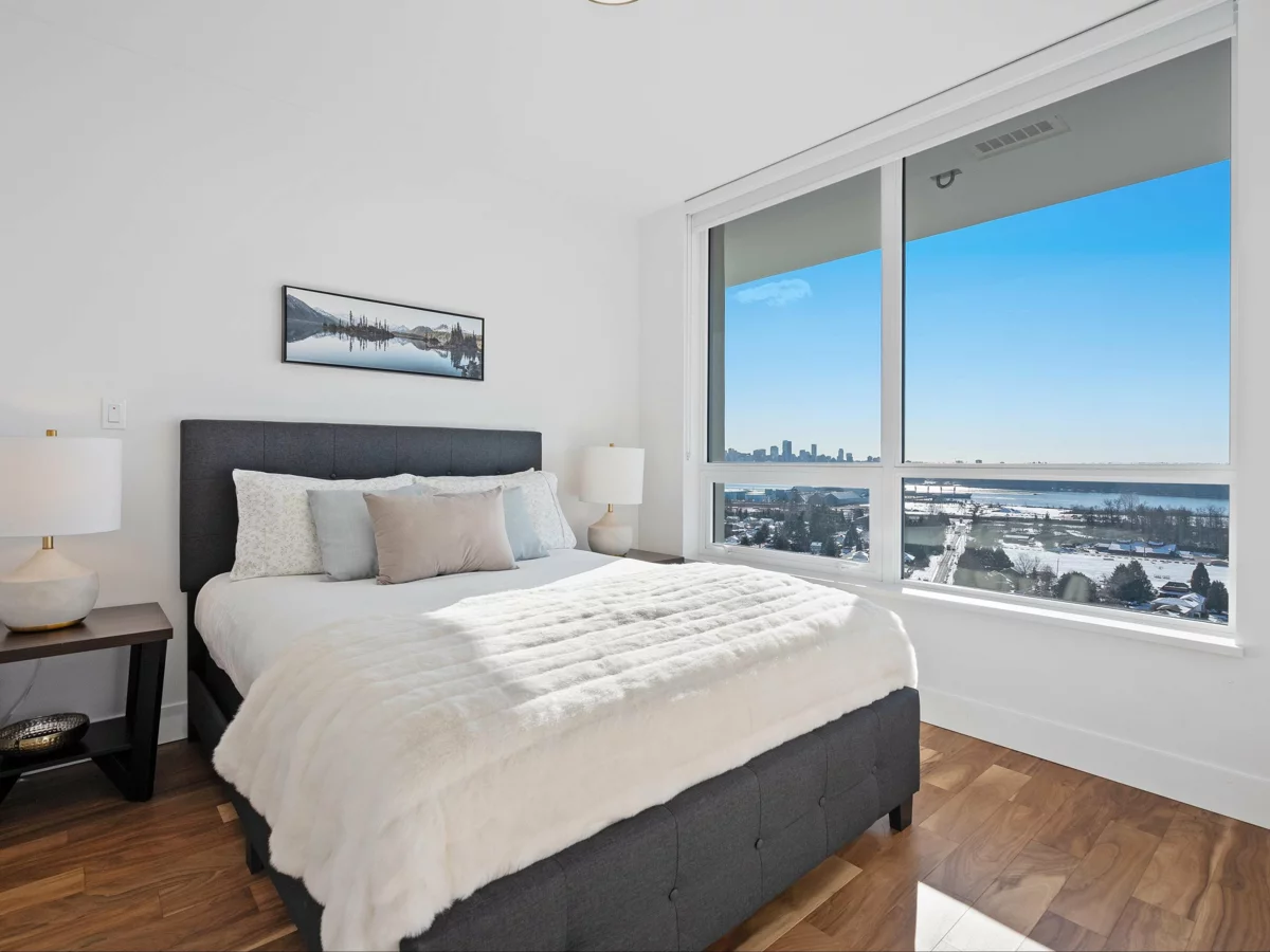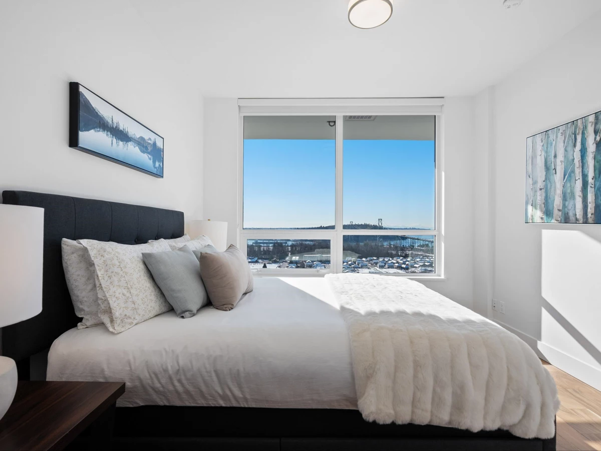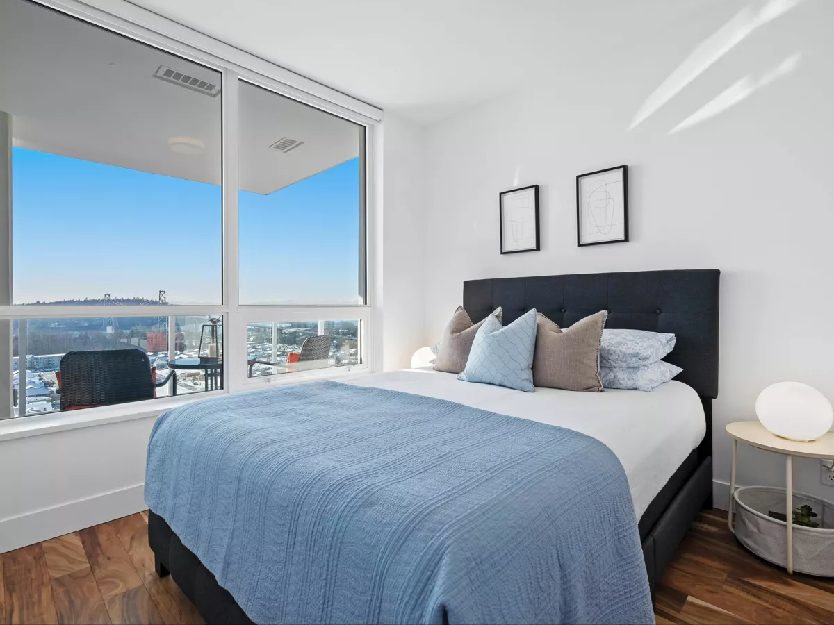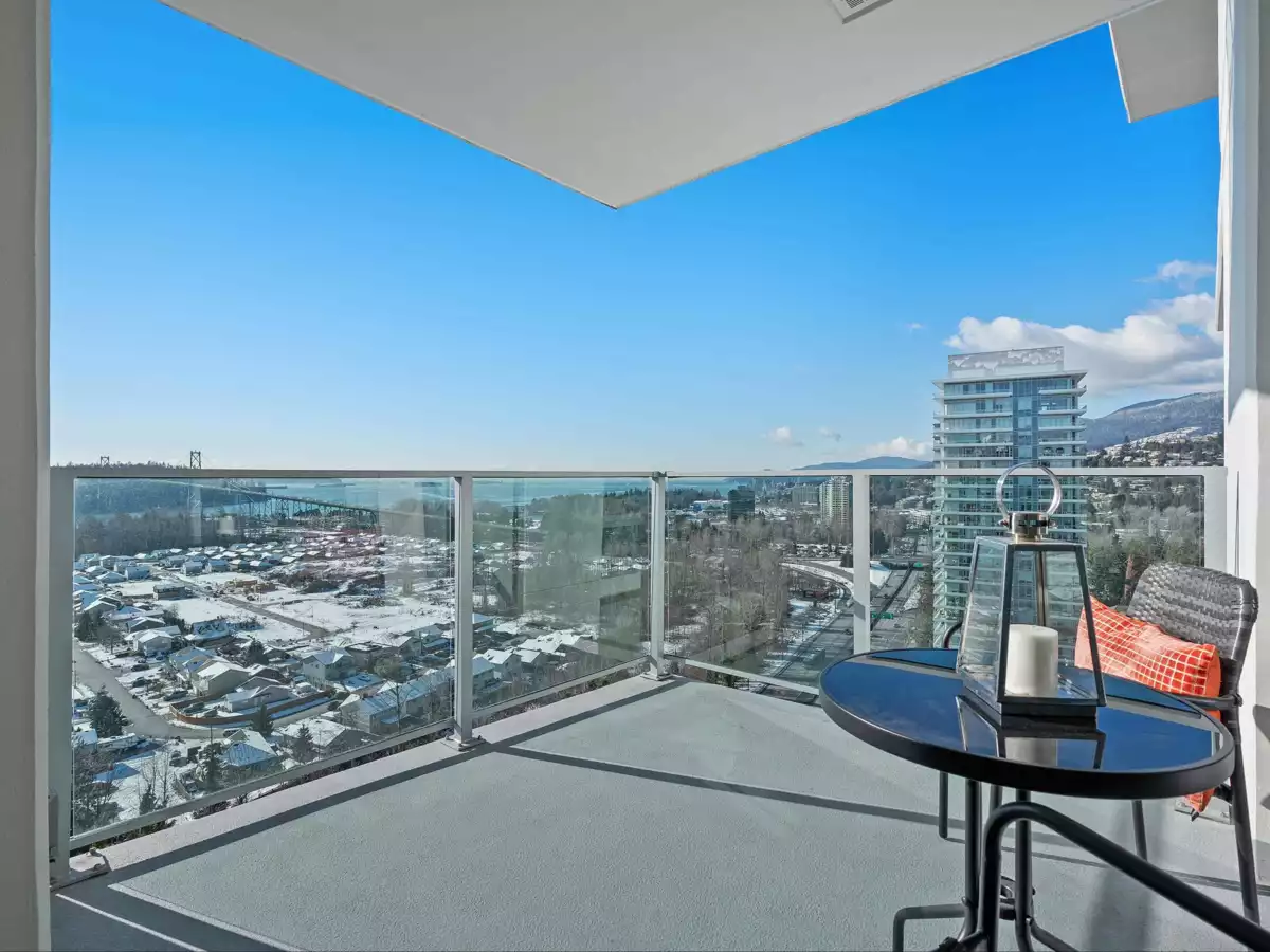 Imagine waking up each morning to SPECTACULAR UNOBSTRUCTED, PANORAMIC views of the sparkling OCEAN, vibrant city SKYLINE, and majestic MOUNTAINS—this is your everyday reality in the heart of Lions Gate Village. Centrally located on the North Shore and Perched high on the 20th floor of Park West, this 2-bed, 2-bath NEWLY built gem offers 825 SF of luxurious living. From soaring ceilings and rich H/W flrs to sleek quartz cntertops, premium German Gaggenau appliances, and elegant Grohe fixtures, every detail radiates sophistication. Step outside to enjoy resort-style amenities: a lap pool, hot tub, fitness facility, piano lounge, theatre, yoga/dance studio, sports viewing area and much more. 2 PRIME pkg stalls add ultimate convenience. ***OPEN SUN NOV 30 FROM 2-4 PM ***