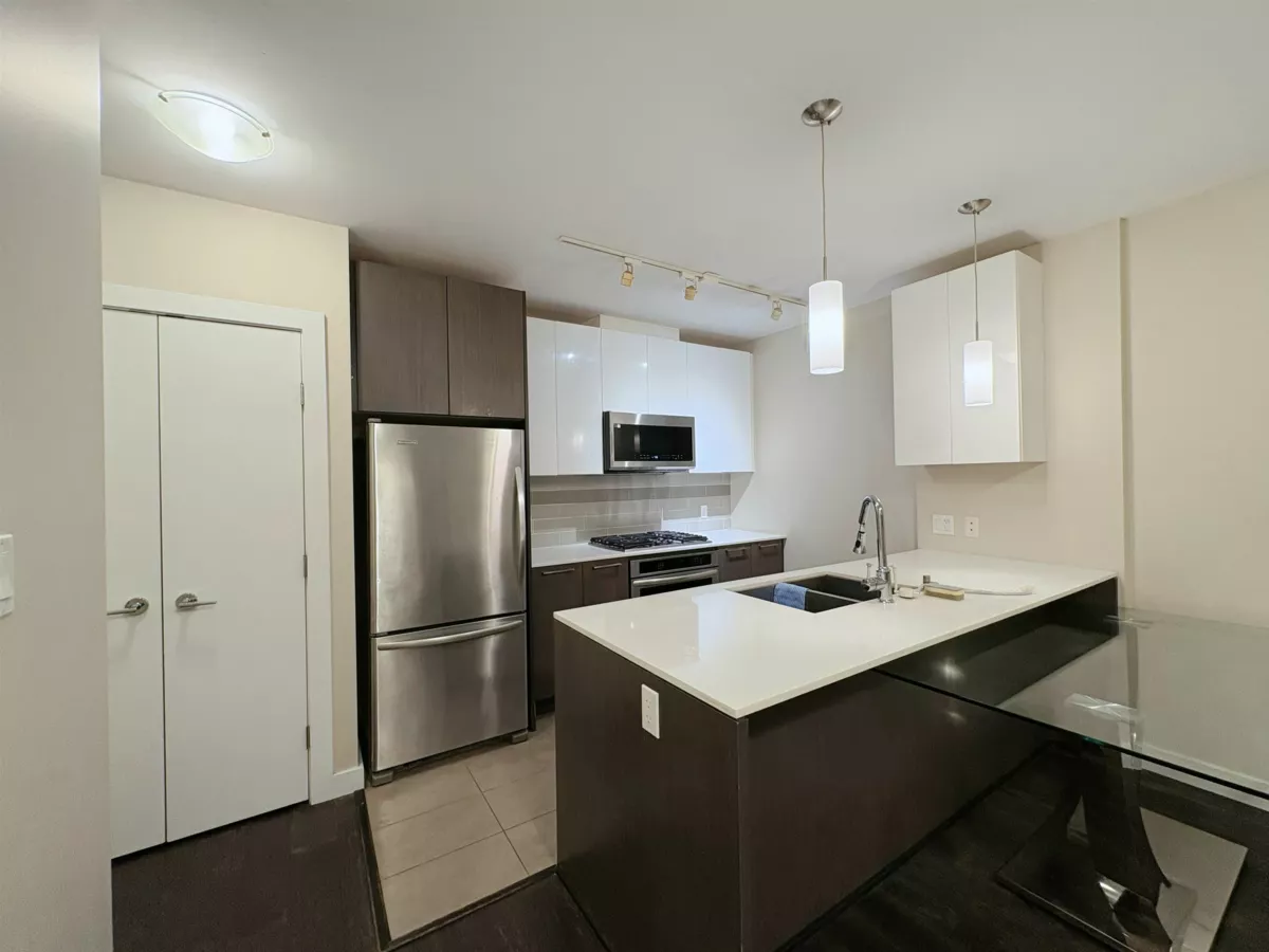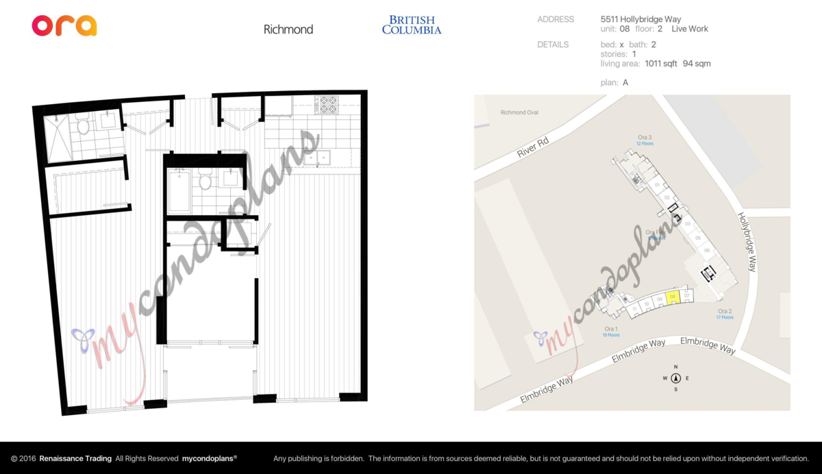 Ora building at Oval Village, central location. Walk to dyke trails, banks, restaurants, cafe, T&T supermarket, and Olympic Oval just within a minute. The SE unit at 2nd floor with concept of Live & Work, 1,011 SF functional space features 2 bedrooms, 2 bath like 2 suites (1 bedroom suite + 1 bedroom & living room, kitchen bachelor suite) with separate entry doors. Start your business & live same place. With air conditioning. 42,000 SF resort style wellness centre with indoor pool, squash court, gym, steam sauna.