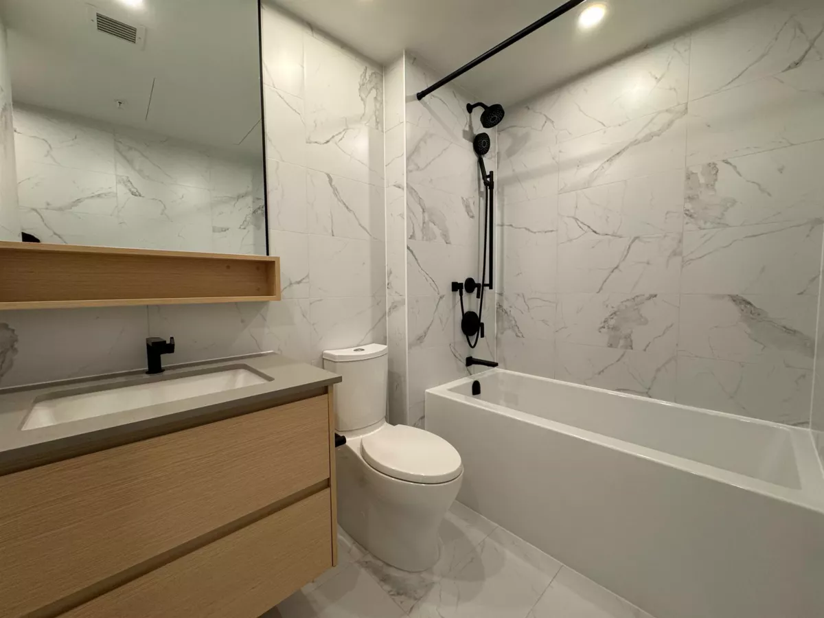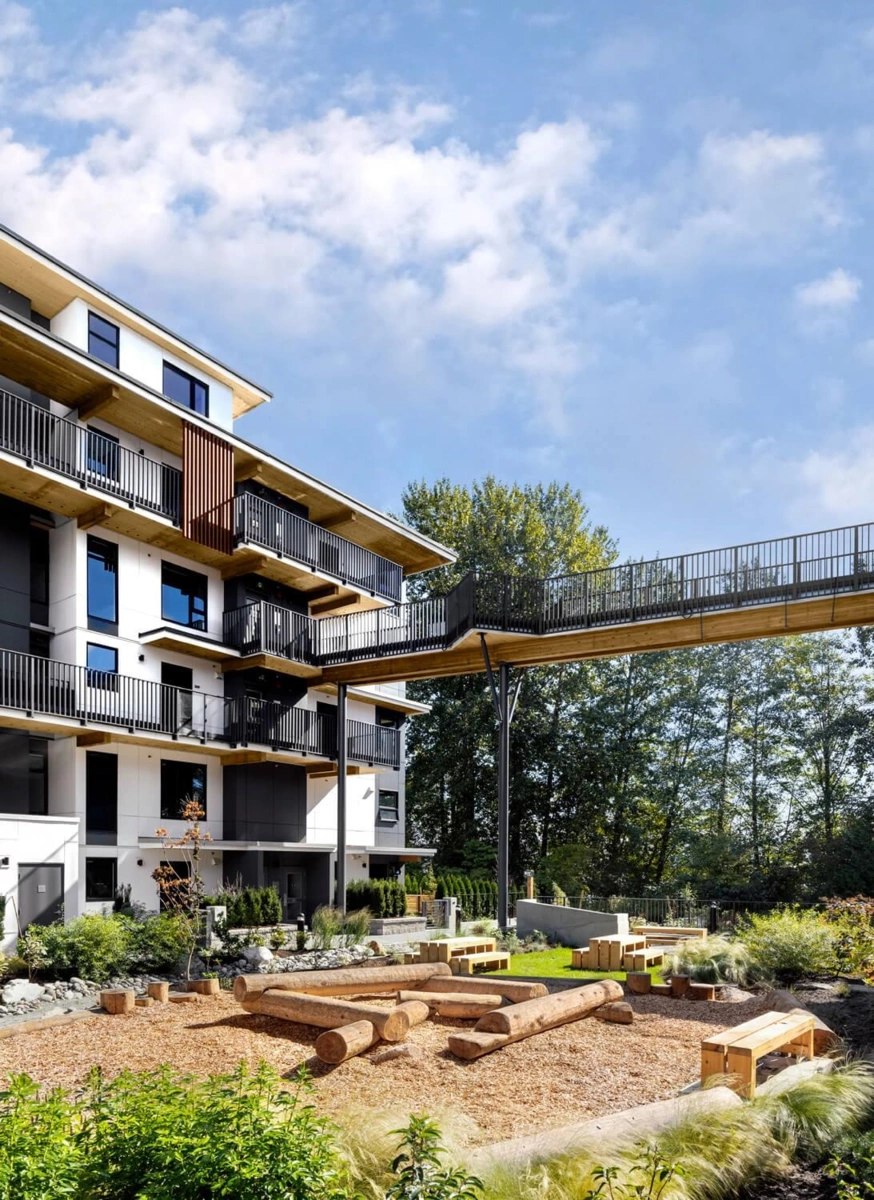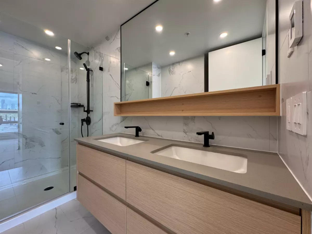 NEW PRICING & MOVE-IN READY! Welcome to Timber House by Aragon. This spacious 1,150 SF 2BR, 2 bath corner home offers plenty of windows, natural light & a wide living/dining layout for flexible living & a large balcony. Modern, high-design interiors feature exposed CLT panels, wide-plank oak floors, black roller blinds & A/C. The sleek kitchen offers full size Fisher Paykel + Smeg appliances, quartz counters, matte black hardware. Spa-inspired baths feature heated floors, floating vanities & frameless glass showers. Building amenities include: Courtyard, gym, BBQ area, dog wash, 1 parking (EV-ready opt), 1 storage. Steps to the boardwalk, 12 min to DT New West, 30 min to YVR, 35 min to DT Van. OPEN HOUSE EVERY SAT TO MON 1–4PM OR BY APPT.