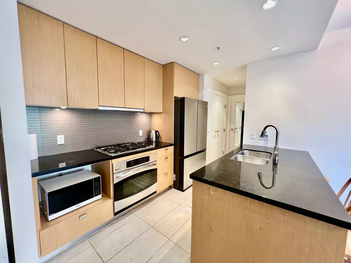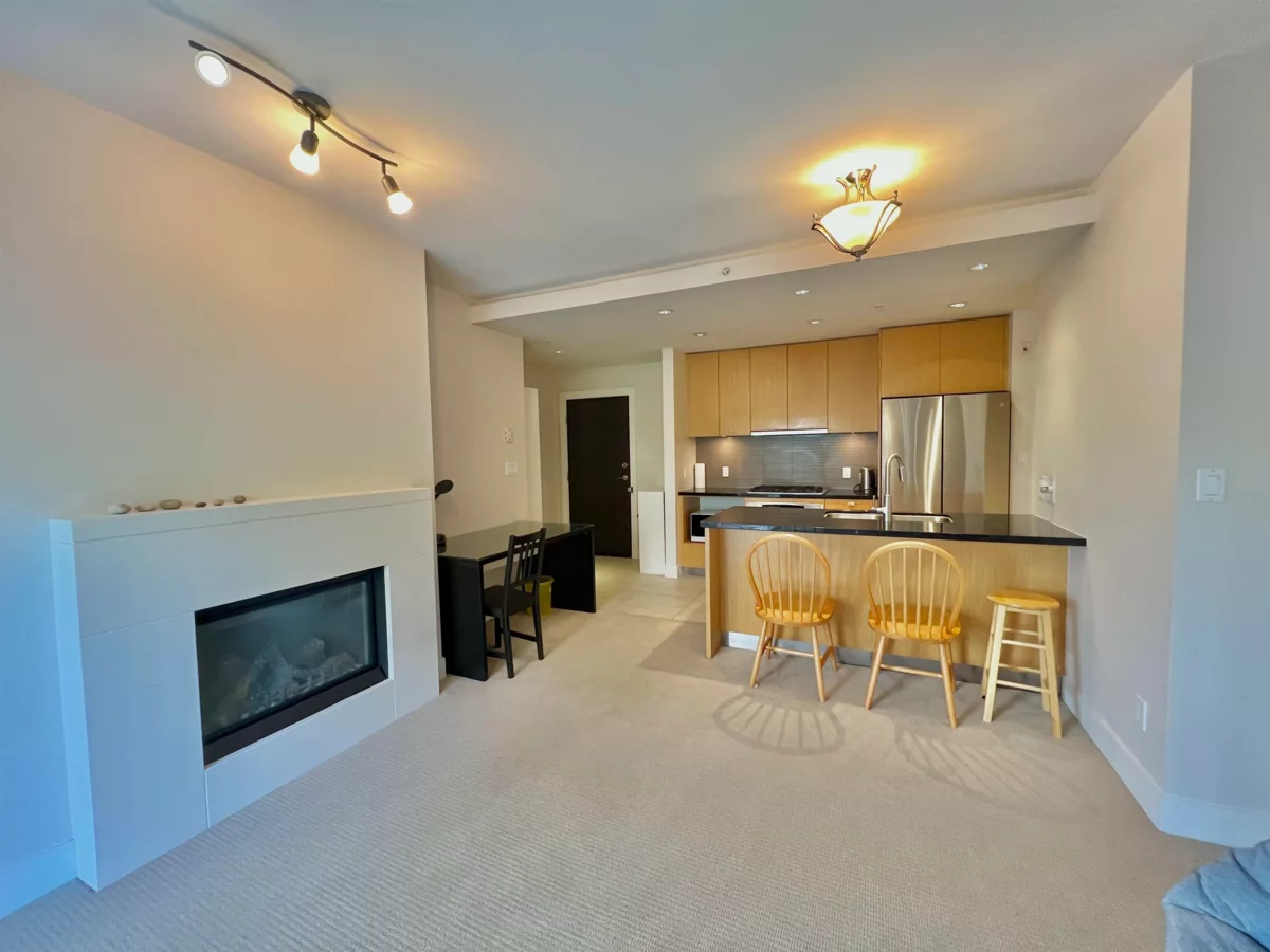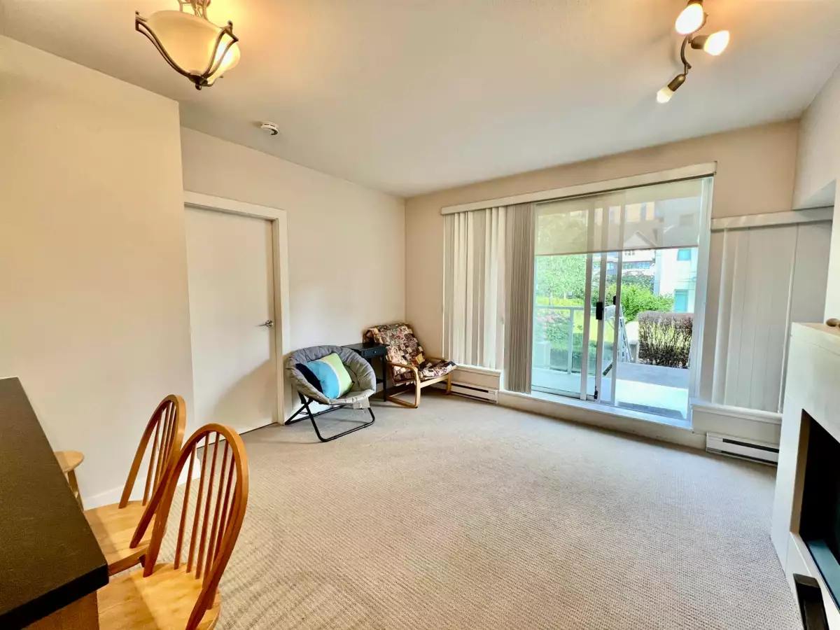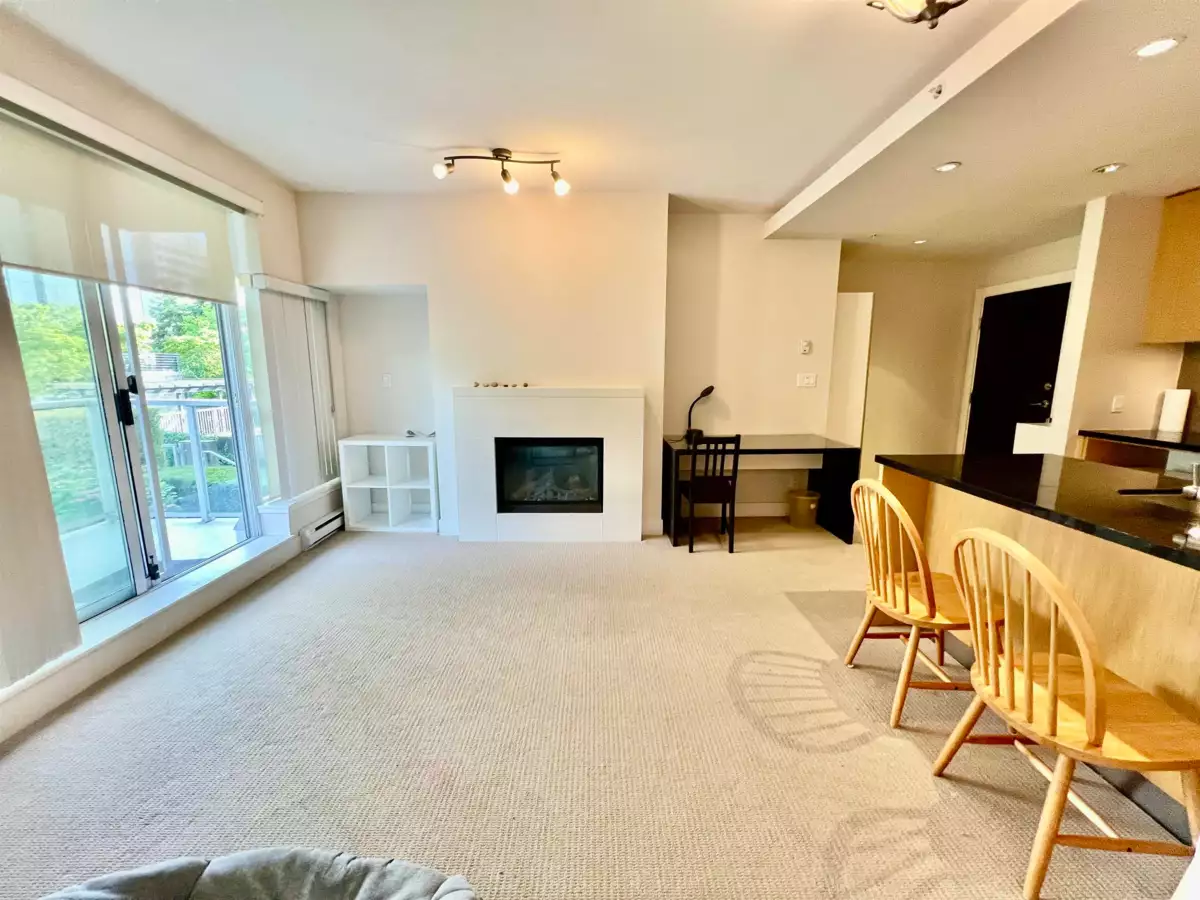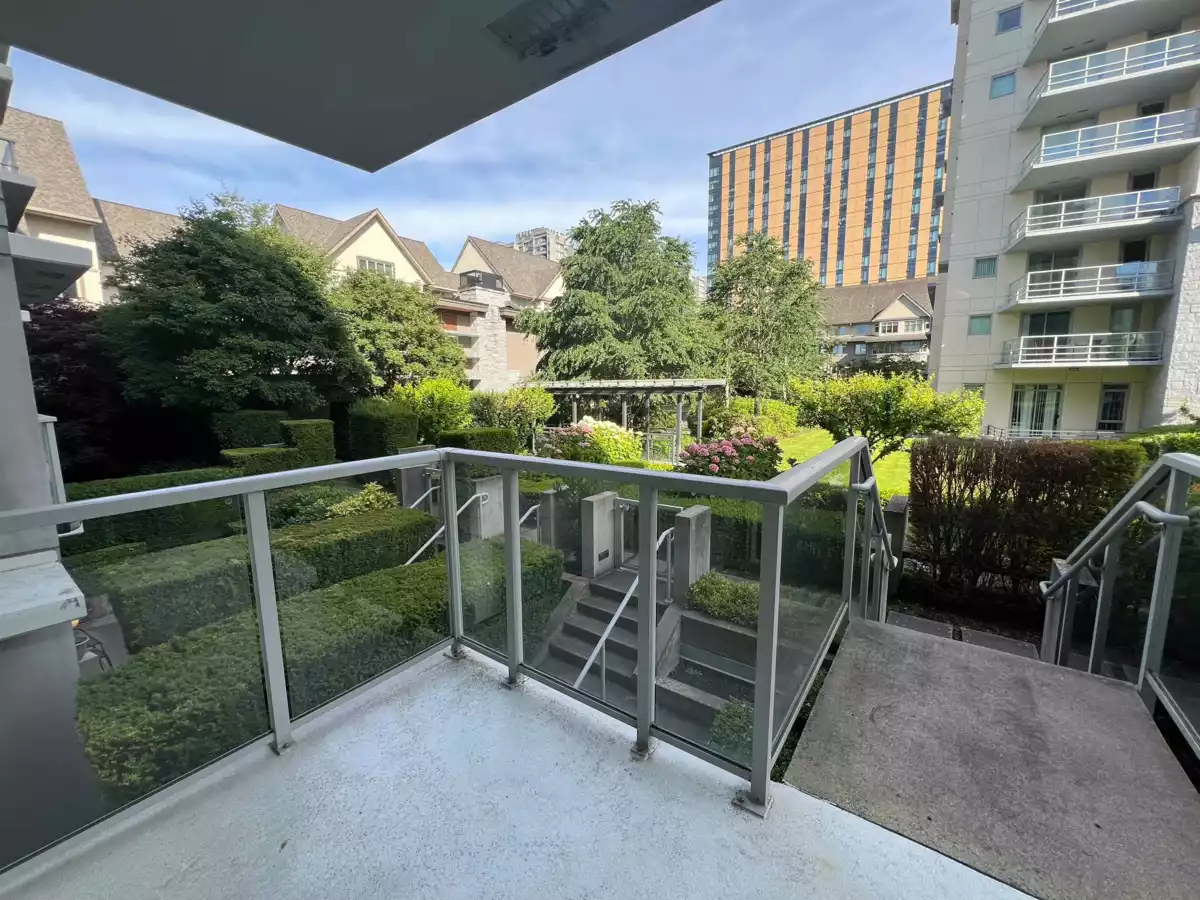 Stirling House - concrete high rise by Intracorp. This one bdrm garden level SOUTH-facing condo offers an open layout w/ 8'7 ceiling, in-suite laundry in unit storage room, gas cook top & fireplace. Walk out to the green space off your 11'6 x 5'12 patio -very quiet south-facing location. One secured parking spot. Pet and investor friendly. Be inspired and get active - close to all facilities UBC offerring.
