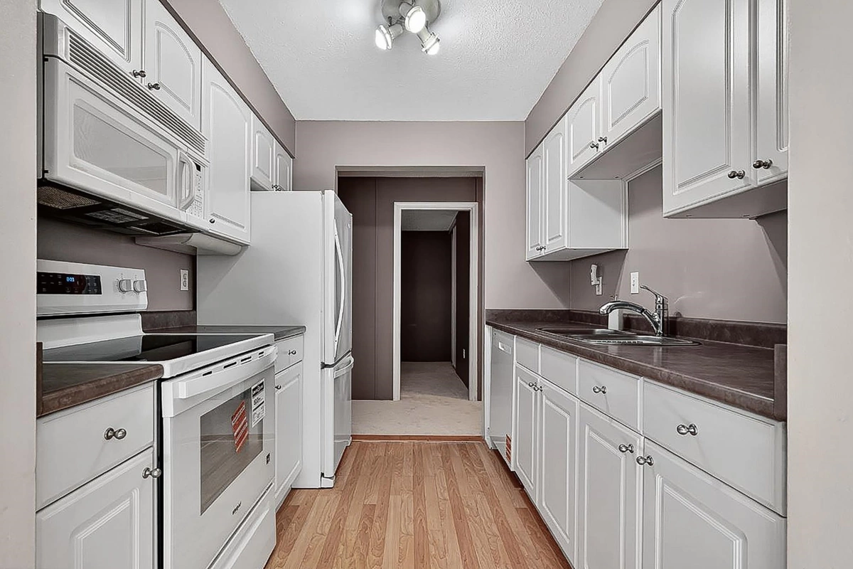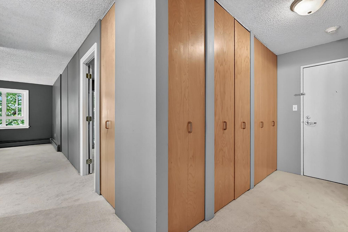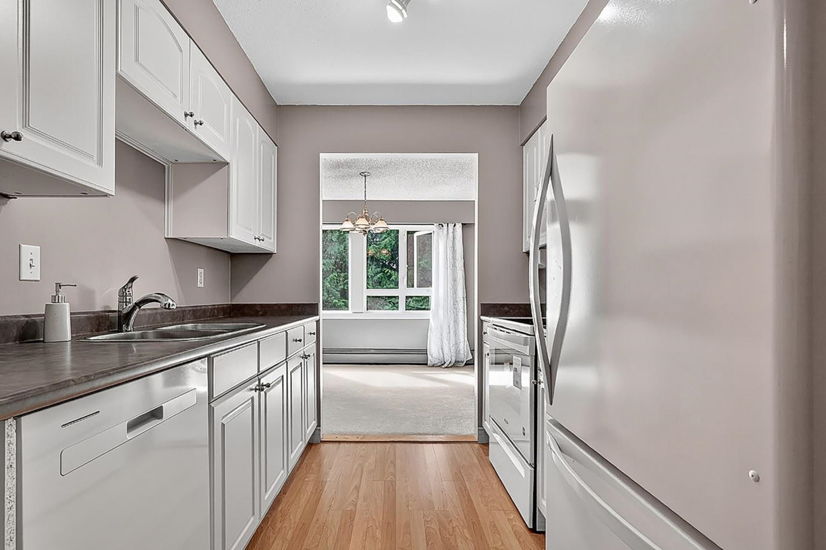 Quiet two bedroom two full bathroom corner unit features large windows & generous room sizes. Brand new carpet, new appliances and updated primary bathroom plus large storage closets off the front entrance hallway. Two large covered decks offers 218 sf of outdoor living to enjoy year round . Daniels Manor is a fully rain screened building with brick & metal exterior that has been updated with new roof, windows, patio sliding doors, decks & railings, elevators and boilers. This home includes secure parking for one vehicle plus lots of visitor parking for your visitors & separate storage. A GREAT convenient location, near restaurants and services, Costco, IKEA plus neighbourhood parks and recreation facilities.
