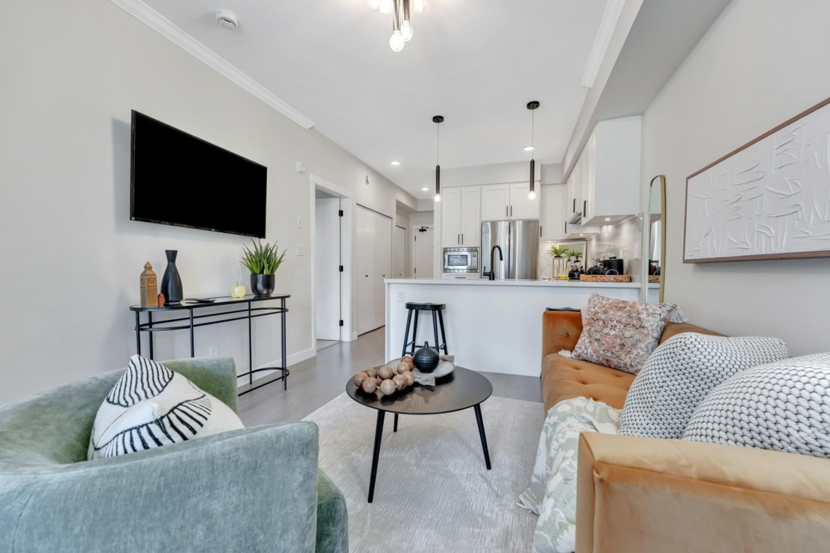 Inspire - Maple Ridge presents a thoughtfully designed 2 bedroom, 2 bath home with 851 sq ft of smart, modern living. This functional layout is enhanced by elegant white quartz countertops, stainless steel undermount sinks, an imported Italian tile backsplash, and quality stainless steel appliances. The living space features refined crown moulding, durable laminate flooring, and soft carpeting in the bedrooms for added comfort. Enjoy access to premium amenities, including a fully equipped gym with cardio and weightlifting gear, a yoga studio, a social lounge with ping pong and foosball, and rooftop patios. Discover inspired living in every detail. Move in March 2026.