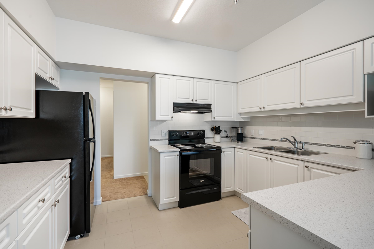Cantebury Green! This renovated corner unit boasts 2 BDRMS and 2 BATHS, 1,244 sq. ft. of living space. The brand-new kitchen FEAT. modern countertops, appliances, cabinets, & hardware. Enjoy the comfort of new carpets throughout the unit. The updated bathrooms are equipped with contemporary cabinetry, sinks, faucets, flooring, and tub surrounds. A balcony overlooking a private yard. Maint. fees include natural gas fireplaces. The unit comes with one parking space and one storage locker. Experience hotel-style amenities such as a clubhouse, pool, gym, and tennis courts, all within your community. Situated in a desirable neighbourhood, this home is conveniently located near parks, schools, and public transit, offering easy access to all necessities. Call now to book a tour!