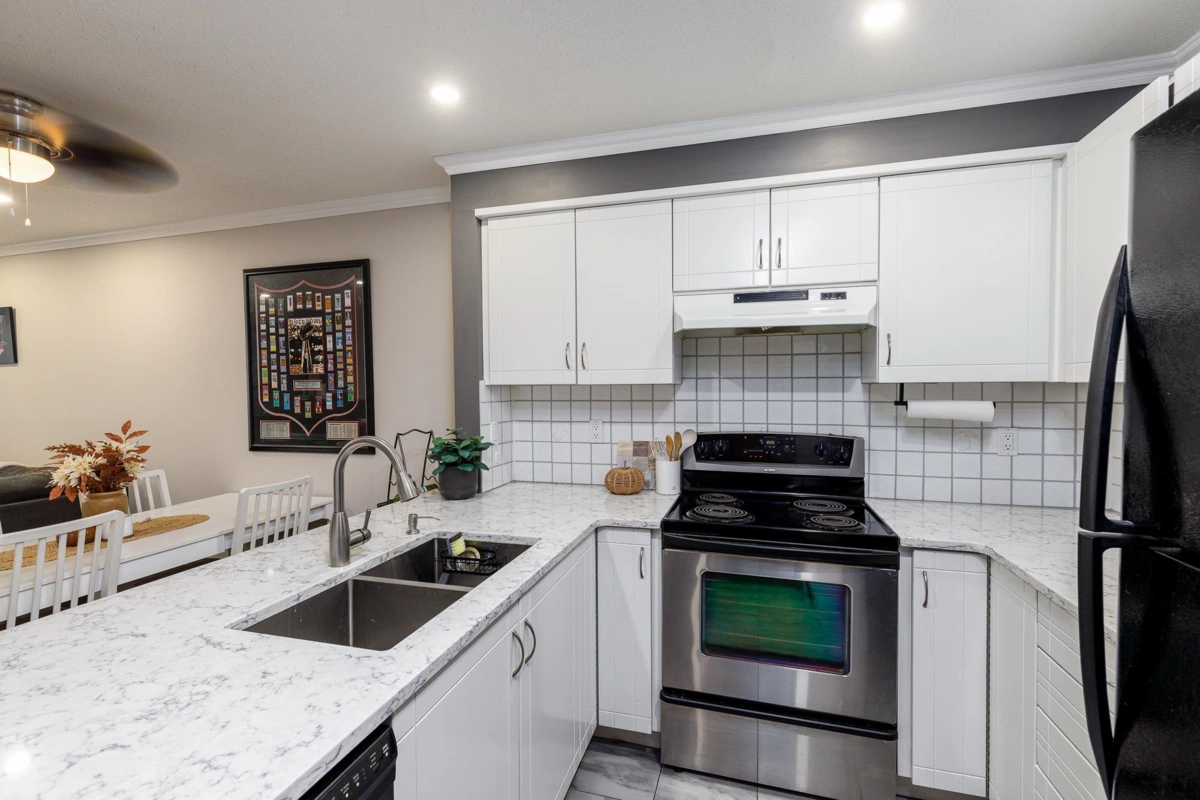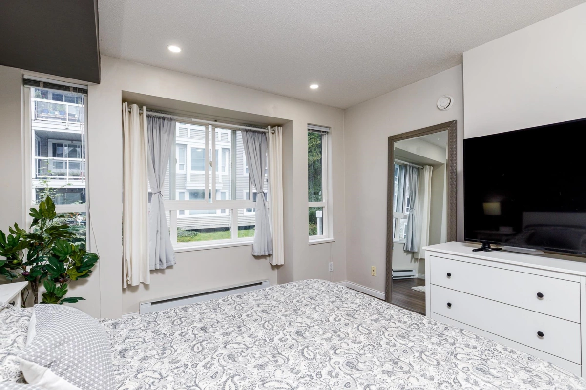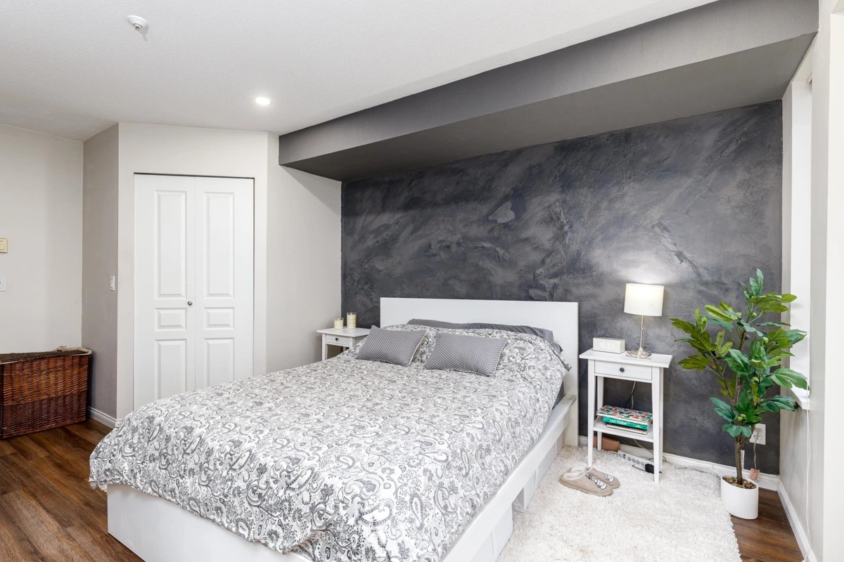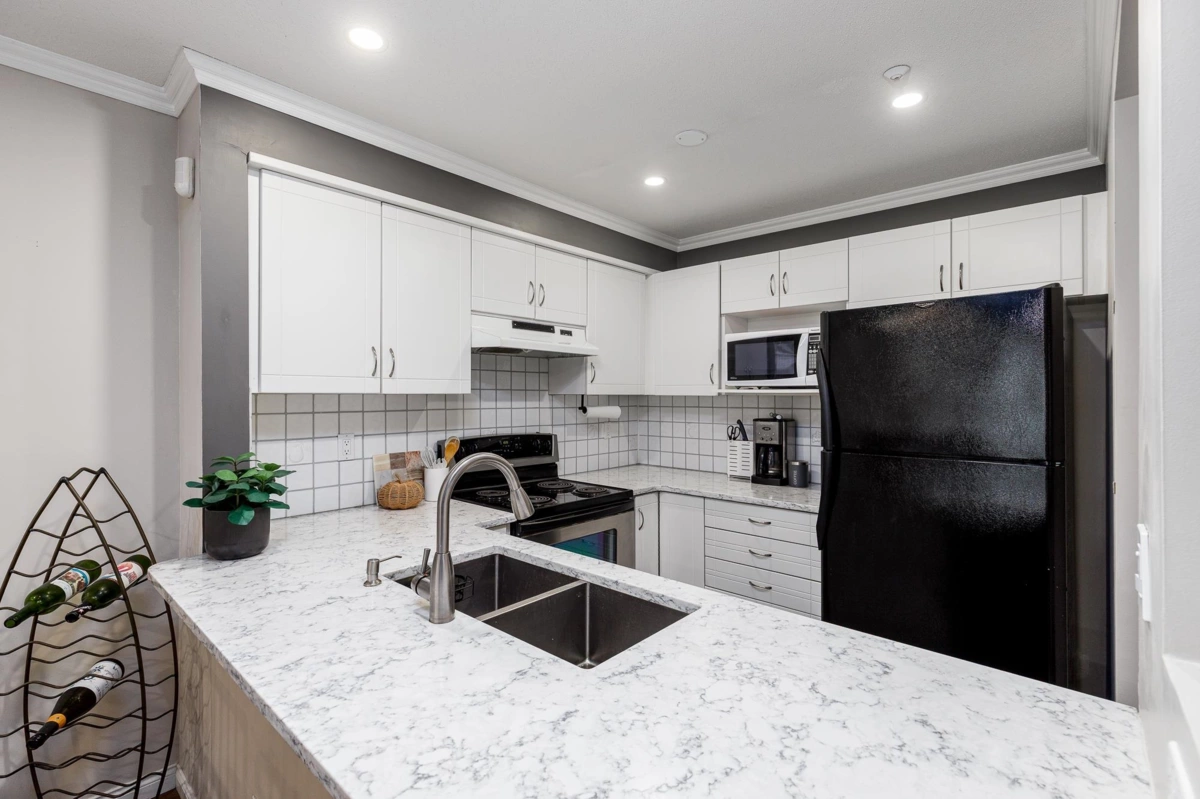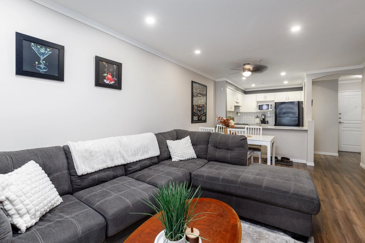 Beautiful 1 bed + den in the heart of Port Moody! Naturally bright and elegantly updated. The oversized bedroom features a walk-in closet, and the very large den is a great office or guest room. The open-concept layout offers a spacious kitchen flowing into the dining and living areas, perfect for entertaining. Great value per sqft. New roof fully paid for peace of mind. Unbeatable location: walk to SkyTrain, West Coast Express, Rocky Point Park, Brewers Row, shops & more. Comes with 1 large parking stall and storage locker