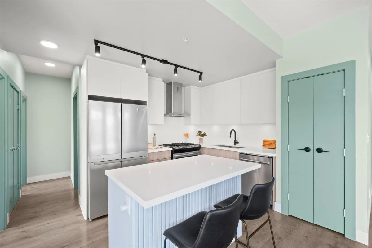 3 BED 2 BATH CORNER CONDO, HUGE PRIVATE PATIO, EV PARKING. Downsizing or upsizing - you don’t need to compromise on space in this perfectly laid out 1238 sqft condo that feels like a home in Destiny 2 (2017), a sought-after West Coast Zen - inspired bldg in the connected community of Raven Woods. SW exposure & flr-to-ceil windows for all-day light. Elevated design features spacious open plan living, quartz counters, gas range, f/p, mech blinds, new appls, spa-like ensuite, W/I closet. 2 side by side parking w/ EV! Relax or entertain on your private 200sf patio with tree top vistas. Amenities: gym, theatre, party room, kayak room, storage, dog wash & more. Trails, beaches, schools, shops mins away!