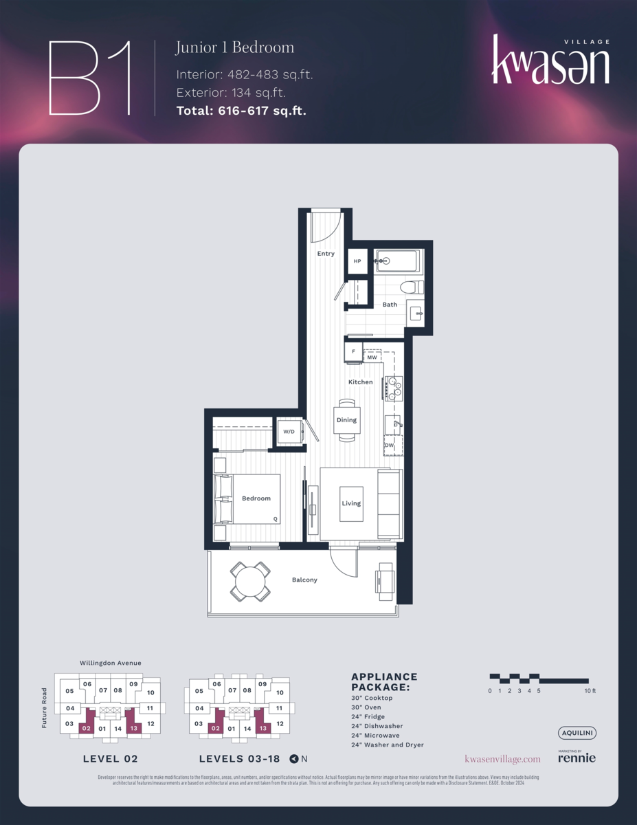 Discover kwasen Village by Aquilini Development, a 40-acre masterplanned community in Central Burnaby across from BCIT at Canada Way & Willingdon Ave. Designed for connected living, it offers modern residences, parks, shops, a grocery store, restaurants and cafes all within walking distance. This JR. 1 Bedroom home features Fulgor Milano and Fisher & Paykel appliances, interiors by award-winning CHIL Design, EV-ready parking, and a private locker. Residents enjoy over 19,000 sq.ft. of amenities including a co-work lounge, theatre, rooftop terrace plus access to Cedar House's fitness centre, infrared sauna, Halotherapy Salt Room, private wellness circuit, and outdoor community spaces