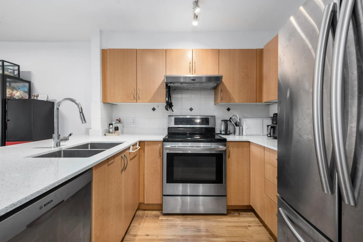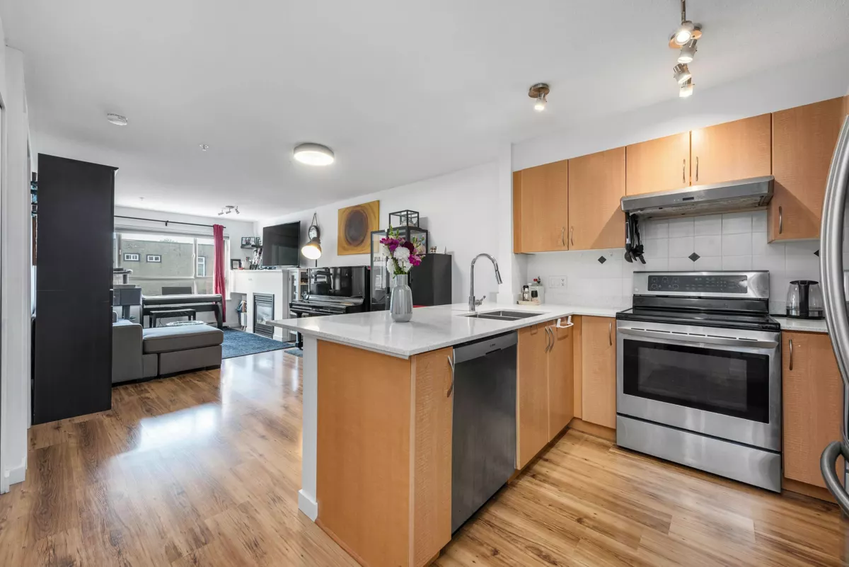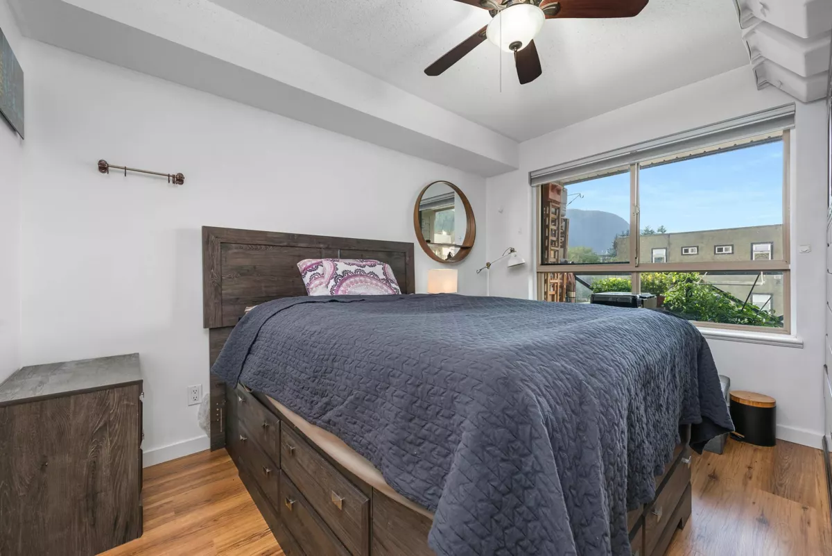 Bright and inviting 1 bed, 1 bath condo in the heart of downtown Squamish! This 628 sq ft south-facing unit features a spacious layout, Caesarstone counters, stainless steel appliances, gas fireplace (gas included in fees), laminate flooring, and a deep soaker tub. Enjoy peek-a-boo views of the Chief from your large balcony. Comes with 1 parking stall and an oversized storage locker conveniently located across the hall. Steps to shops, cafes, trails, and more. A perfect fit for outdoor enthusiasts or remote workers seeking lifestyle and location!