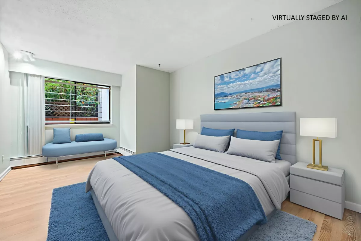 Spacious 1-bedroom ground-level unit offers over 760 sq. ft. of comfortable living space with a private walk-out patio, perfect for relaxing or entertaining. This inviting home features a bright kitchen and a functional open layout from the large living room to dining room.The building is well managed with an active counsel. Elevator upgraded and re-piping done throughout the building. With a walk score of 99, this home is ideally located on a quiet street. Walk to Columbia SkyTrain station in under 5 minutes and easily commute to Vancouver downtown. Lots of shops and restaurants around and walking distance to the beautiful Westminster Pier Park along the Fraser River. Ecole Qayqayt Elementary is steps away. Easy access to major highways and the Pattullo Bridge.