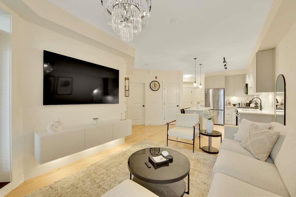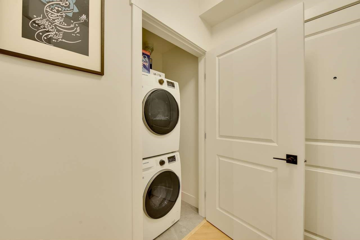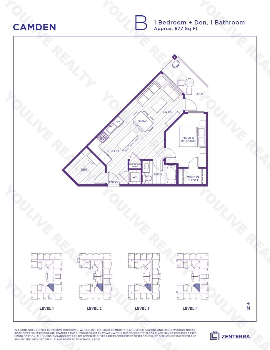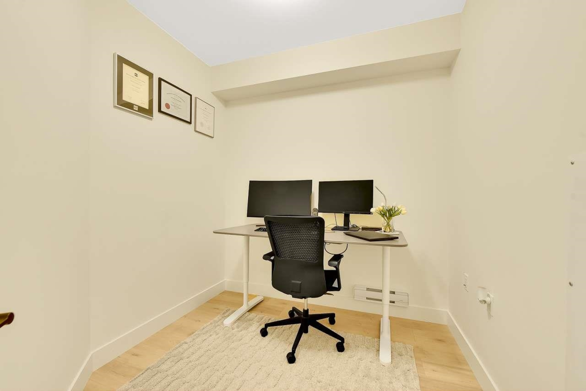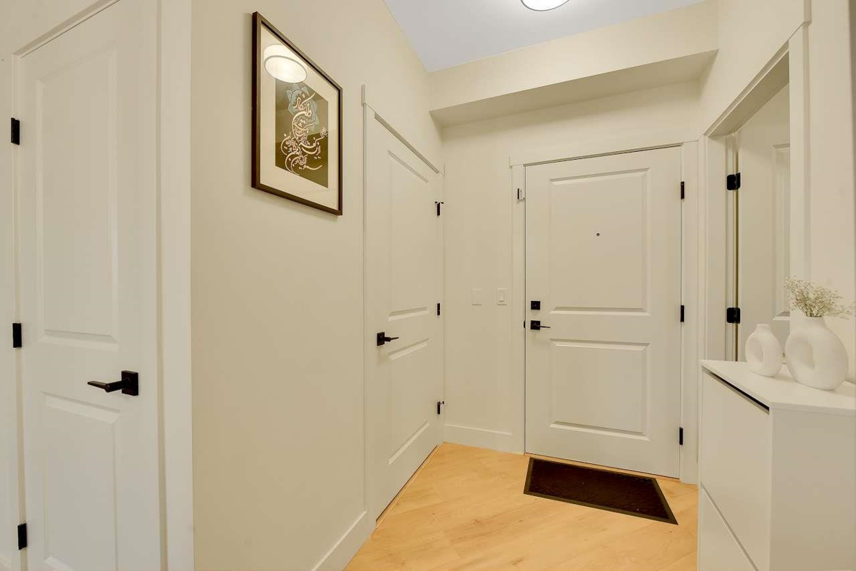 Camden by Award-Winning Zenterra! Step into this bright and modern 1 1-bedroom+den condo located in the heart of Langley’s thriving Willoughby neighborhood. This meticulously designed home offers 677 sq ft of smart, functional living space—perfect for first-time buyers, professionals, or investors. The open-concept layout features a sleek, designer kitchen with quartz countertops, stainless steel Samsung appliances, and soft-close cabinetry, flowing into a spacious living area with large windows that fill the home with natural light. Den is perfect for a home office, nursery, or extra storage, W. facing balcony. The spacious bedroom fits a king-sized bed, and the modern 4-piece bathroom is styled with premium fixtures. 1 parking & Storage, Pets ok, built-in piping for AC.