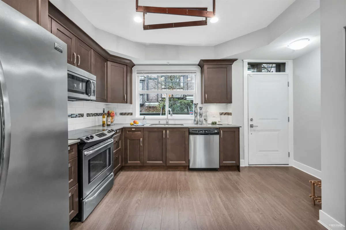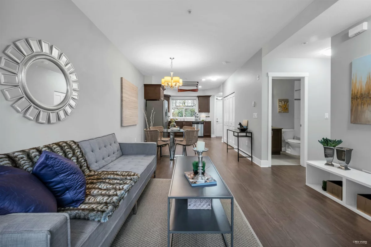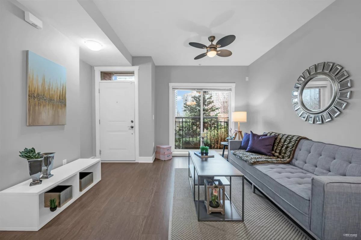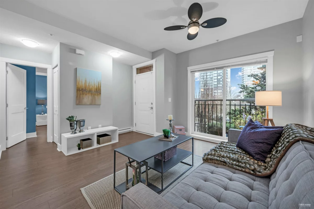 Ground floor unit facing the quiet side of the building, boasting a smart and efficient layout, this spacious 705-square-foot unit maximizes space and offers a comfortable flow. Featuring new laminate floors, fresh paint, and a modern kitchen, the unit faces a private courtyard—perfect for enjoying peaceful moments at home. Only a 5-minute walk to SkyTrain, offering easy access to shops, restaurants, cinemas, the New West Quay, and the Fraser River Boardwalk. One parking and one big locker included.