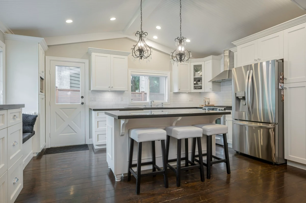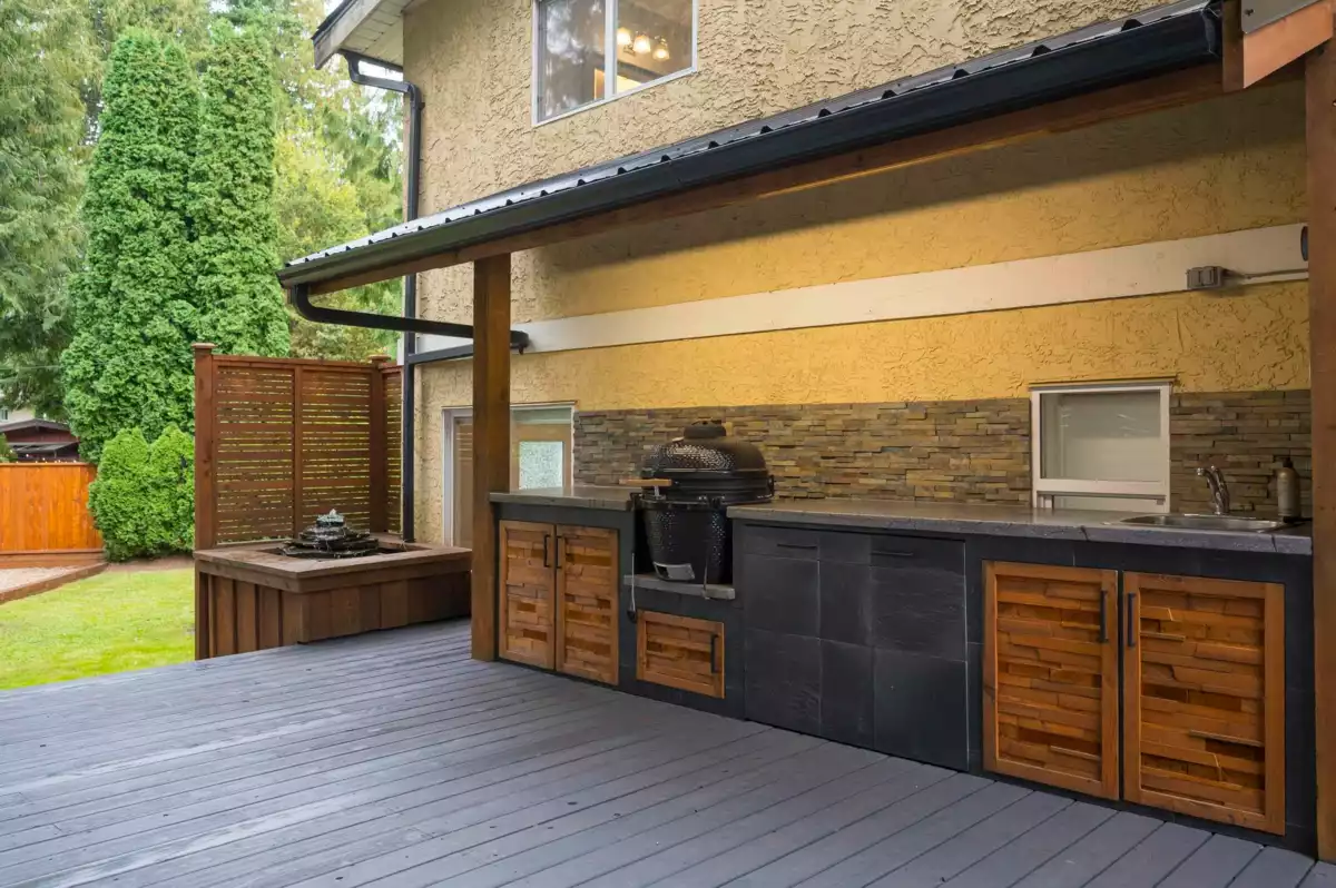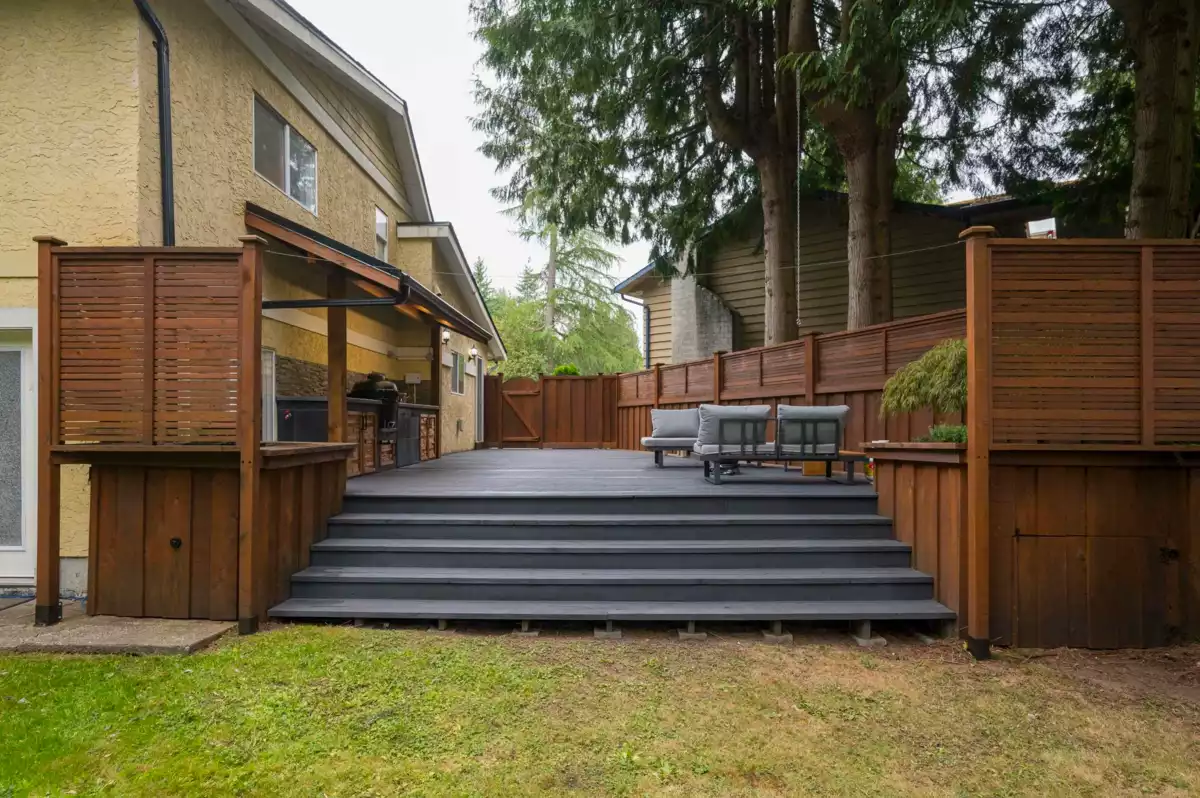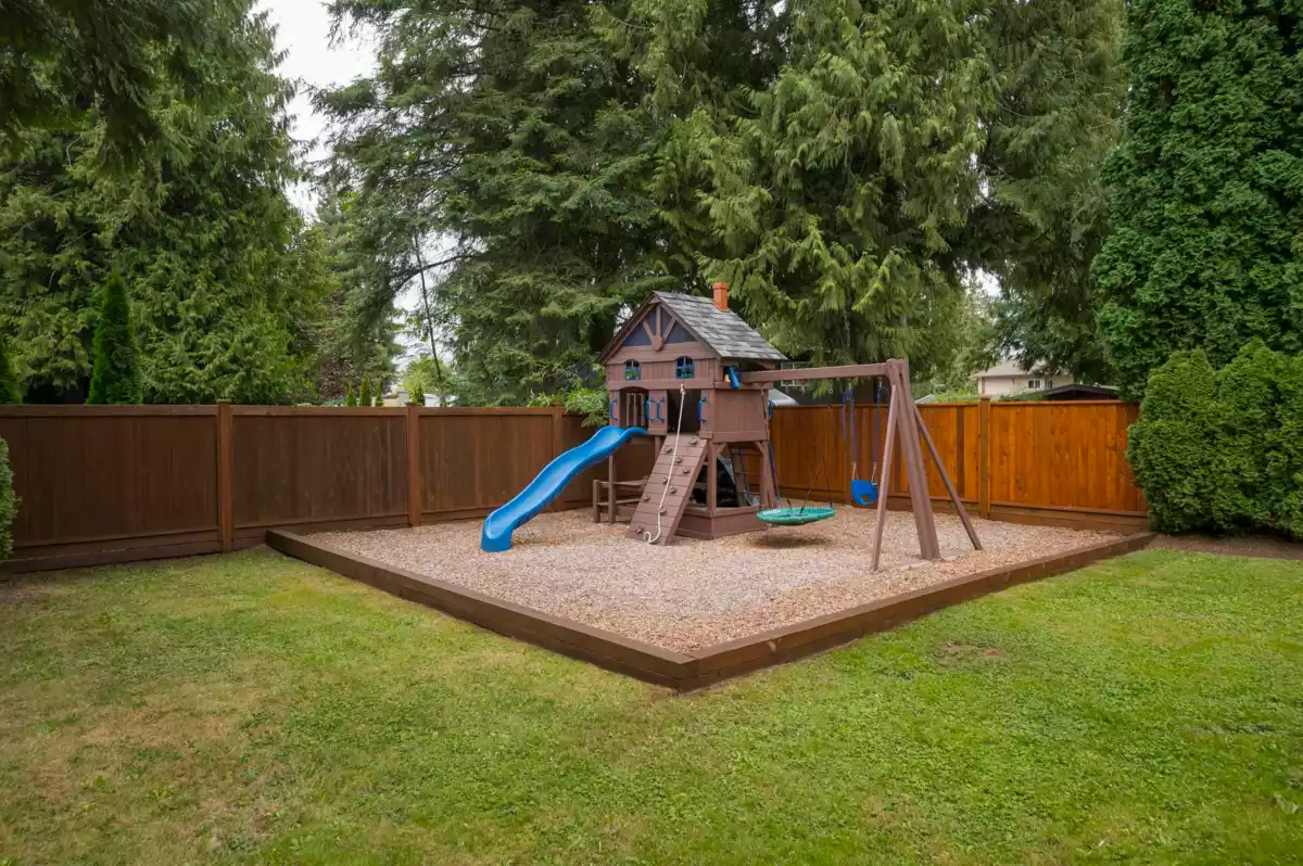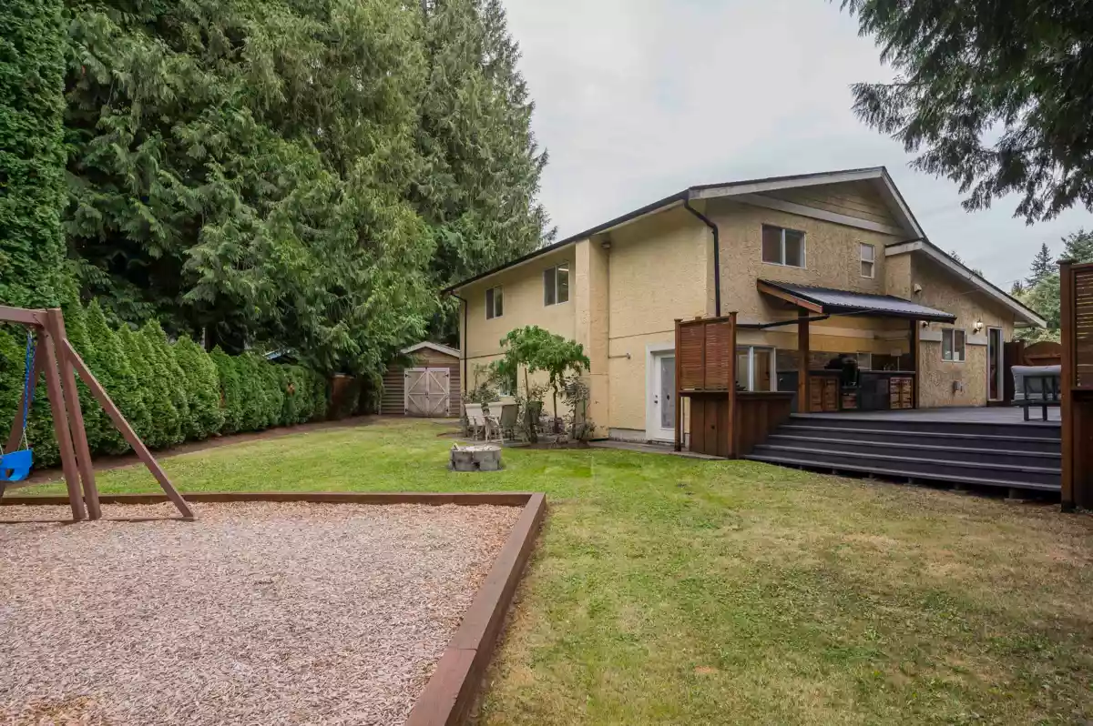 Not your average home—this hidden gem is perfect for family living! With over 2,937 sq.ft., the unique floor plan features a stunning white kitchen with a huge island, an entertainer’s dining room with bar, vaulted ceilings, and gorgeous wood floors overlooking the cozy sunken family room. Upstairs offers 3 bright bedrooms including a primary with walk-in closet and spa-like ensuite with glass shower and soaker tub. Step outside to your private backyard oasis with a massive sundeck, outdoor kitchen/BBQ, water feature, and refurbished playground—all on an 8,185 sq.ft. lot. New roof (2025), new cedar fencing, custom cabinetry, plus a side-suite option possible to make this a rare family family find.