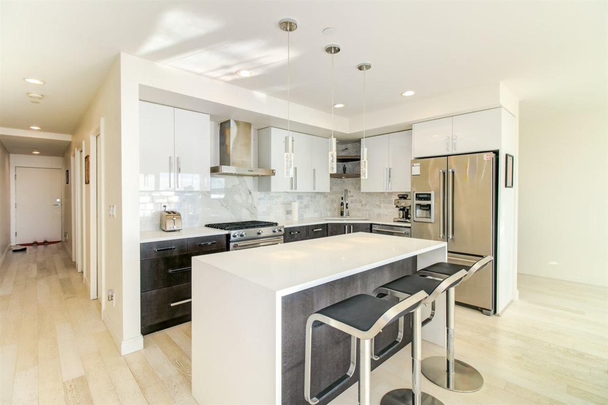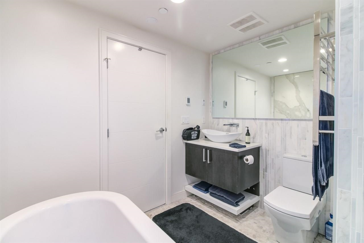 Absolutely Stunning! Rarely found luxurious condo on the beach w/gorgeous panorama ocean views! 1BR + Flex/ 2 Bath. Direct South Exposure! Modern design and high end finishings throughout - Gourmet kitchens w/large centre islands, gas stove & gorgeous cabinetry, hardwood floors, travertine & marble, commercial windows, spa inspired baths w/heated floors. Sound proof & Concrete frame building. A/C roughed in. Natural gas, electric & water on 20'+ long balconies. Move in or rent for great revenue.