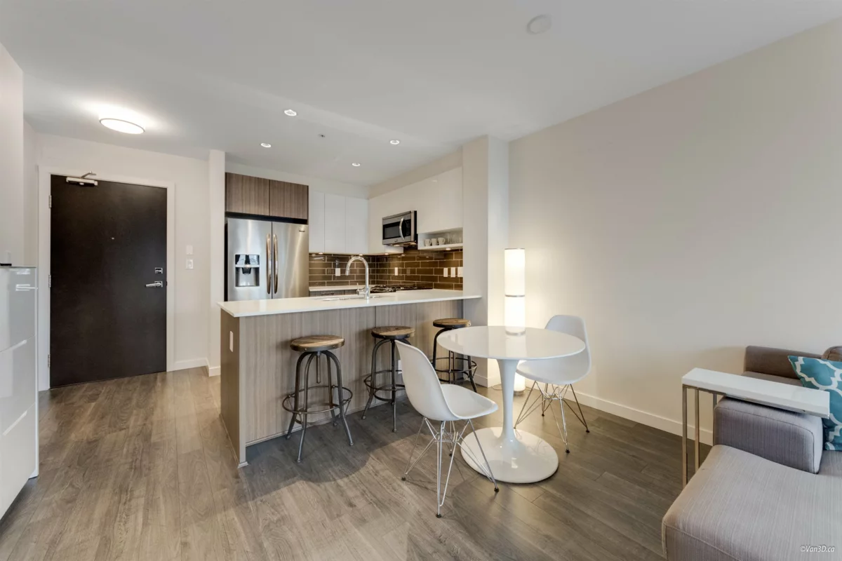 Welcome to Bluetree Homes On Main Street. A fully rain screened development w/brick exterior finish in the desirable Main St. district! This South facing home features one br w/TWO CLOSETS, one CHEATER EN-SUITE bth (heated fls) PLUS DEN (office) with an ideal functional layout with no wasted space, Juliette balcony, laminate flrs, large kitchen with stone under mount counter tops, full size stainless steel appliances and in-suite laundry. With a walk score of 99, enjoy Main St. living just steps from all the shops, Caffe Artigiano just in the building, Prince Edward Park, Queen Elizabeth Park, Hillcrest Park, Nat Bailey Stadium, trendy coffee shops and all the finest restaurants! Includes 1 PARKING STALL & 1 STORAGE LOCKER! Do not miss this opportunity! Open House Sat Nov 29th 2-4pm