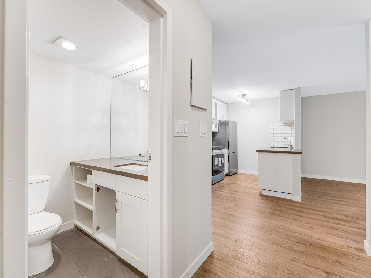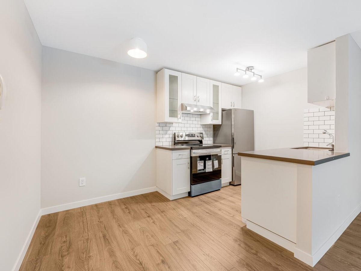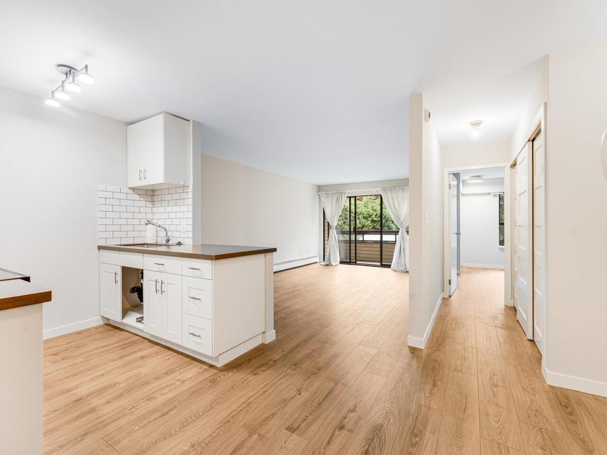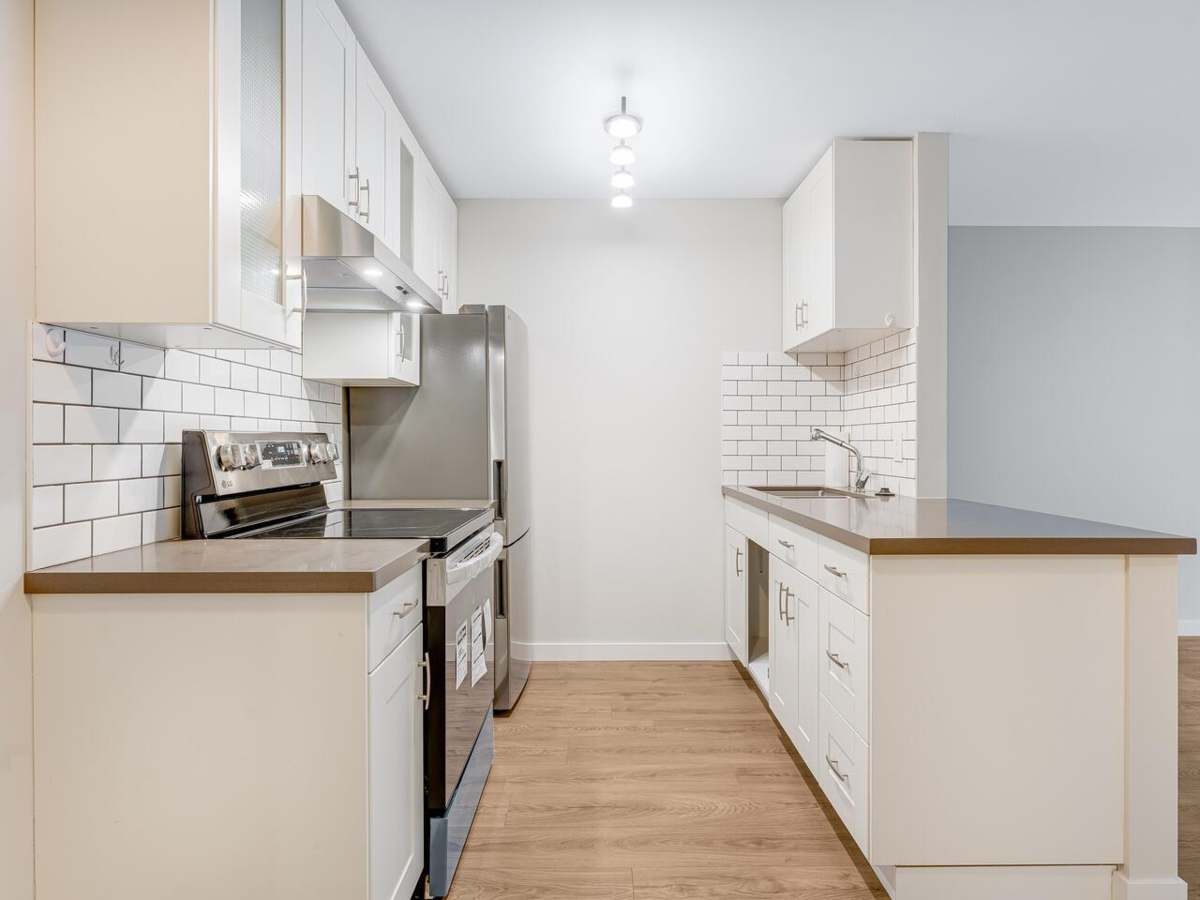 Fantastic LOCATION! This fully updated 1 bed/1 bath 620 sf home is move-in ready. Renovations include new laminate floors, retiled bathroom floors, fresh paint, and a beautifully redone kitchen with new appliances, backsplash, lighting, and hood fan. Maintenance fees cover heat & hot water. Comes with 1 oversized parking stall, a large storage locker, and access to shared laundry. Perfect for first-time Buyers. By Appointment.