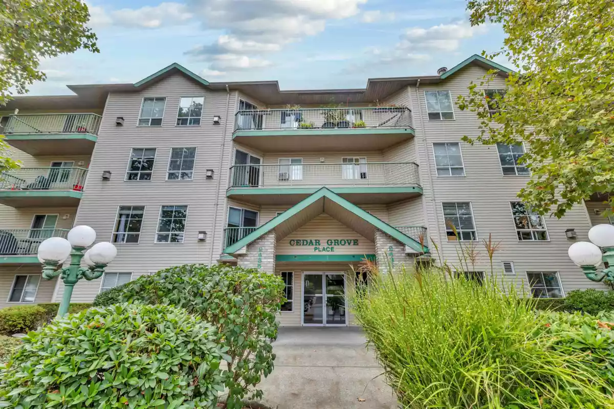 Attention first time home buyers and investors! This presents the perfect opportunity for those entering the real estate market or seeking an investment. Welcome to Cedar Grove where you'll find a cozy and spacious suite featuring 2 Bedrooms and 2 Bathrooms with over 1,000 sq ft of living space. This unit includes S/S appliances, a kitchen nook, functional floor plan, gas fireplace, & balcony off the living room. 2nd floor unit and welcome to both children & pets. Highly desired area with parks, schools, and grocery stores all within walking distance and easy highway 1 access in West Abbotsford. Perfect for families or down-sizers. This unit includes a storage locker and 1 underground parking stall. Well run strata with healthy contingency fund and new roof in 2018. Call this one home!