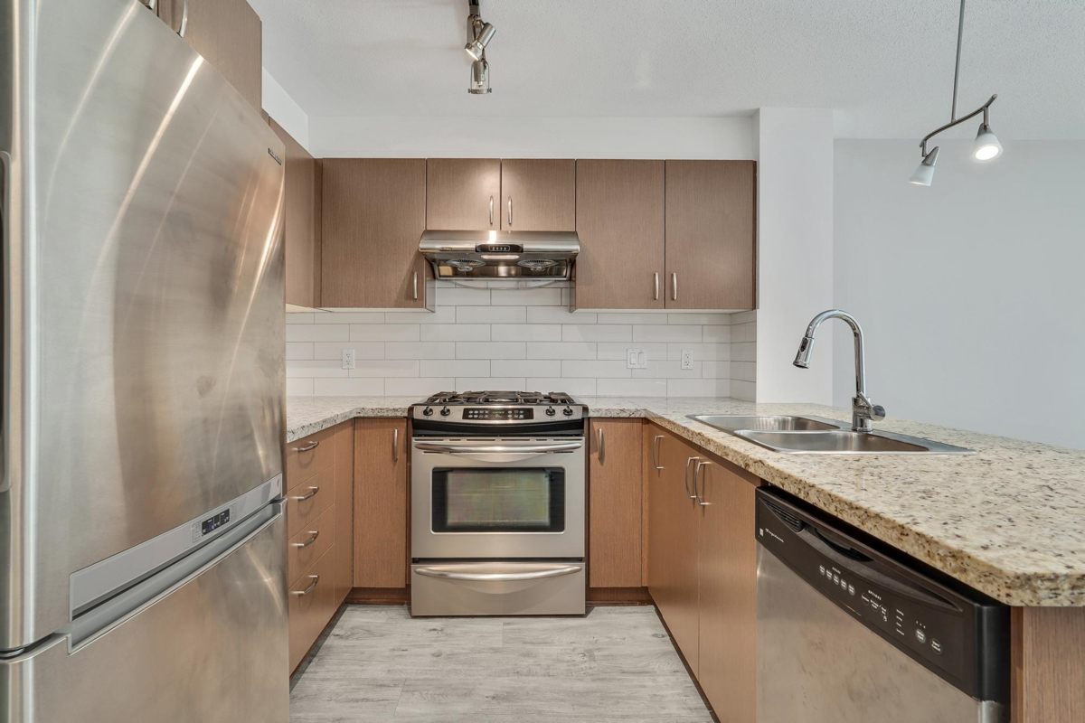 Immaculately maintained 2 bedroom 2 bathroom condo in Windsor Gate! Updated in 2019 with laminate flooring, paint, blinds, light fixtures, faucets, and bathroom countertops. Kitchen features granite countertops, updated gas stove, fridge and hood fan. Washer/dryer updated in 2020. Steps to Coquitlam Centre, Lincoln Skytrain Station, Douglas College, Pinetree Secondary, Lafarge Lake/Town Centre Park and shops/restaurants. Access to Nakoma Club with outdoor swimming pool, hot tub, sauna, fitness centre, indoor court, party room, crafts room and theatre room. EV charging available in parkade. Includes 1 parking stall and 1 storage locker.