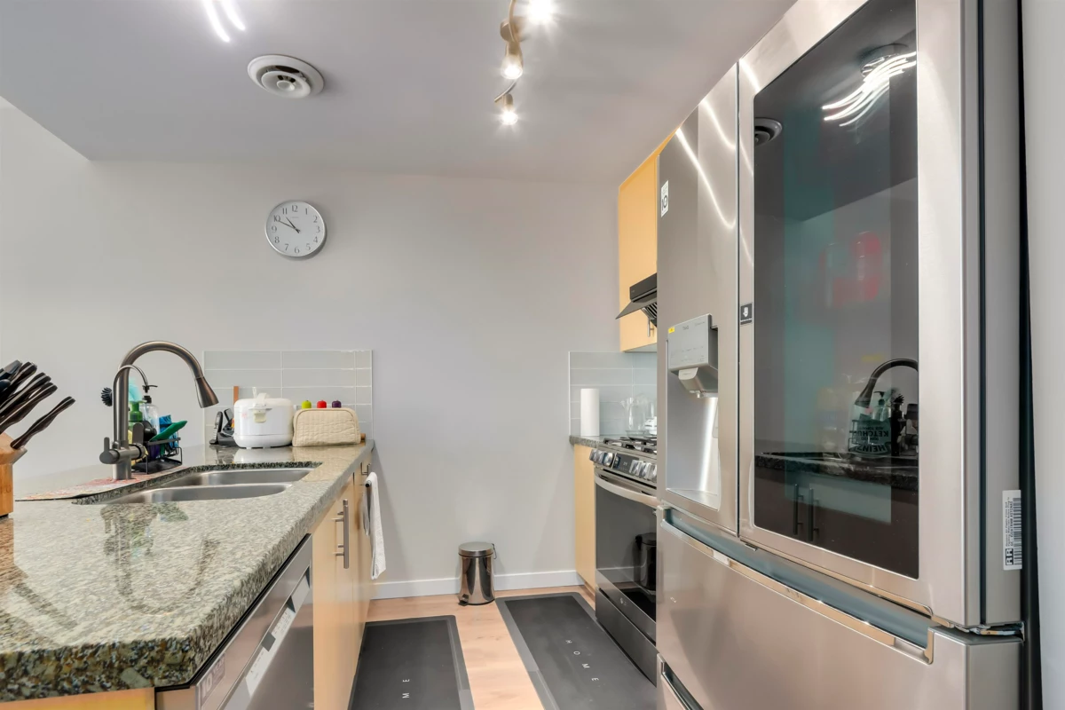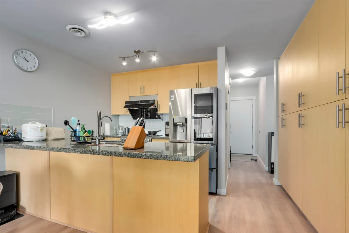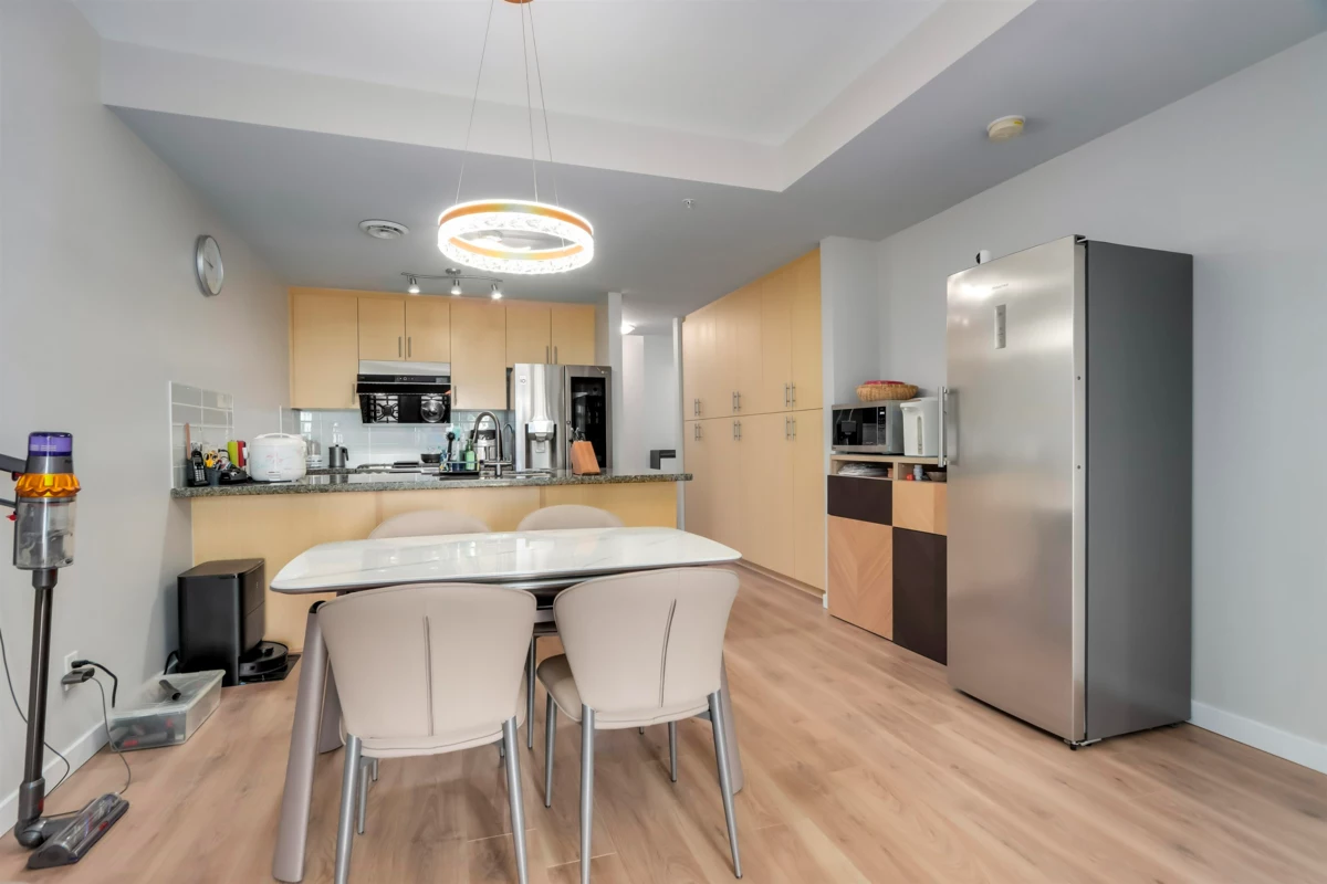 Rarely available 3-bedroom home in the highly sought-after London Station II, Steveston North. This spacious unit features an open floor plan with generous storage and premium upgrades throughout: brand new FOTILE touchless range hood, LG InstaView fridge and 5-burner gas range, MAYTAG stainless steel dishwasher, SHERWIN-WILLIAMS high-quality paint, and EUROSTYLE organic waterproof flooring from Germany. The extra bedroom makes it ideal for growing families, while the well-sized balcony is perfect for BBQs, entertaining, or a quiet afternoon tea. Just steps from the scenic riverside promenade—perfect for evening strolls. Immaculate move-in condition. Act quickly—this may be the only 3-bedroom available in the area!