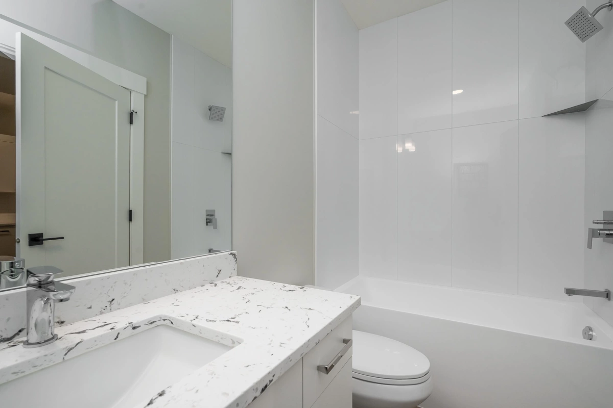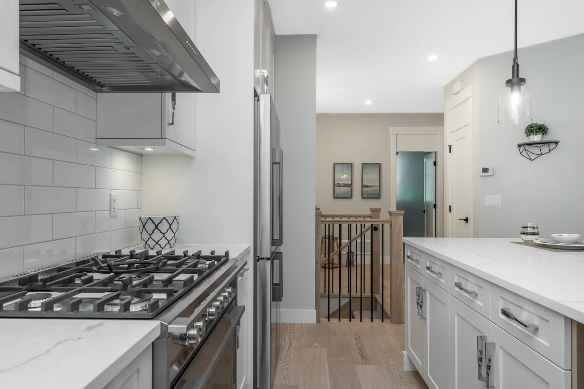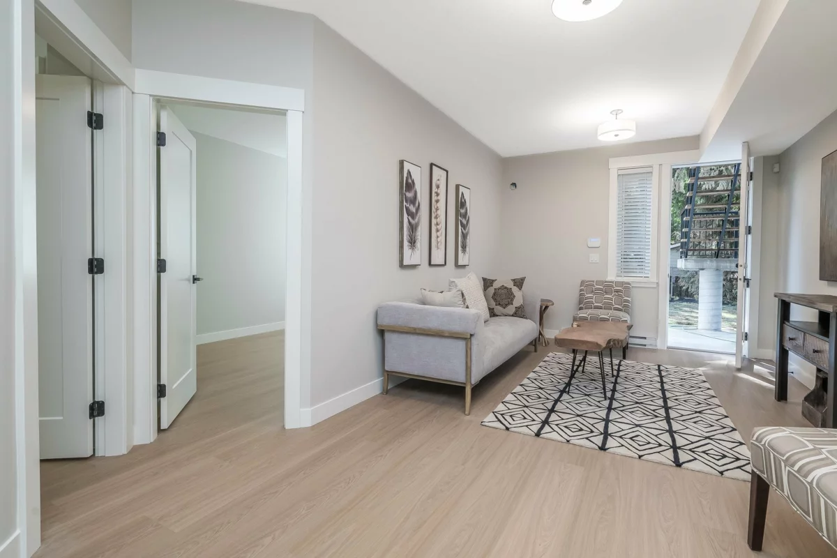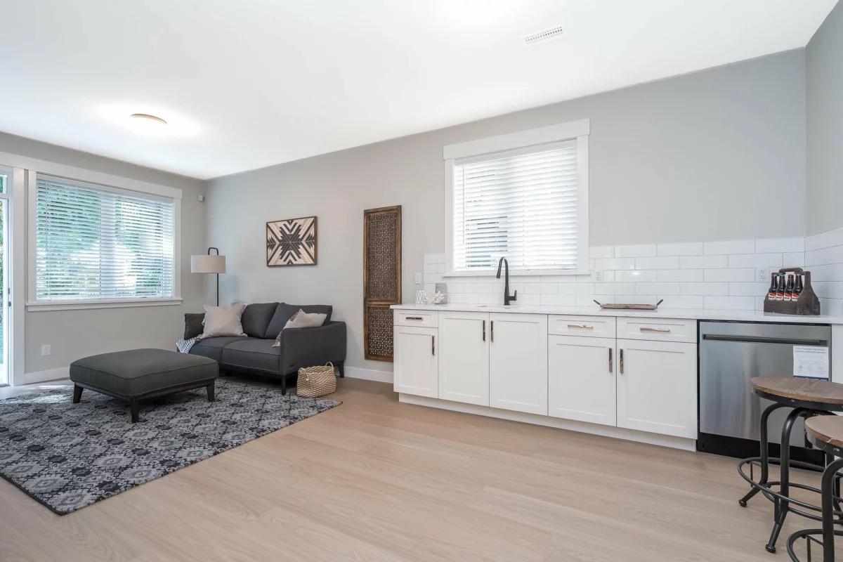 Stunning 2-storey, basement entry home w/quality workmanship & thoughtful design by European builders. Open-concept plan highlighted by wide-plank natural-toned hardwood flooring, white shaker cabinetry & elegant quartz countertops throughout. Main features a beautiful kitchen w/large island, pantry, gas range & Fisher & Paykel appliance package, spacious great rm & sliding doors to covered deck w/stairs to backyard. 4 bedrms & 2 full bathrms, both w/dual vanities, walk-in shower, and soaker tub complete the main fl. Lower level includes a legal 2-bedrm suite w/own laundry, as well as den, wet bar, family rm, & potential bedrm - great nanny suite. H/W on demand & A/C incl! Located in family-friendly Langley City neighbourhood- close to schools, dog park, Al Anderson Pool, and Penzer Park.