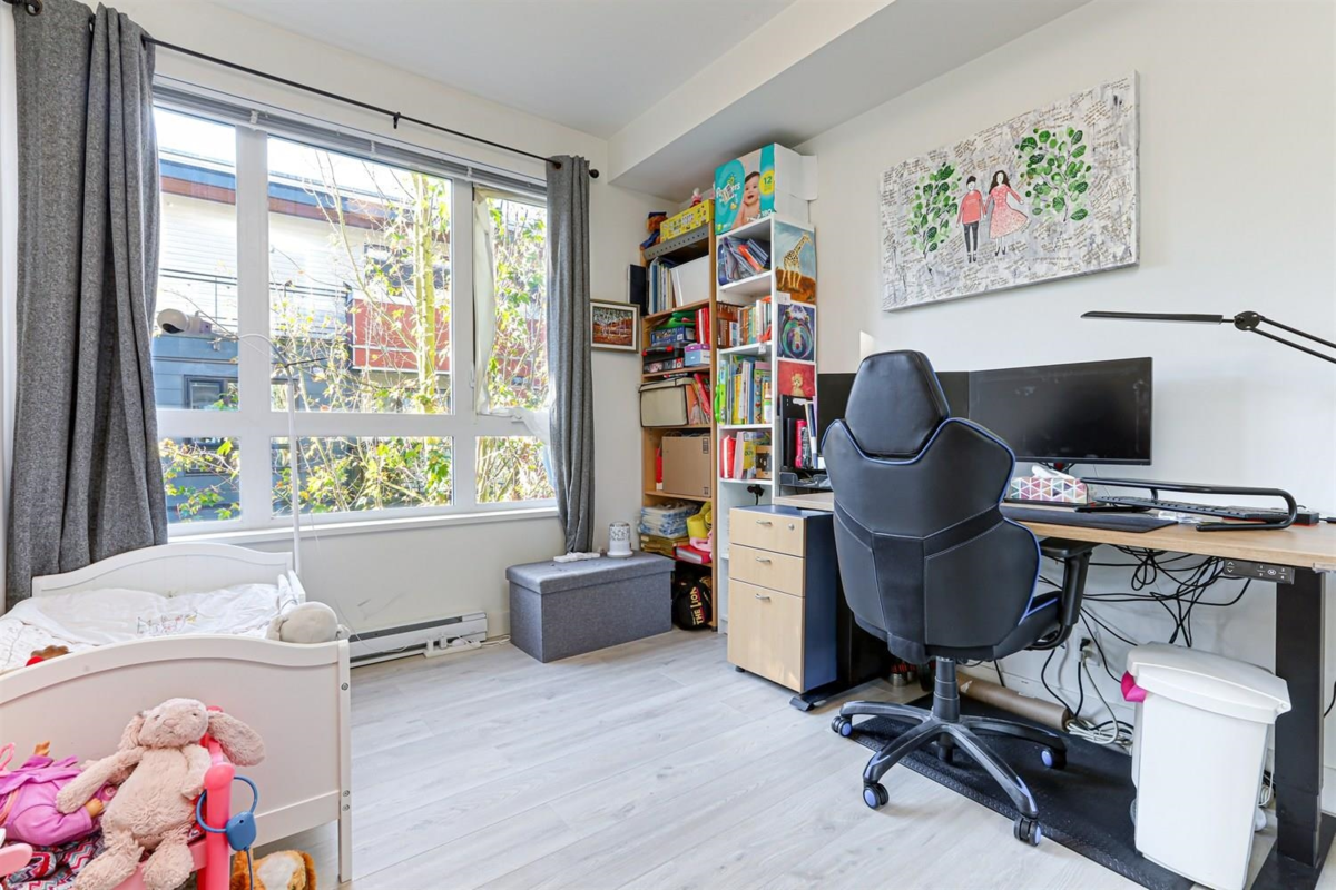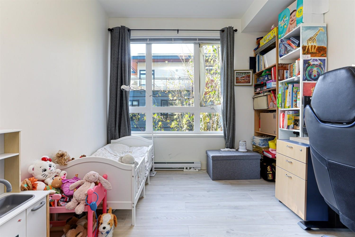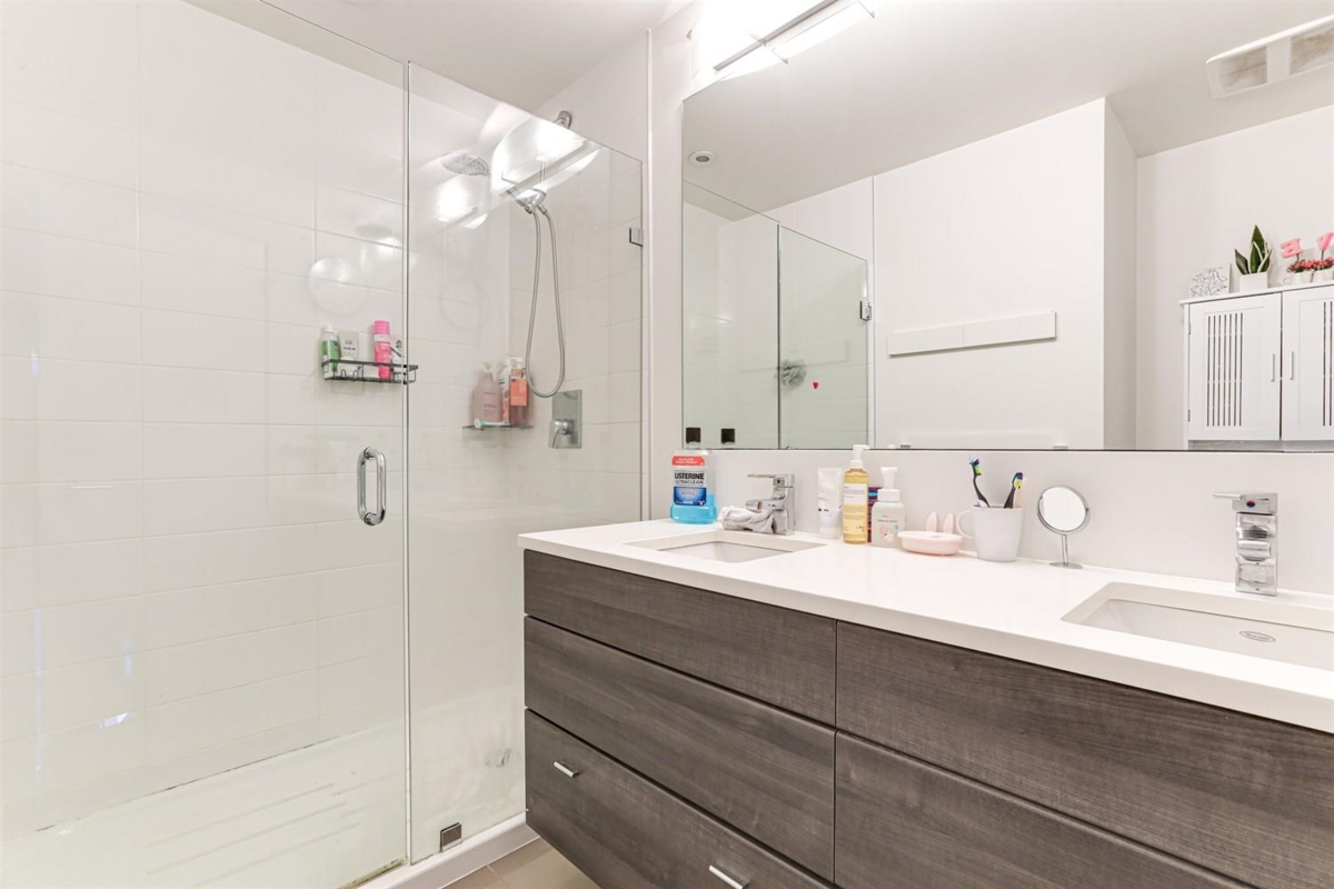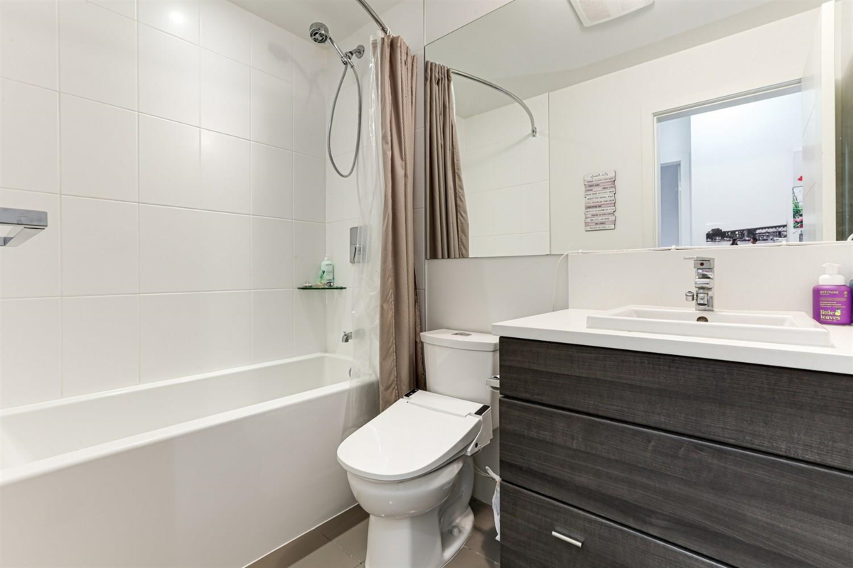 Welcome to Verve – Where Location Meets Lifestyle! Steps from King George SkyTrain, SFU, Future UBC, Surrey Memorial Hospital, and Central City, King George HUB This 2 bed, 2 bath corner unit offers 988 sq.ft. of bright, functional living space. Enjoy upgraded Laminate flooring, a modern kitchen with quartz counters, stainless steel appliances, and a large breakfast bar. The spacious primary bedroom fits a king bed and features double sinks and an oversized shower. Relax on your quiet patio with a treed outlook, away from Fraser Hwy traffic. Extras include in-suite laundry, 9ft ceilings, storage locker, and TANDEM (can fit 2 cars)parking. Building amenities: gym, yoga room, lounge, billiards, and guest suite. A perfect blend of style, comfort &convenience in one of Surrey’s best locations