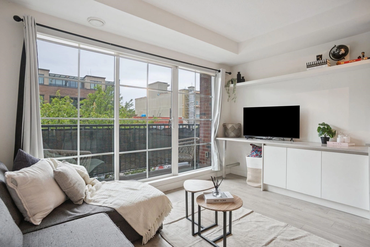 Experience boutique living at The Oxford in this modern 1-bedroom, 1-bathroom home in the heart of East Village. This bright, south-facing unit features over-height ceilings, oak laminate flooring, a sleek frosted glass bedroom door, and a gourmet kitchen with high-end stainless steel appliances, gas range, and quartz countertops. Enjoy your morning coffee or sunset cocktails on the private balcony. The spa-inspired bathroom includes a seamless glass shower and tile surround. Includes 1 parking and bike storage. Steps to shops, cafes, parks, and transit. Rentals and pets allowed.**