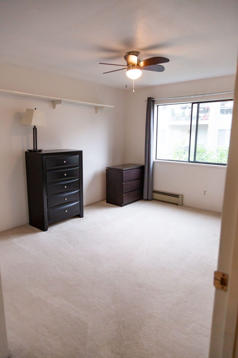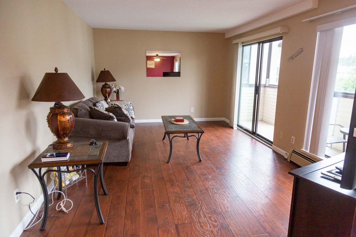 Spotless large corner unit in the sought after 55+ Monta Vista Villa. Welcome to the beautifully maintained 2 bedroom 1 bathroom condo located in the heart of Abbotsford. This spacious private corner unit offers 1,047 sq/ft of bright living space, making it the perfect low-maintenance home. Updated walk in shower, in suite laundry and storage room, parking space, storage locker, and amenities room. No pets.