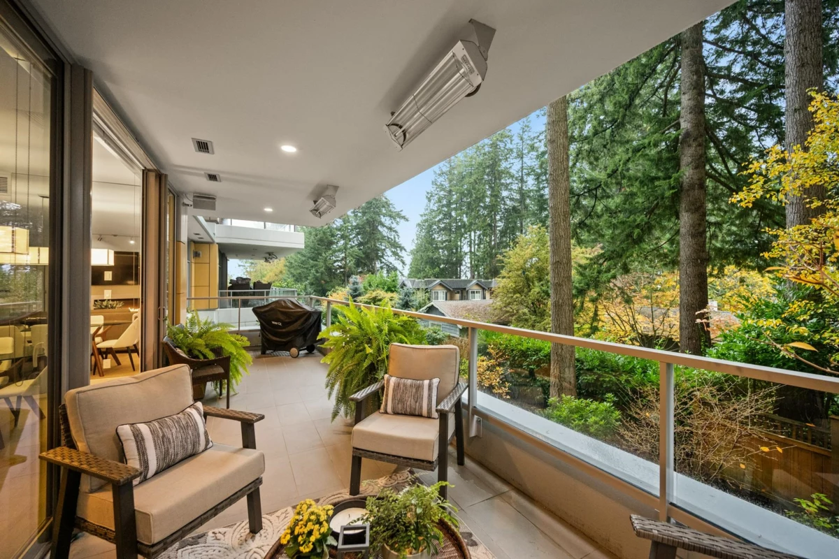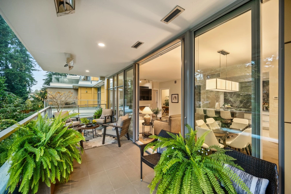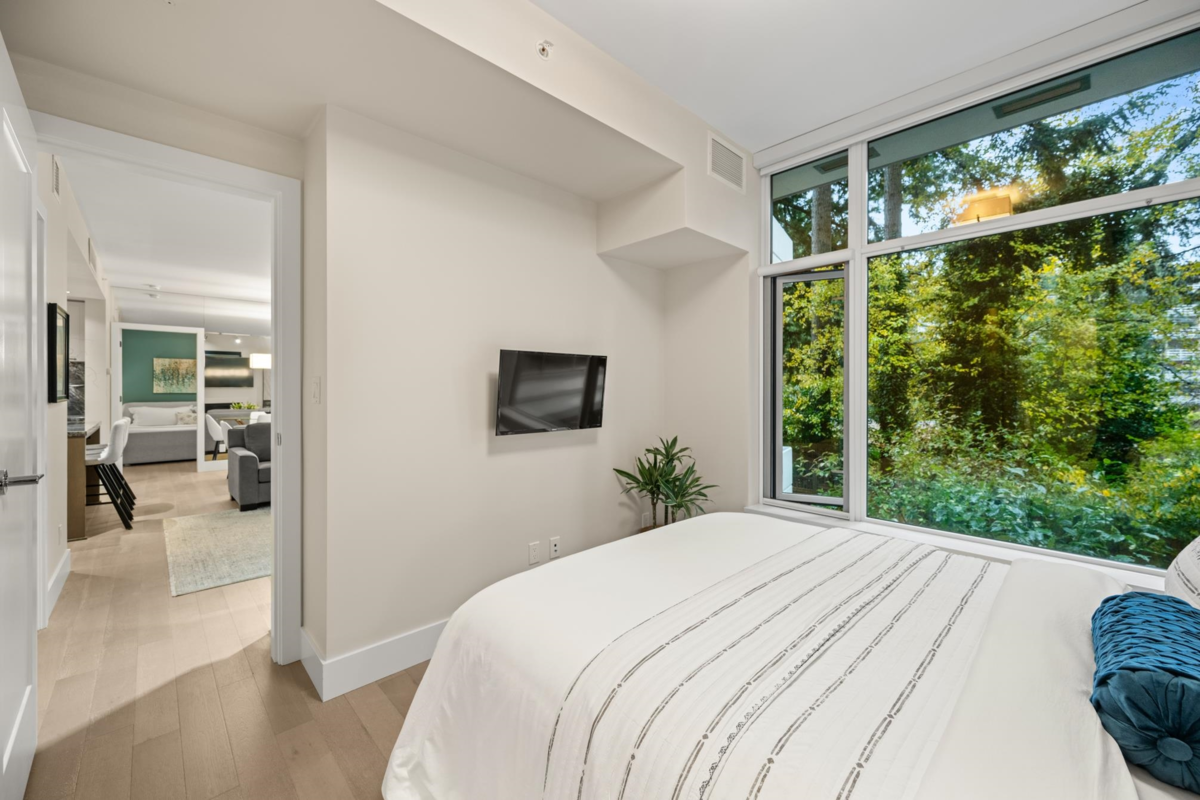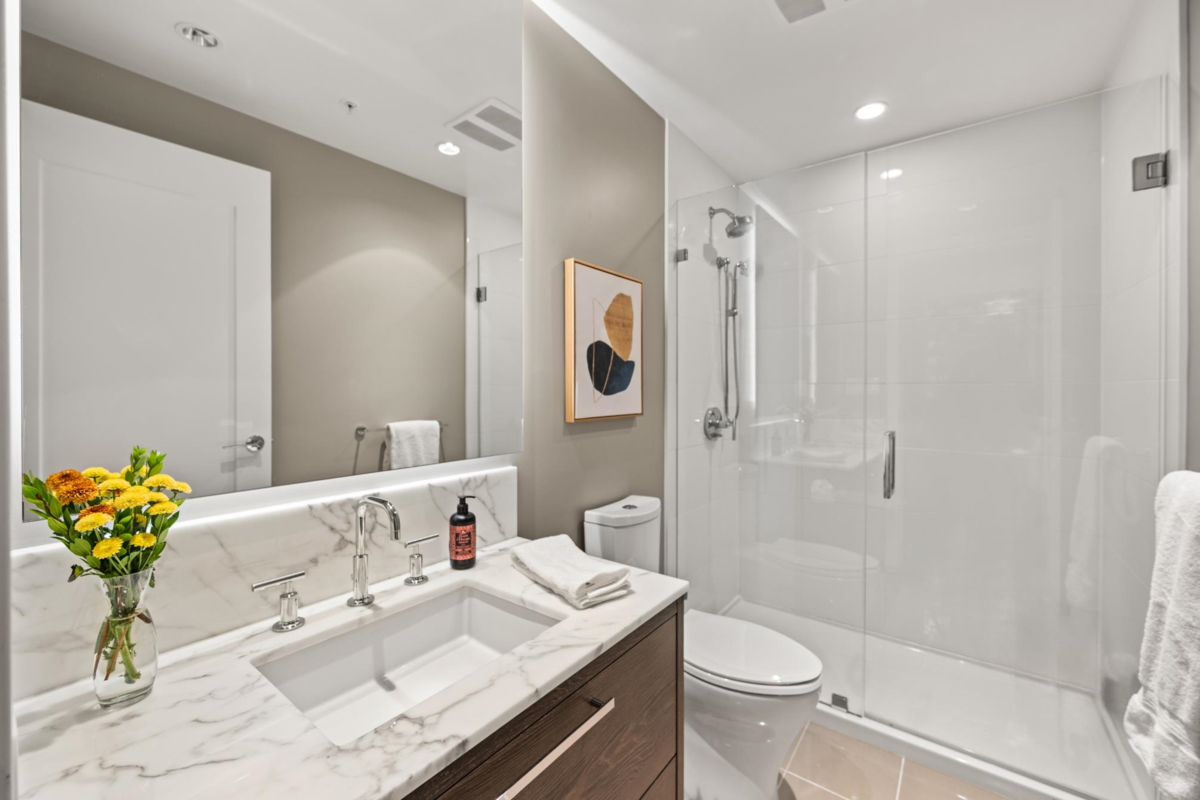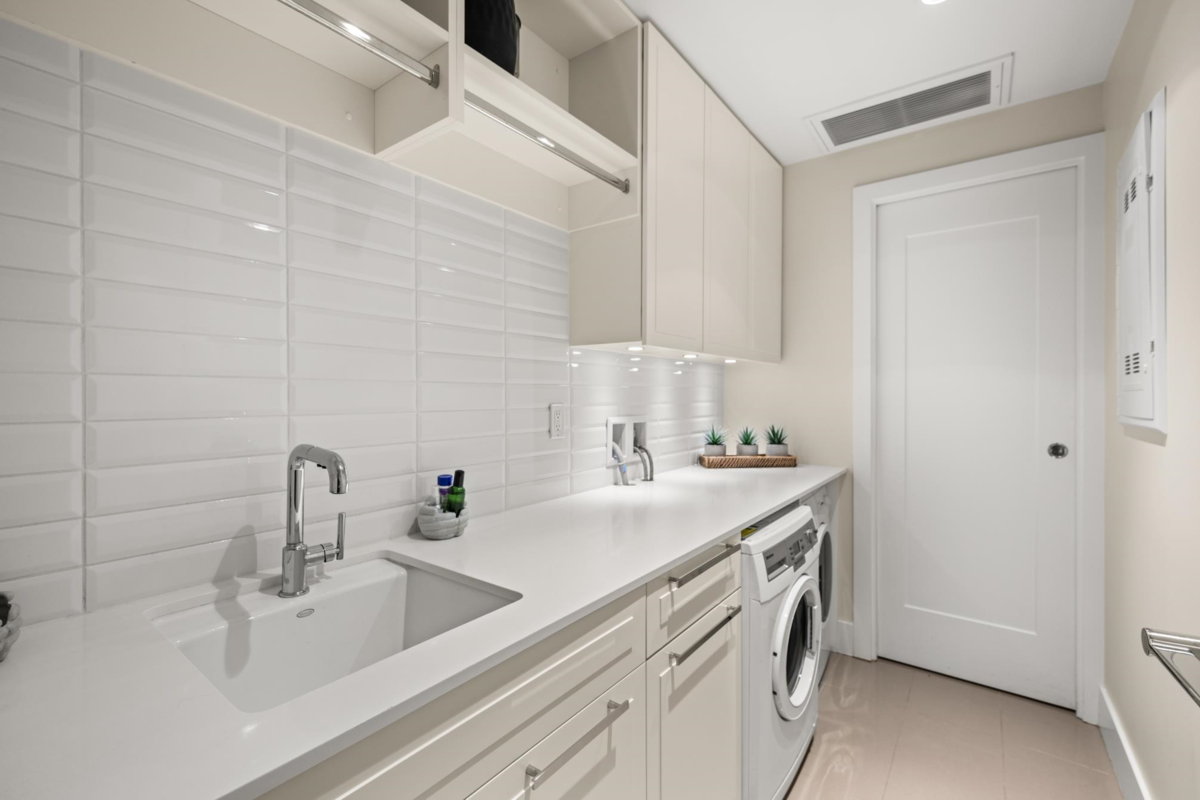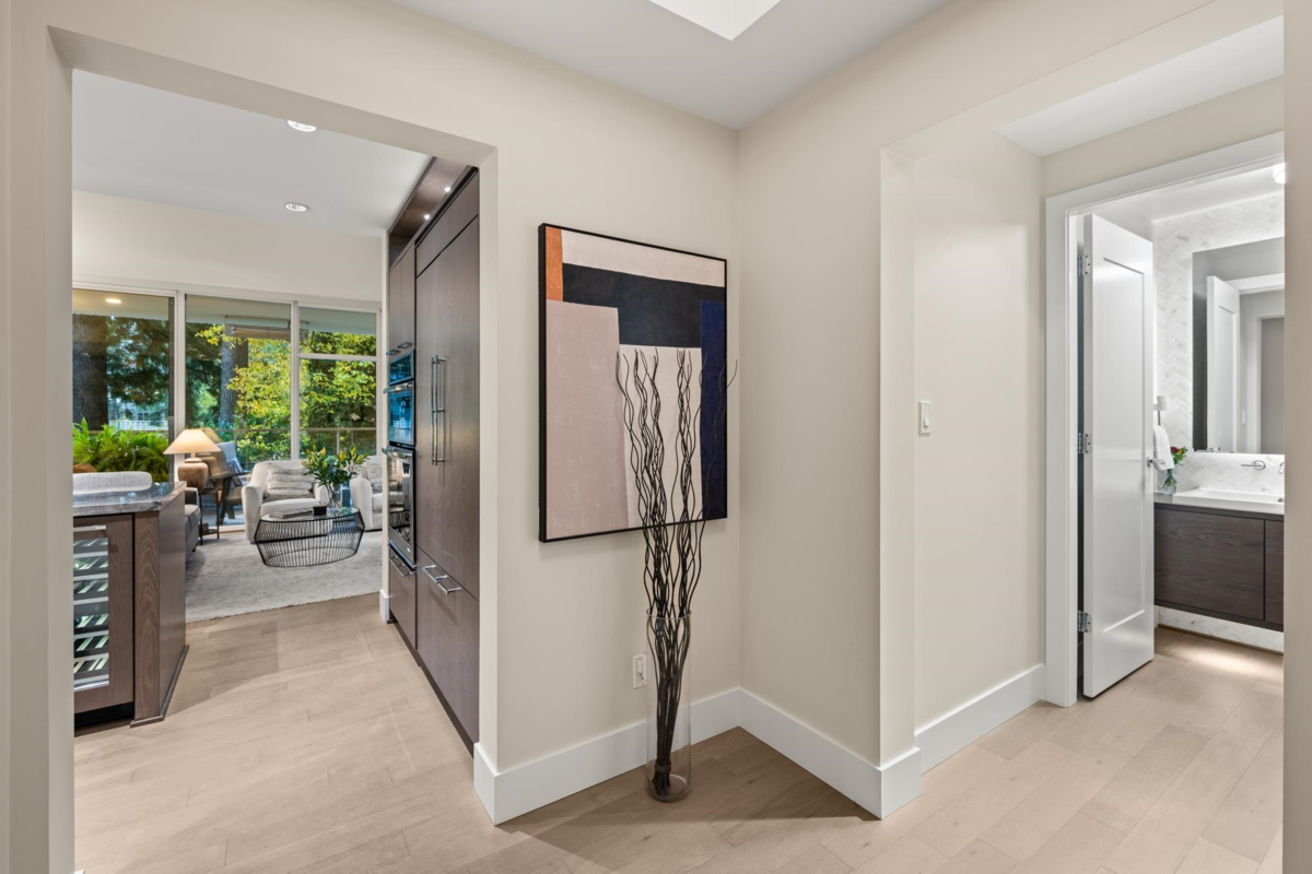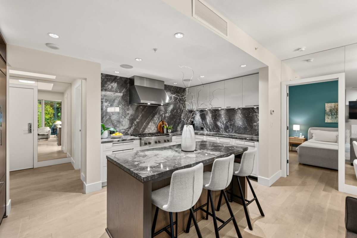 THE BEVERLEY! This home exudes grace & class. Luxury 2-bedroom plus den condo with attention to detail that will impress the most discerning Buyer. Spacious gourmet kitchen features dramatic marble backsplash, large island, deluxe cabinets & top of the line professional-grade integrated appliances (6 burner gas cooktop & wine fridge). Sleek updated fireplace. The generous primary fits a king-sized bed & joins a spa-inspired ensuite. The second bedroom also has its own ensuite. Expansive 228 sq ft balcony, outdoor heaters & full laundry room complete this home. Two side/side parking stalls with EV charger. Beautifully maintained unit in a desirable concrete building with amenities galore. Indoor pool, hot tub, steam, sauna, gym, guest suite & concierge. Live close to everything!