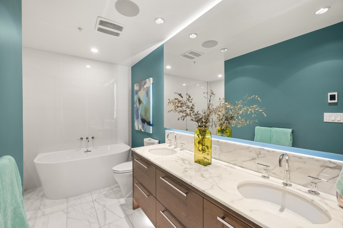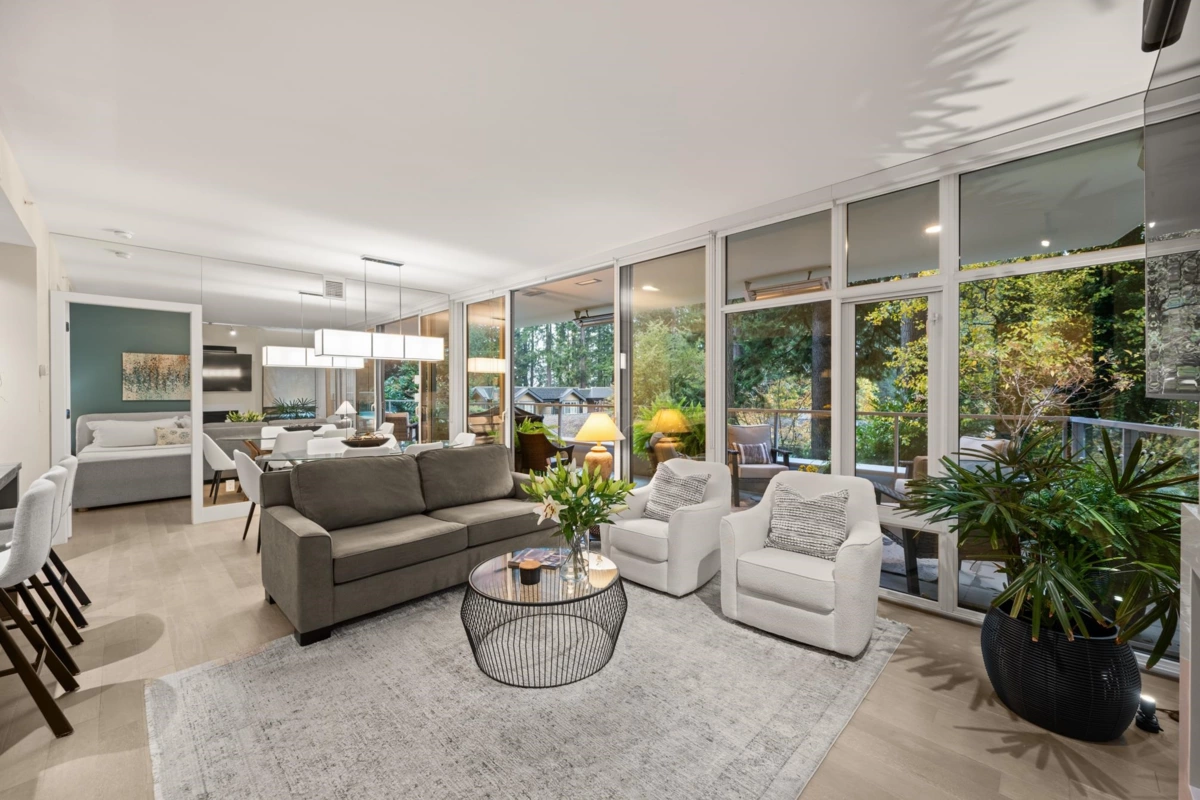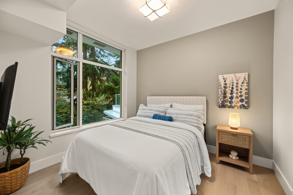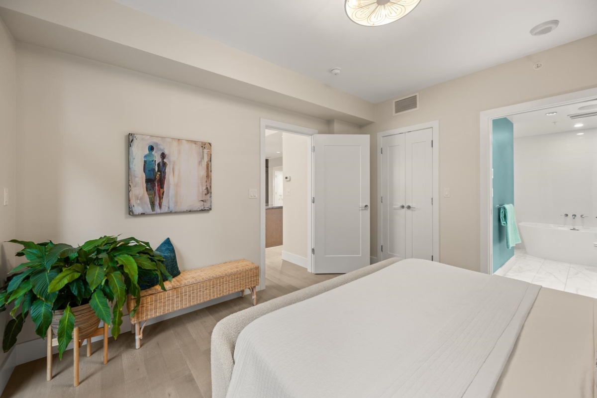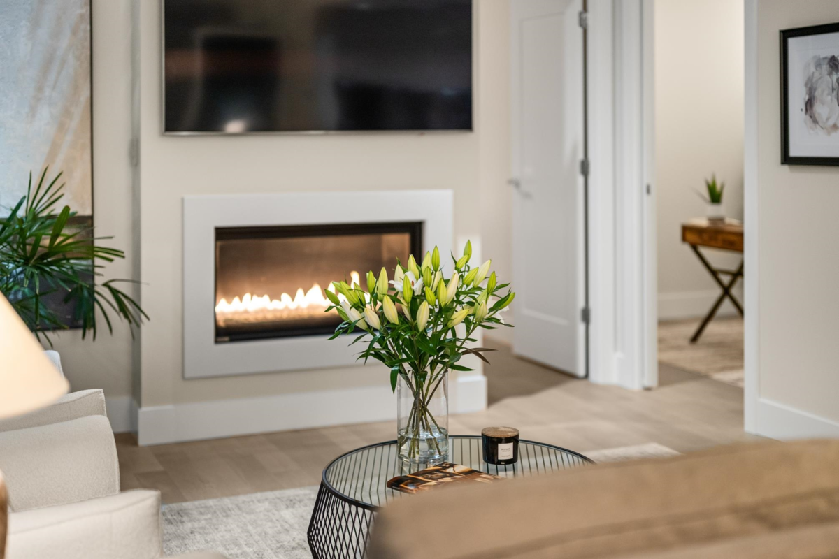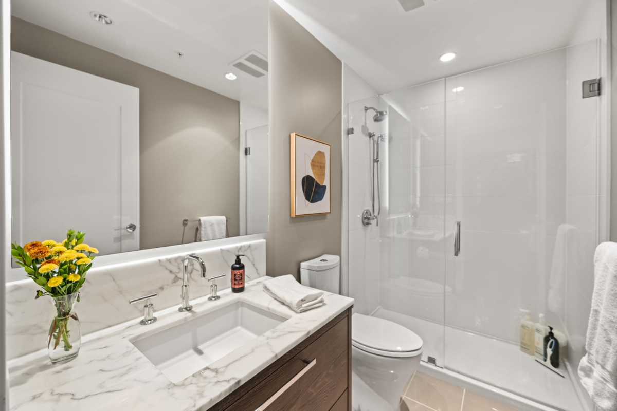 THE BEVERLEY! This home exudes grace & class. Luxury 2-bedroom plus den condo with attention to detail that will impress the most discerning Buyer. Spacious gourmet kitchen features dramatic marble backsplash, large island, deluxe cabinets & top of the line professional-grade integrated appliances (6 burner gas cooktop & wine fridge). Sleek updated fireplace. The generous primary fits a king-sized bed & joins a spa-inspired ensuite. The second bedroom also has its own ensuite. Expansive 228 sq ft balcony, outdoor heaters & full laundry room complete this home. Two side/side parking stalls with EV charger. Beautifully maintained unit in a desirable concrete building with amenities galore. Indoor pool, hot tub, steam, sauna, gym, guest suite & concierge. Live close to everything!