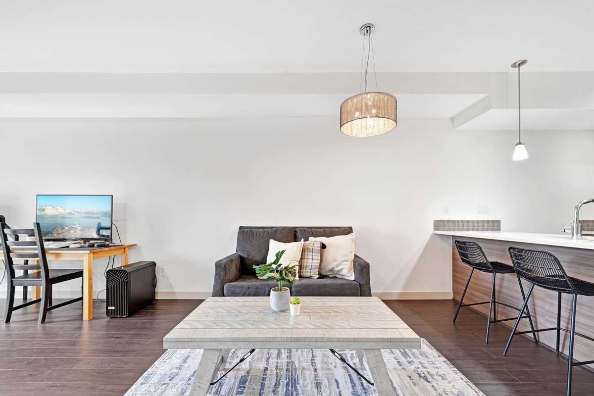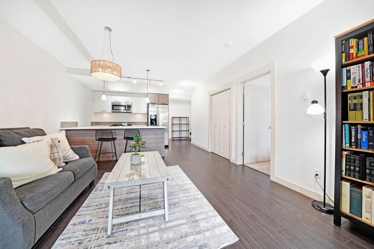 Bright and spacious, east facing 2 bed, 2 bath condo in Central Port Coquitlam built in 2014. Kitchen features quartz counters & brand new LG stove with built-in air fryer. New Maytag washing machine. Open concept den can fit a work-from-home lifestyle. 2 balconies off living room & primary bedroom. Fibre optic internet available. 1 park stall & 1 storage locker. Pet friendly building! Features peekaboo mtn views from the bedrooms. 2214 Kelly Ave is across the street from the new Port Coquitlam Rec Centre with fitness centre, swimming pool, skating rinks, library & outdoor amenities. Within steps to shops, restaurants & Elks Park in Central Port Coquitlam. 5 minute walk to the West Coast Express & public transportation. Open House Sat & Sun July 22 & 23 2-4pm