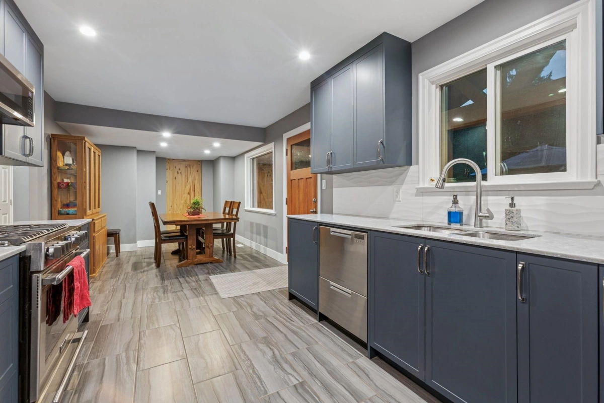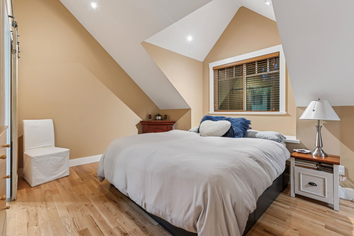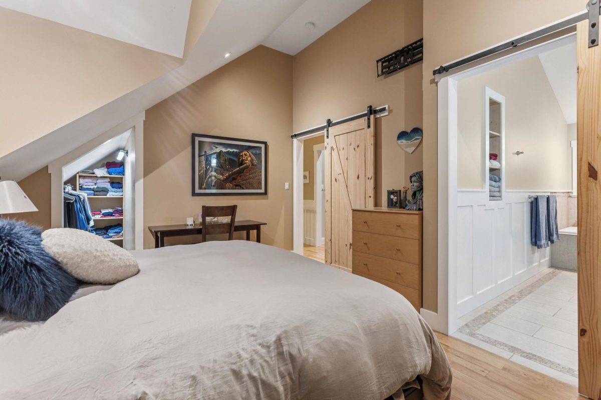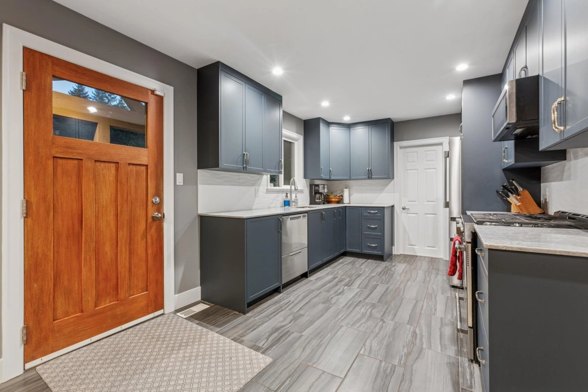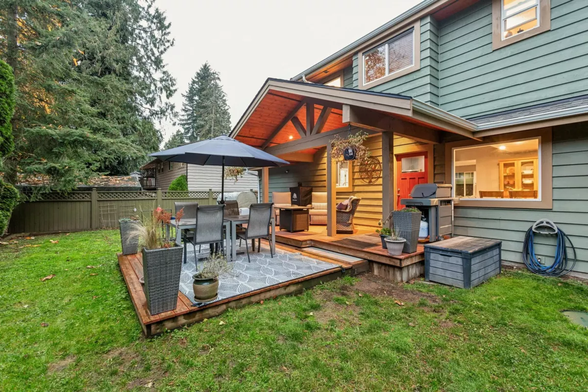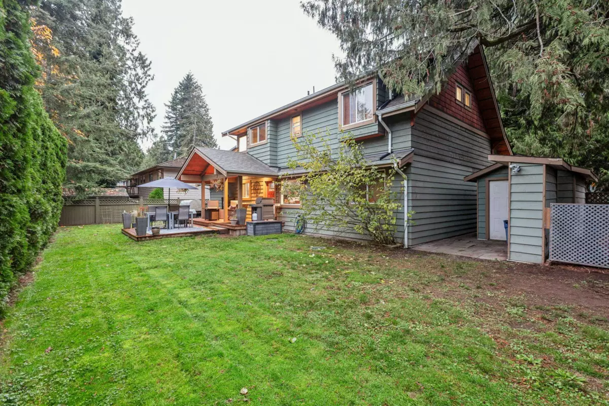 ONE OF A KIND COMPLETELY UPDATED FAMILY HOME ON A PRIME BROOKSWOOD CORNER LOT. Features a welcoming front veranda, refinished hardwood floors, crown moldings, large living room with cozy wood fireplace, and a 2024-renovated kitchen with natural wood cabinetry, quartz counters, dual-drawer dishwasher and new gas stove. Opens to a family room and a sunny south-facing yard with a large covered deck perfect for year-round entertaining. Big bedroom on main while up offers a Whistler-inspired retreat with high peaked ceilings, dormer windows, H/W floors, barn doors, and four well-appointed bedrooms, including a stylish primary suite w/ 5 piece ensuite. Newer roof, furnace, tankless hot water, gas F/P insert, and new asphalt driveway. Fantastic family-friendly location near schools & parks.
