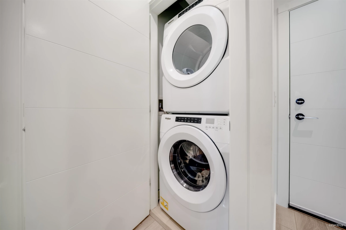 Introducing CREST by Adera - West Coast living nestled in Central Lonsdale! This beautiful 2-bed, 1-bath home feat Adera's innovative SmartWood construction & Quiet Home tech, for sustainable & peaceful living. The open-concept floor plan creates a seamless flow throughout, leading to a private covered deck, w/gas hookup. Individually controlled radiant floor heating, offers complete comfort control. Feat SS appliances, elegant tile in both the kitchen & bathroom, & central AC. This quiet, courtyard-facing is walking dist to shopping, restaurants, coffee shops, medical facilities, entertainment & easy DT access via the SeaBus, Amenities incl. well-equipped gym, elegant party room, secure bike storage, and children's play area. Pet ok. Incl 1 Parking, 1 Locker.
