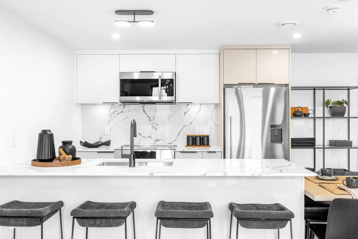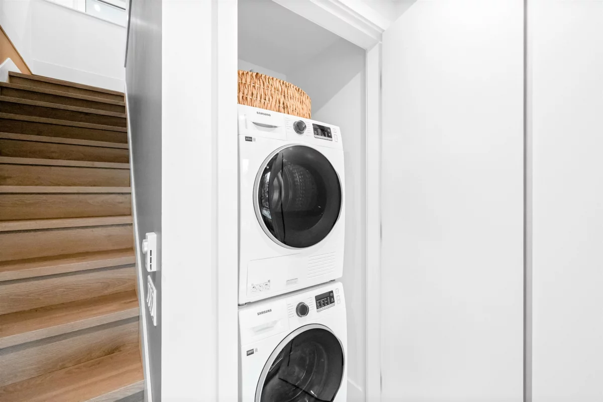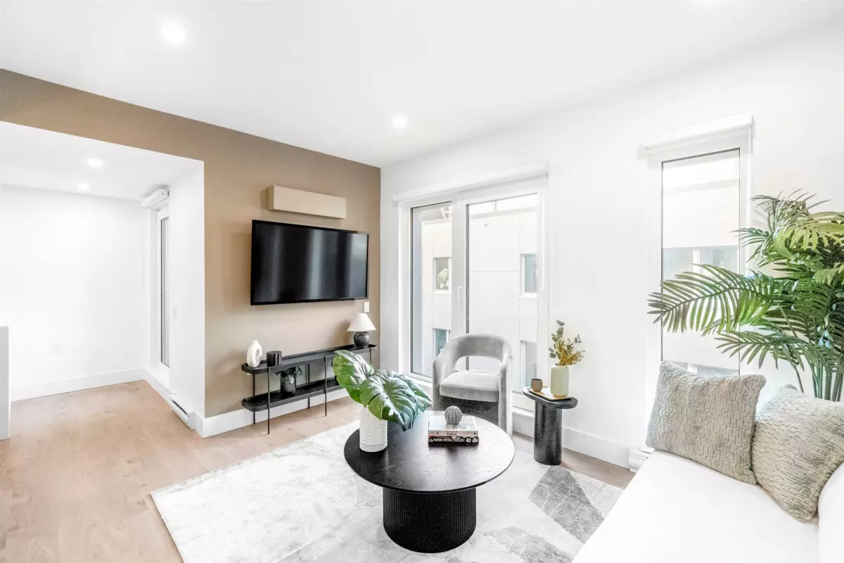 NEW PRICES! Dimex Group's 3-bedroom Passive House townhome at Lakewood combines modern design with sustainable living in Vancouver’s vibrant Commercial Drive neighborhood. Built for efficiency, it offers up to 90% savings on heating, triple-pane windows for peace and quiet, and a healthier indoor environment. The sleek kitchen includes a Fisher & Paykel fridge, Bosch appliance package, & quartz countertops. The top floor is a dedicated primary suite with a walk-in closet and private balcony—your own personal retreat. This end unit has AC roughed-in and upgrade-ready. 1 EV-ready parking stall and 1 storage locker included. Just steps to schools, parks, restaurants, transit, and the up-and-coming Nanaimo/Hastings area. Located on 1st Ave, but whisper-quiet inside.