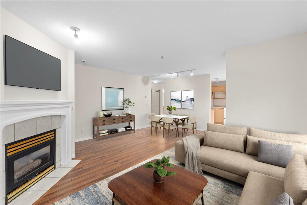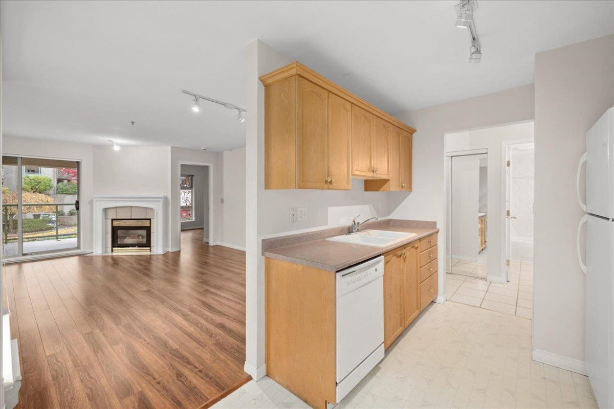 2 bed 1 bath CORNER UNIT @ Heritage Grand. Soaked in NATURAL LIGHT w/ serene treed exposure facing the quiet courtyard side of the bldg. Completely private w/ no one looking in! Functional ~900 sqft unit features open living & dining areas w/ cozy gas fireplace that leads to your huge almost 200 sqft covered balcony - perfect for BBQs, entertaining or relaxing! Primary bdrm w/ walk-thru closets & cheater ensuite. BONUS: TWO parking spots, 1 locker. Amazing location WALKING DISTANCE to shopping & restaurants @ Newport & Suterbrook Village, Brewers Row, Rec Centre & Inlet Stn Skytrain. Short ride to the W/C Express @ Moody Station! Outdoor enthusiasts will love the proximity to the Inlet Trail, Rocky Point Park, Buntzen & Sasamat Lakes. Priced Below Assessment w/ Quick Possession possible!