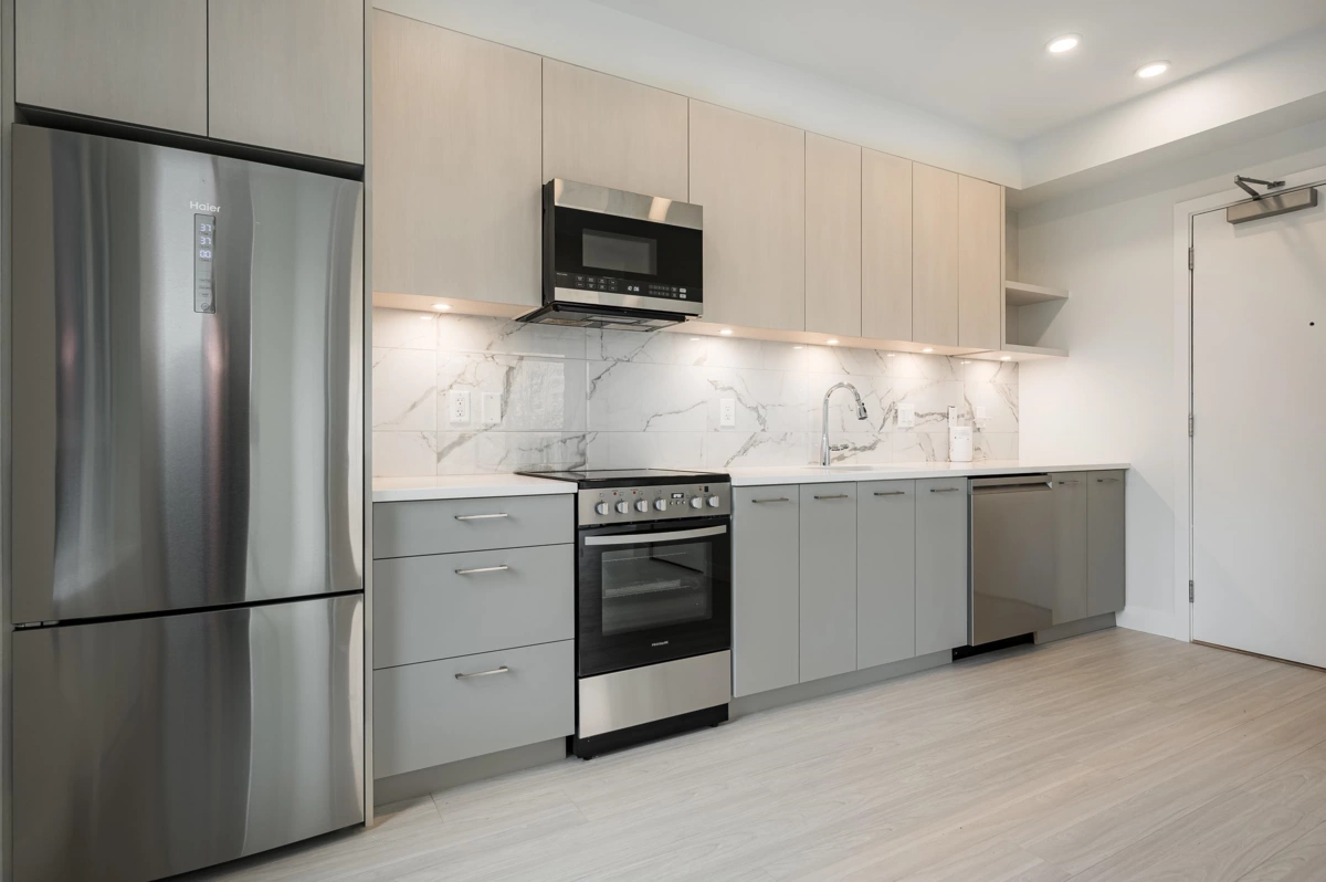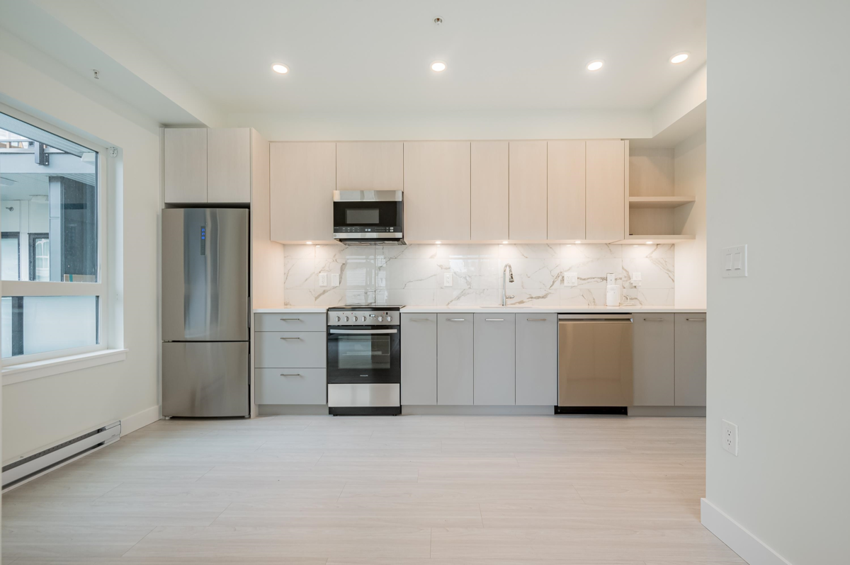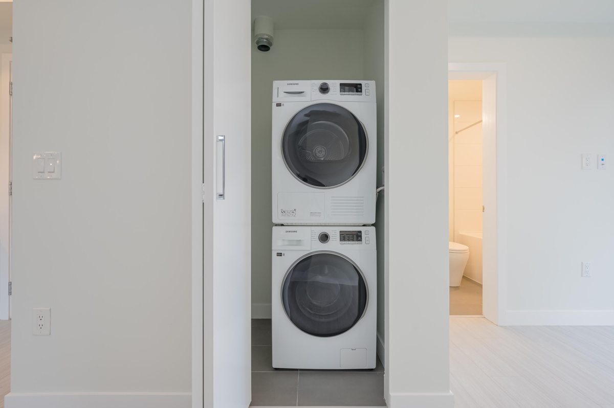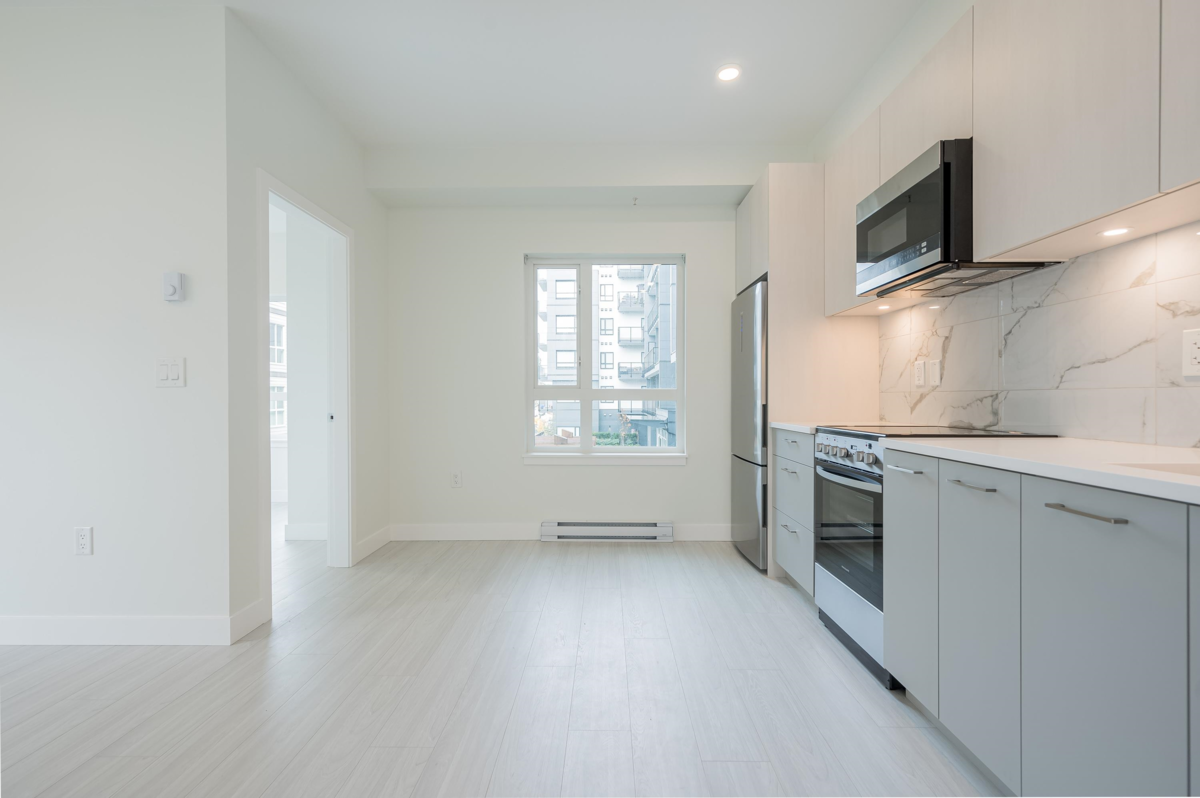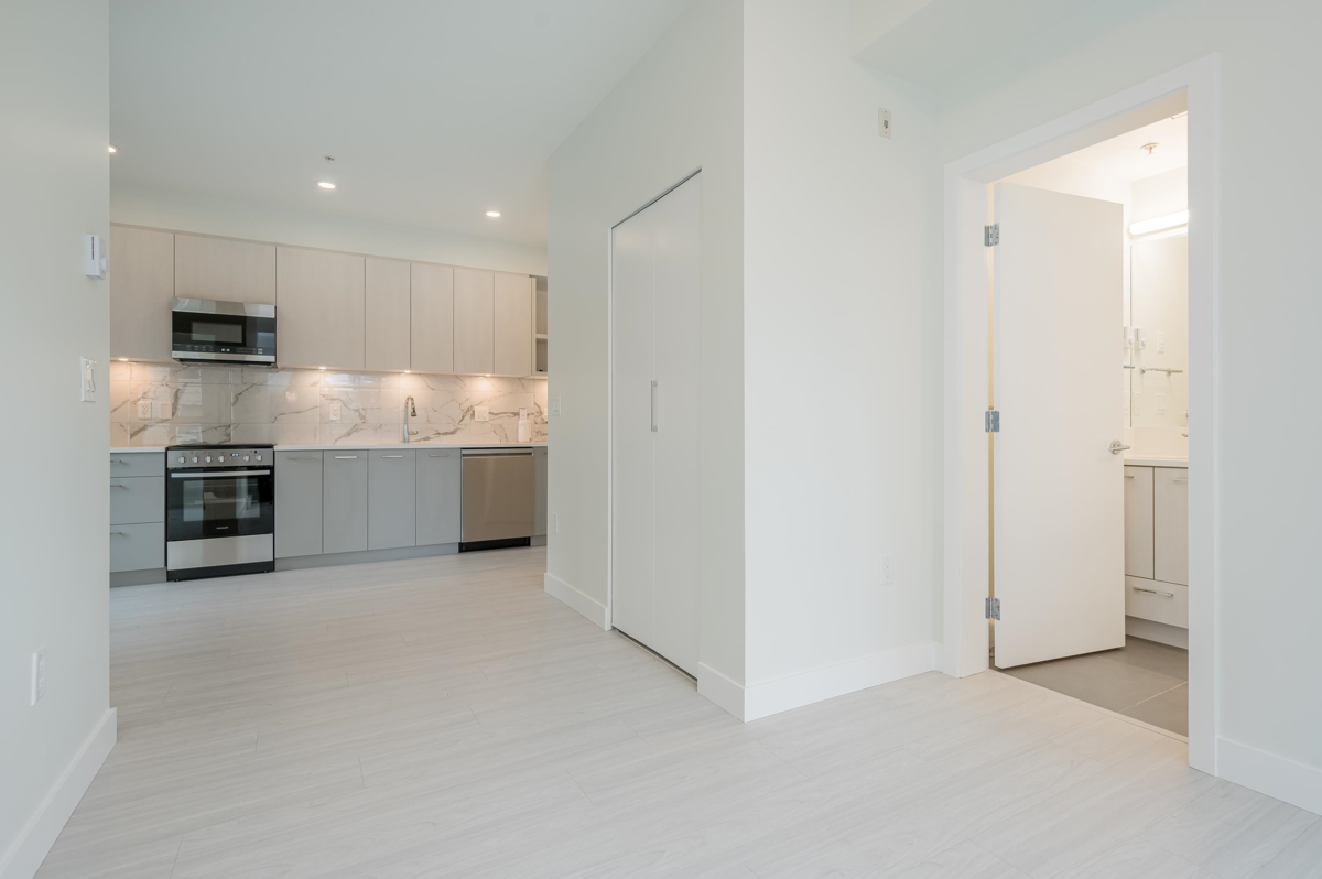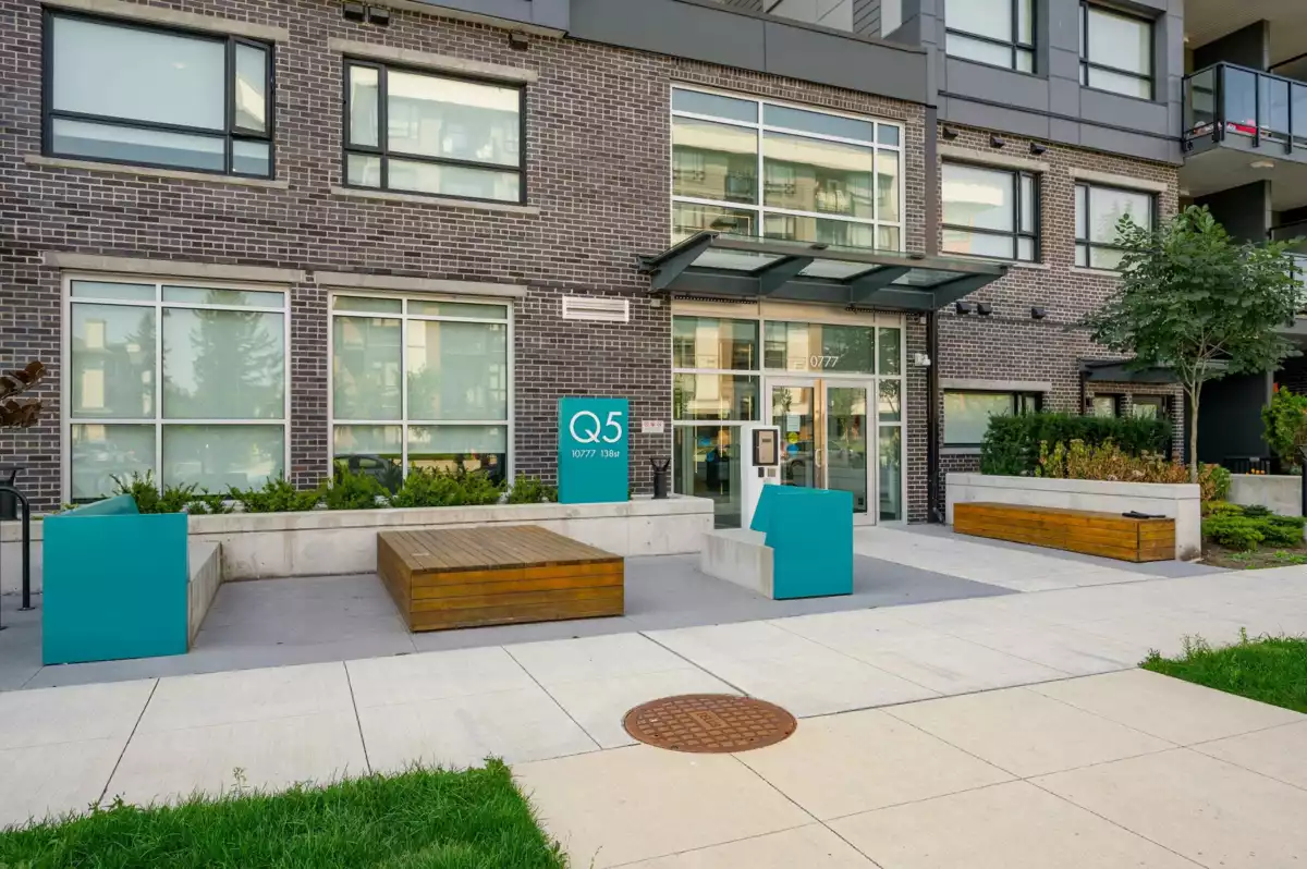 Welcome to the newly built Q5 near Surrey City Centre! This bright 1 bed, 1 bath home overlooks the quiet inner courtyard, offering peace and privacy. Featuring a modern open layout, sleek kitchen with quartz counters and stainless appliances, spa-inspired bath w/deep soaker tub, this home combines style and function. Enjoy fantastic amenities including a fitness centre, party room, games room, fireside lounge, co-working space, courtyard with BBQ area, and community garden. Quick 8min walk to Gateway SkyTrain, close to parks, schools, shopping, and restaurants-Q5 offers unbeatable convenience for commuters and investors alike. Includes 1 locker and 1 parking.