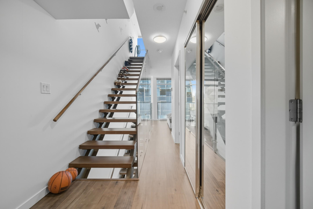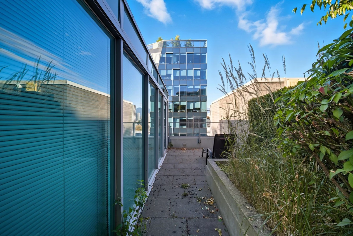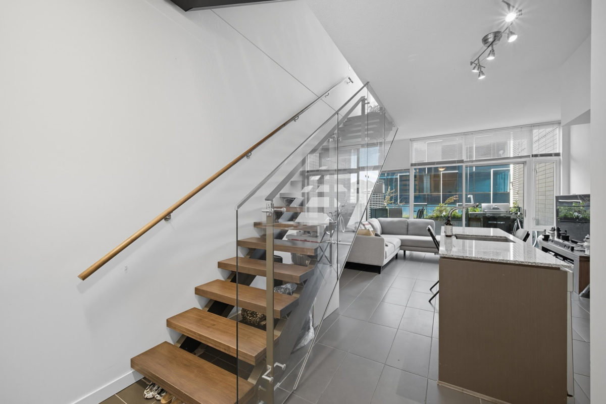 **CENTRAL Cambie & Broadway LOCATION at CROSSROADS** Rarely available stylish 1 bedroom + den, 2 bath, 3-level townhouse with 3 private balconies including a large rooftop deck for unwinding under the stars. Featuring a large patio & powder room on the main floor, bedroom with juliette balcony and den on the second floor, and an additional 2nd entry into the unit and roof deck on the third floor. Stylish, spacious and very bright floor plan with 3 levels of floor to ceiling windows with North facing views and open-concept kitchen with S/S appliances, gas stove and granite countertops. Great building amenities including a huge fitness centre, rooftop garden, playground and bike room. Close to everything and above Whole Foods, next door to shopping and Canada Line, steps to VGH & False Creek